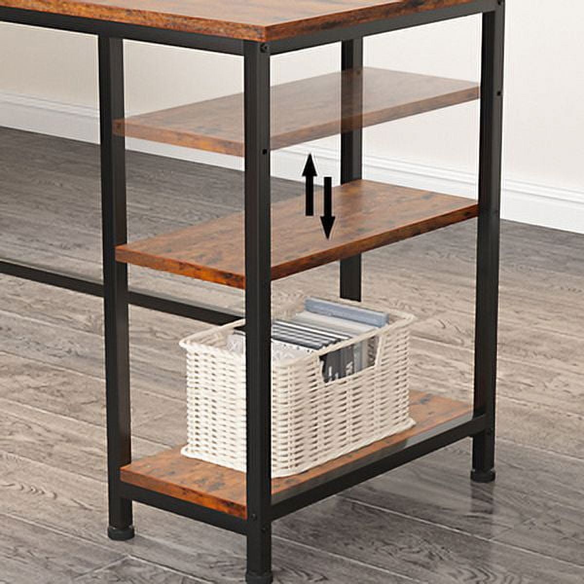 Furologee Computer Desk, Adult Collection L-Shaped MultiFuntional Rustic Desk, Rustic Brown