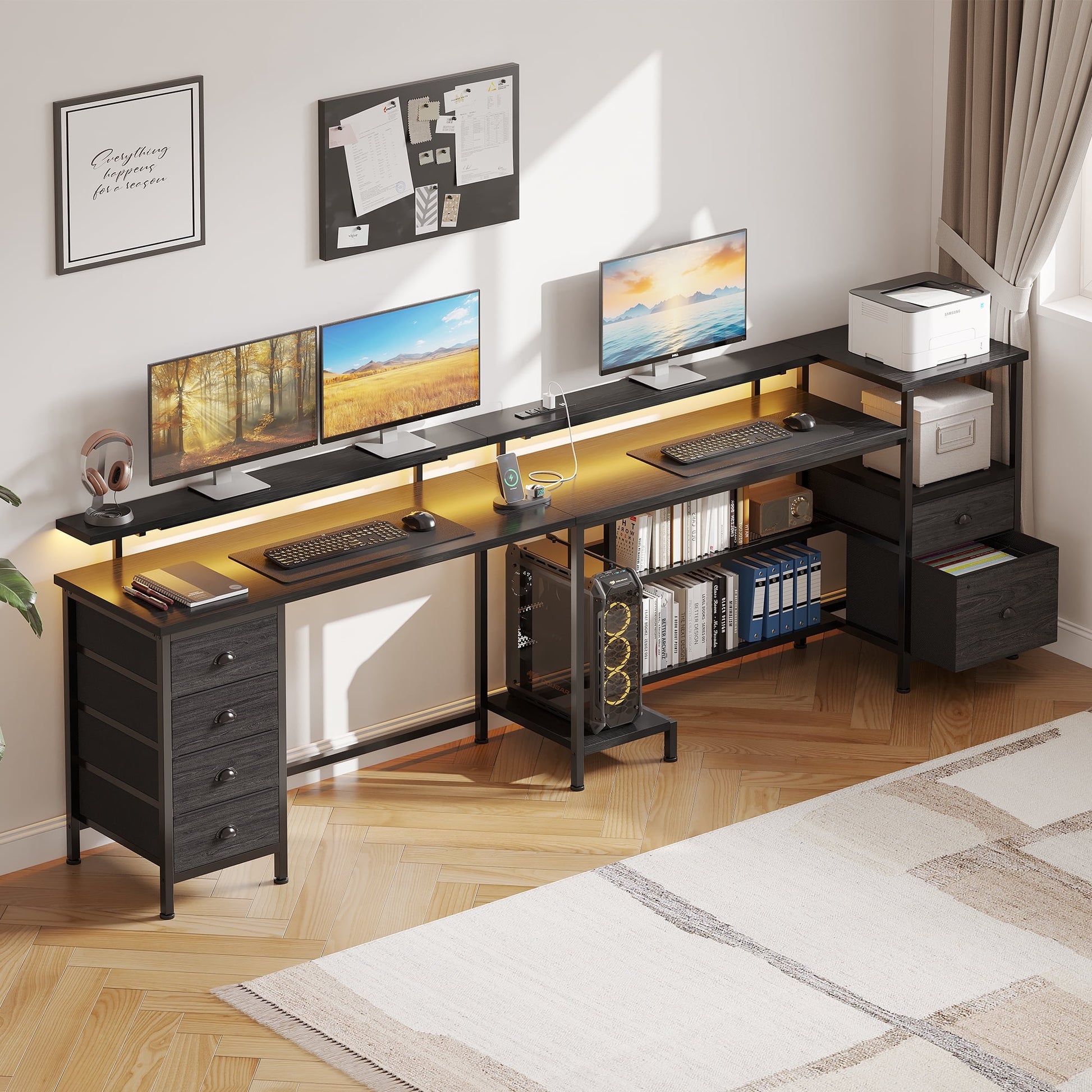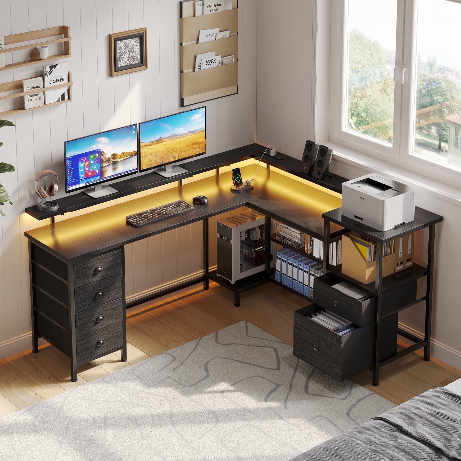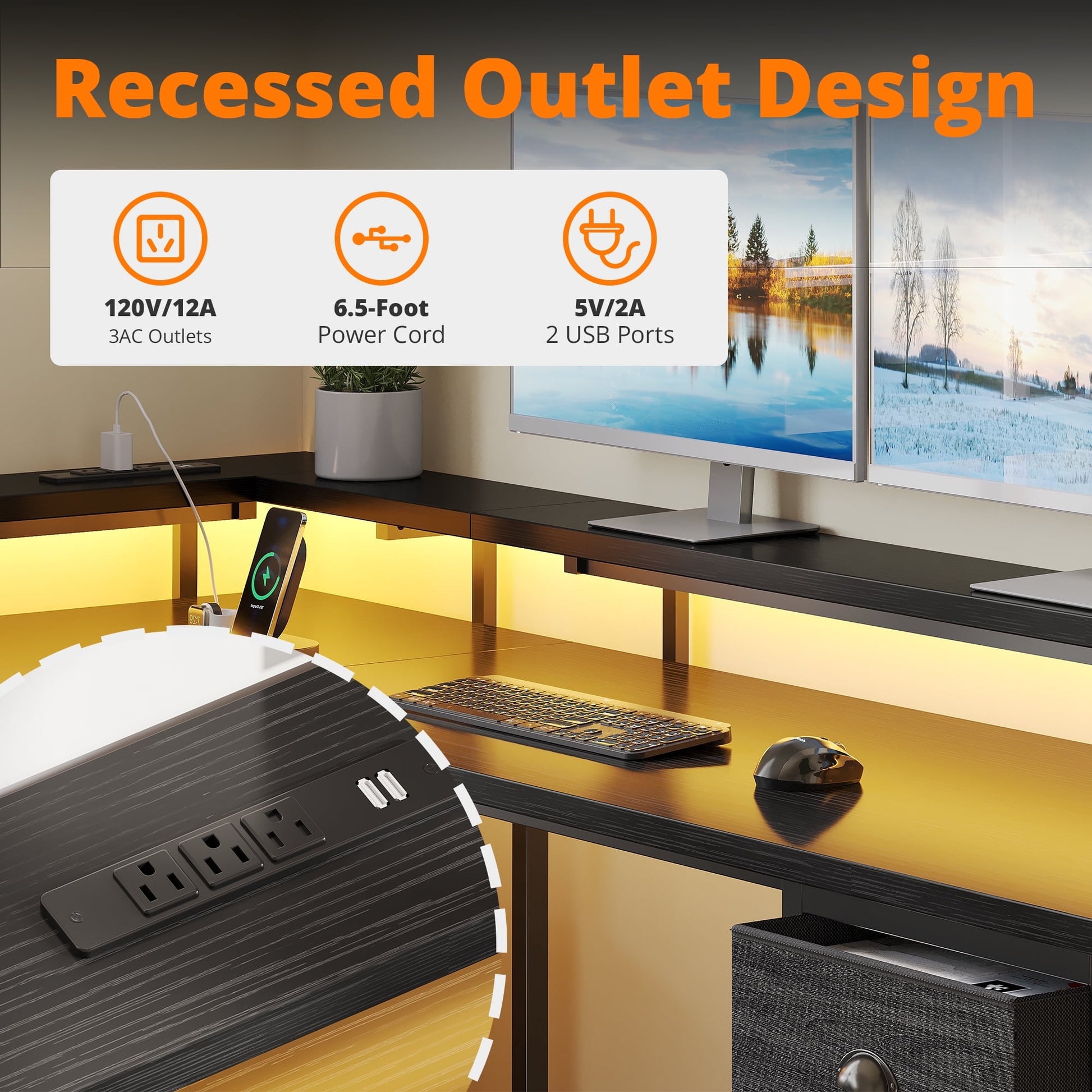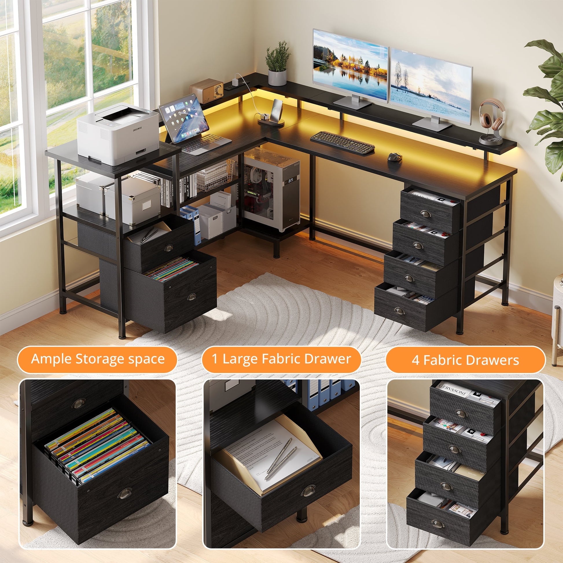 Hexmn Black L Shaped Office Desk with Drawers Storage, Dual Monitor Computer Desk, Workstation Set for Office Living Room