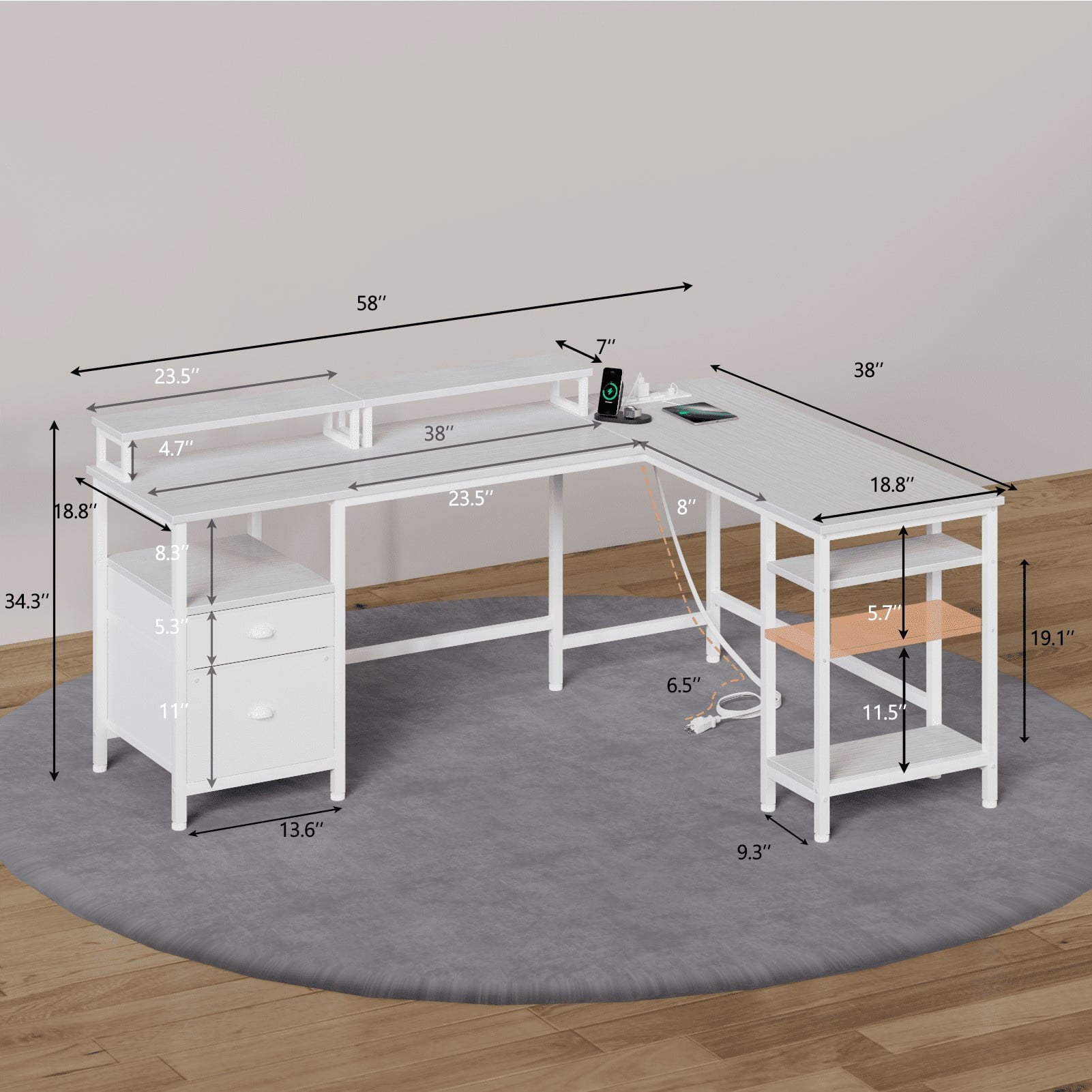 Hexmn L-Shaped Home Office Desk,Dual Monitor Stand & Ample Storage for All Your Needs