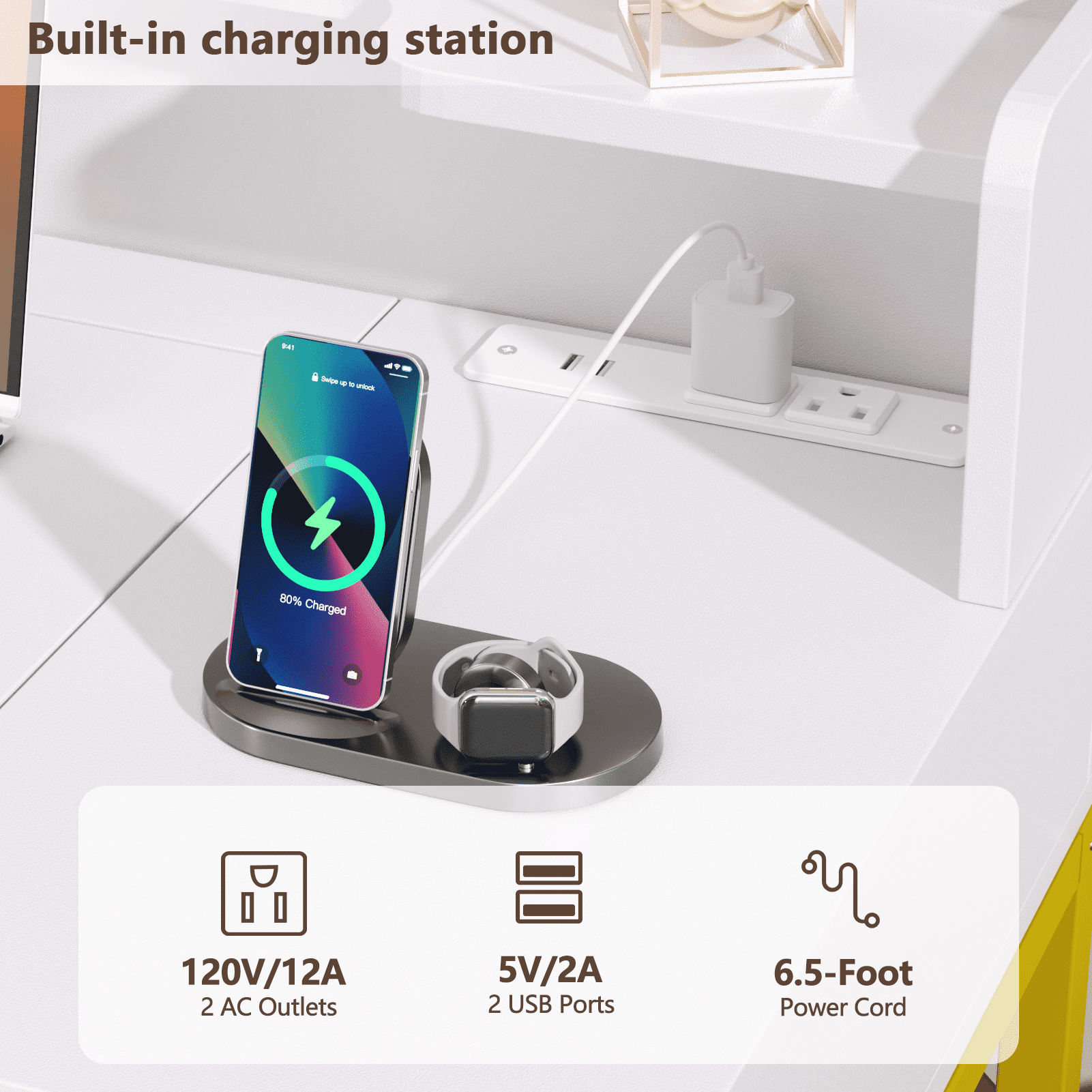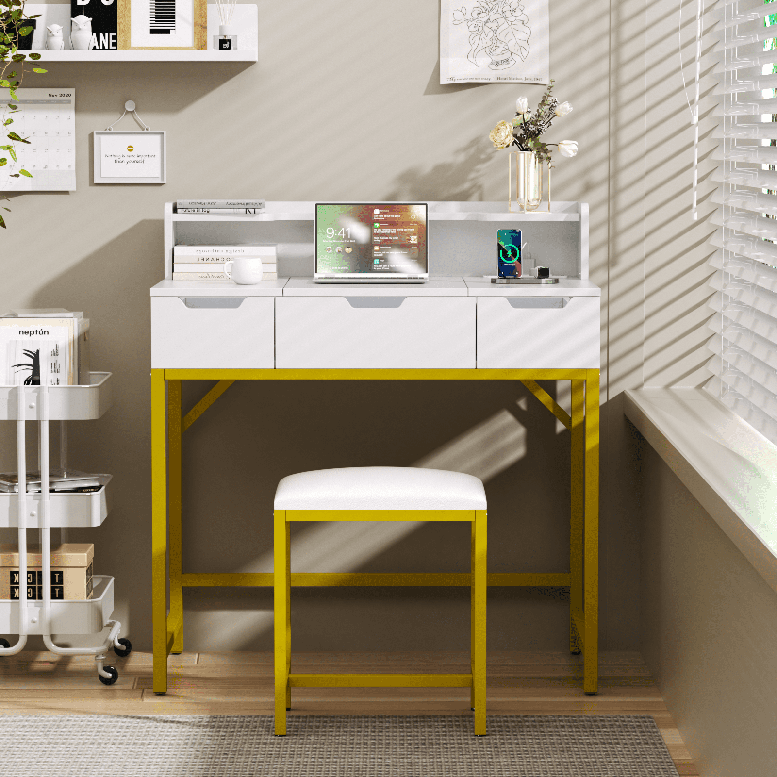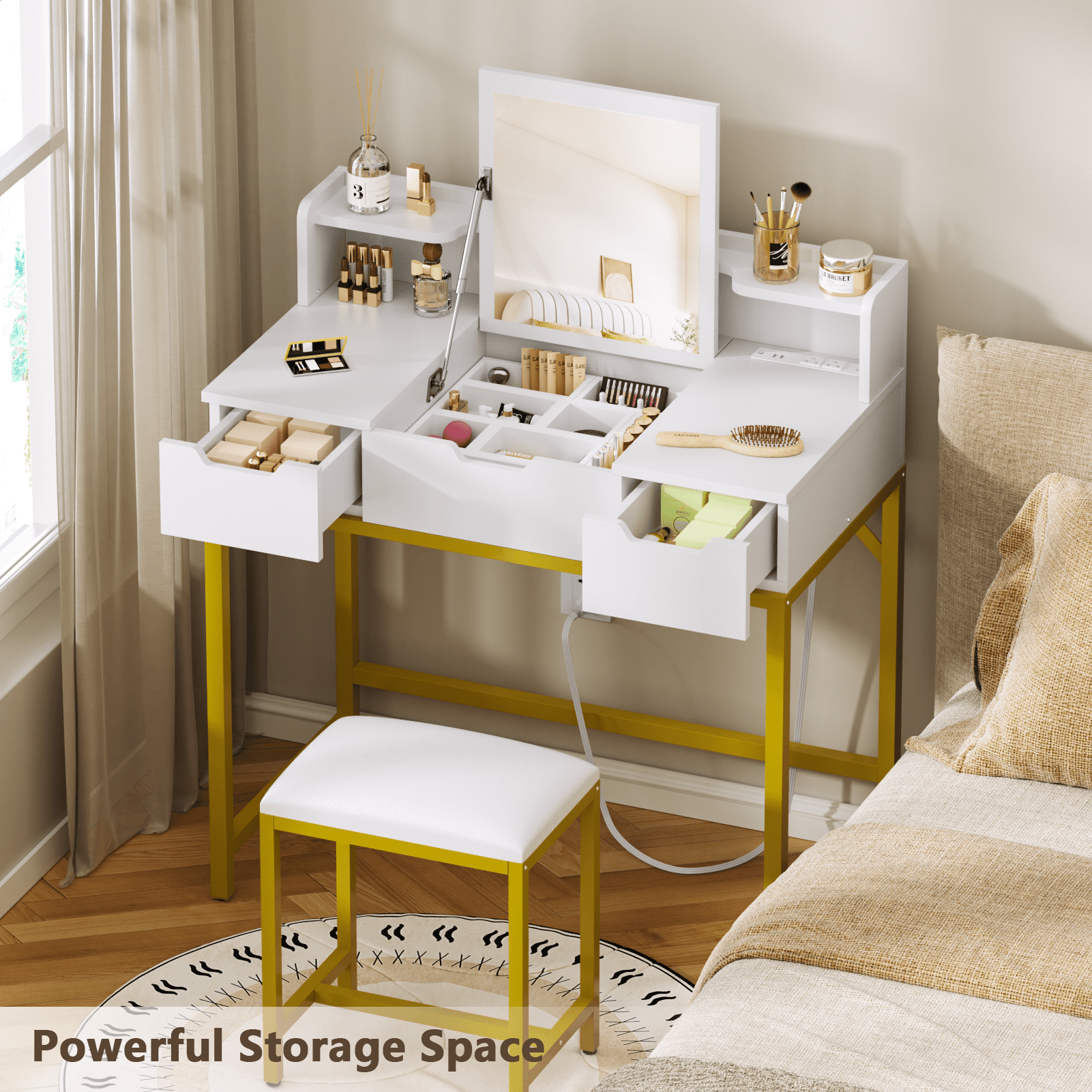 Hexmn Vanity Set with mirror and charging station, makeup dressing tables with drawers storage for gift