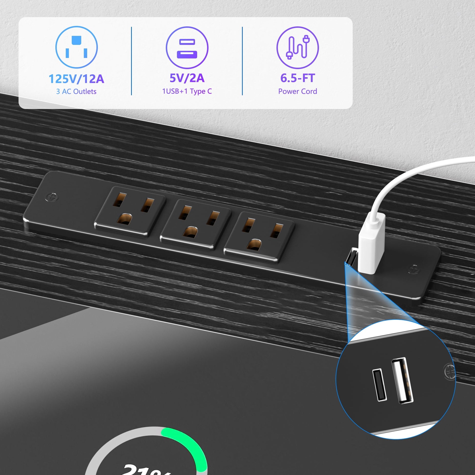 Satifur 2-Person Computer Desk with LED Lights,Charging Station and fabric drawers, Extra Long Double Office Desk Computer Desk, Black