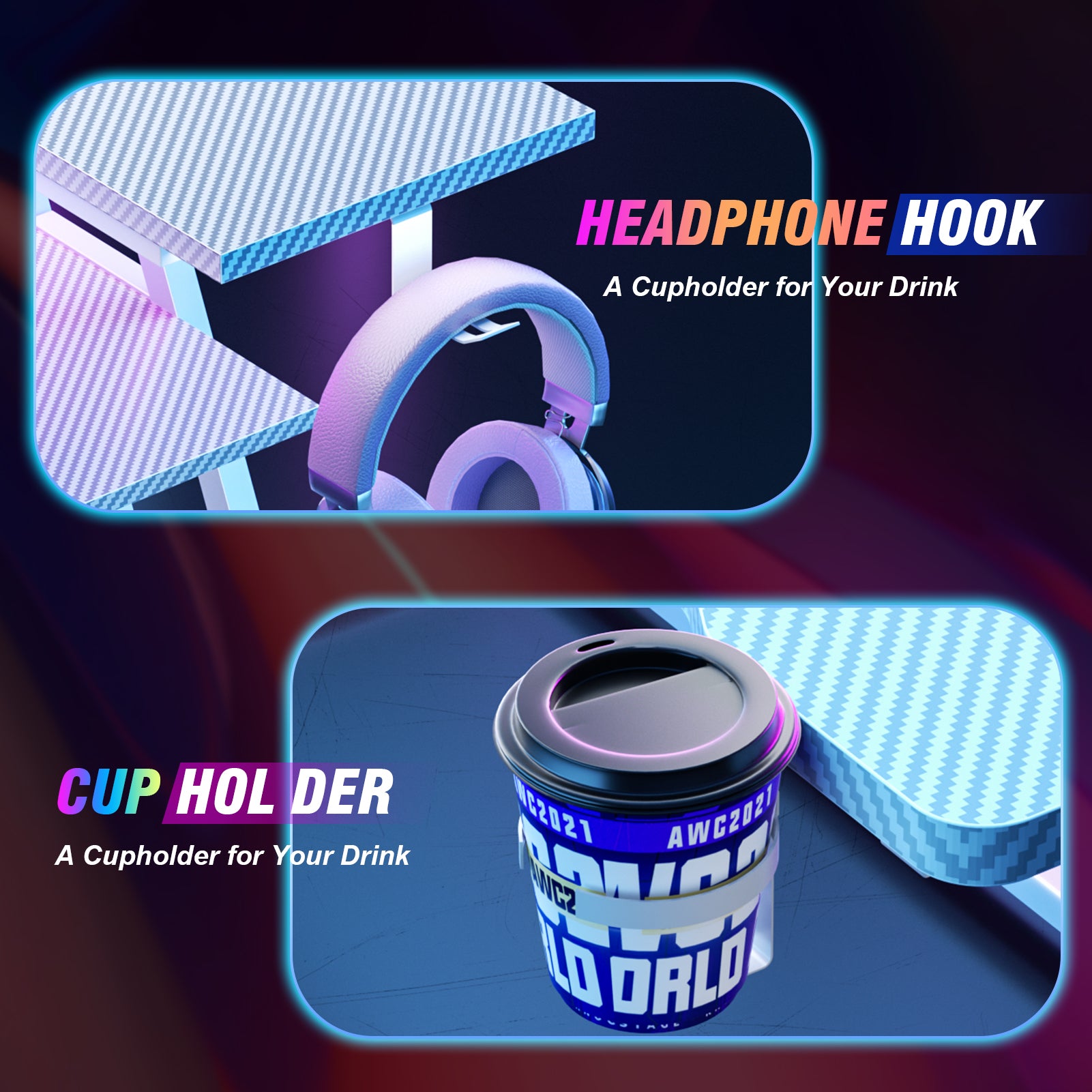 TACTICAL STORAGE & ERGONOMICS: Every inch is designed for efficiency. The elevated monitor stand frees up valuable play space and improves posture. Two additional desktop shelves, a cup holder, and a headphone hook ensure all your gear is deployed within instant reach.
