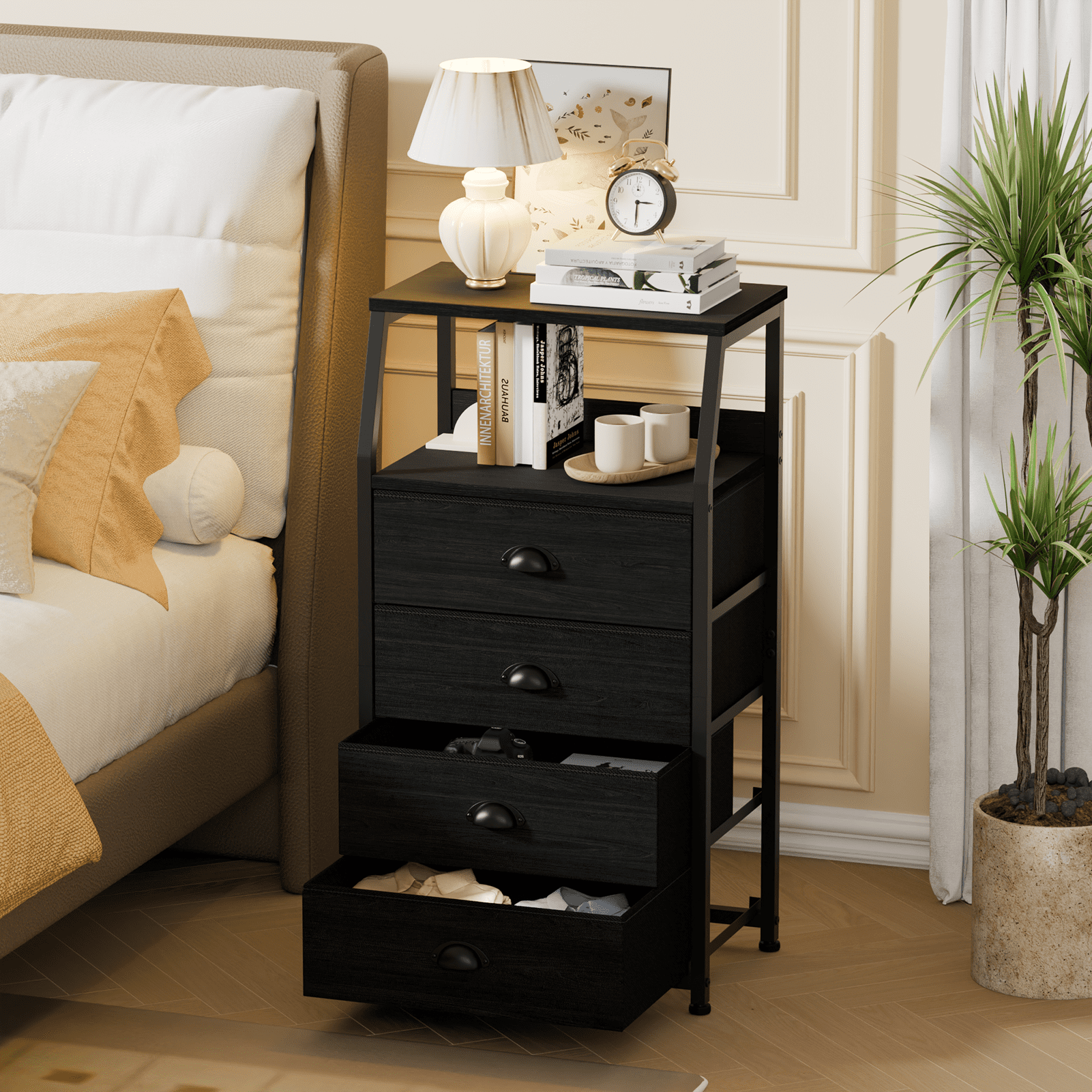 Satifur 4-Drawer Nightstand,Vertical Fabric Dresser Storage End Table,for All Age,Black Oak
