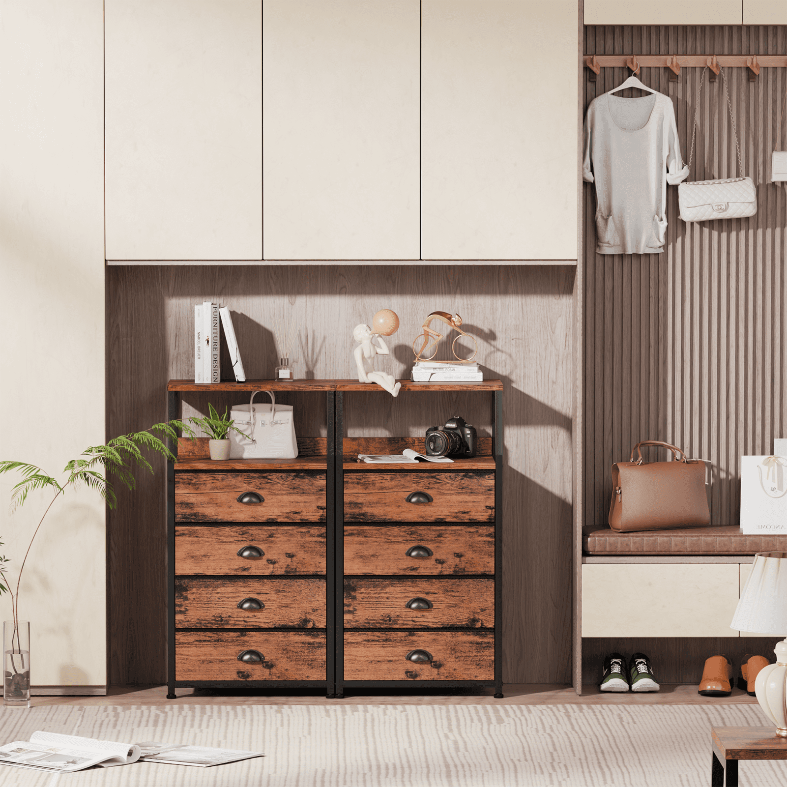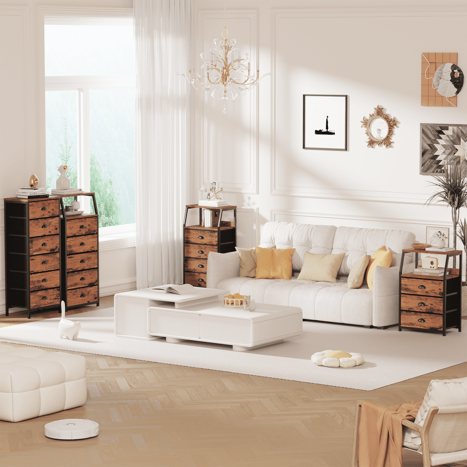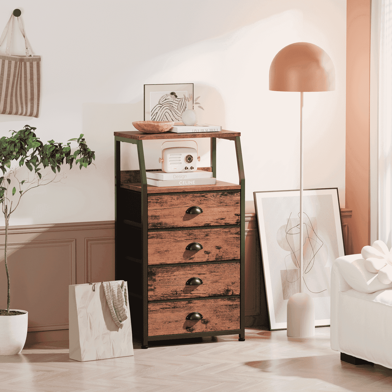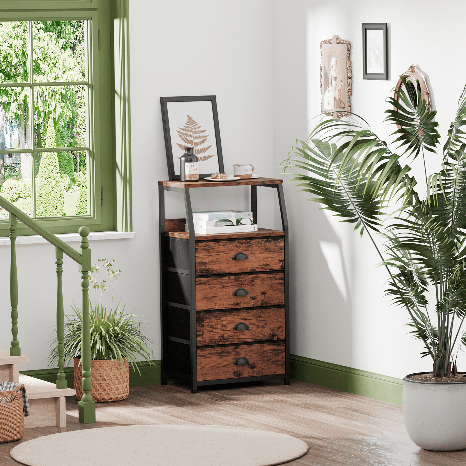 Satifur 4-Drawer Nightstand,Vertical Fabric Dresser Storage End Table,for All Age,Rustic Brown
