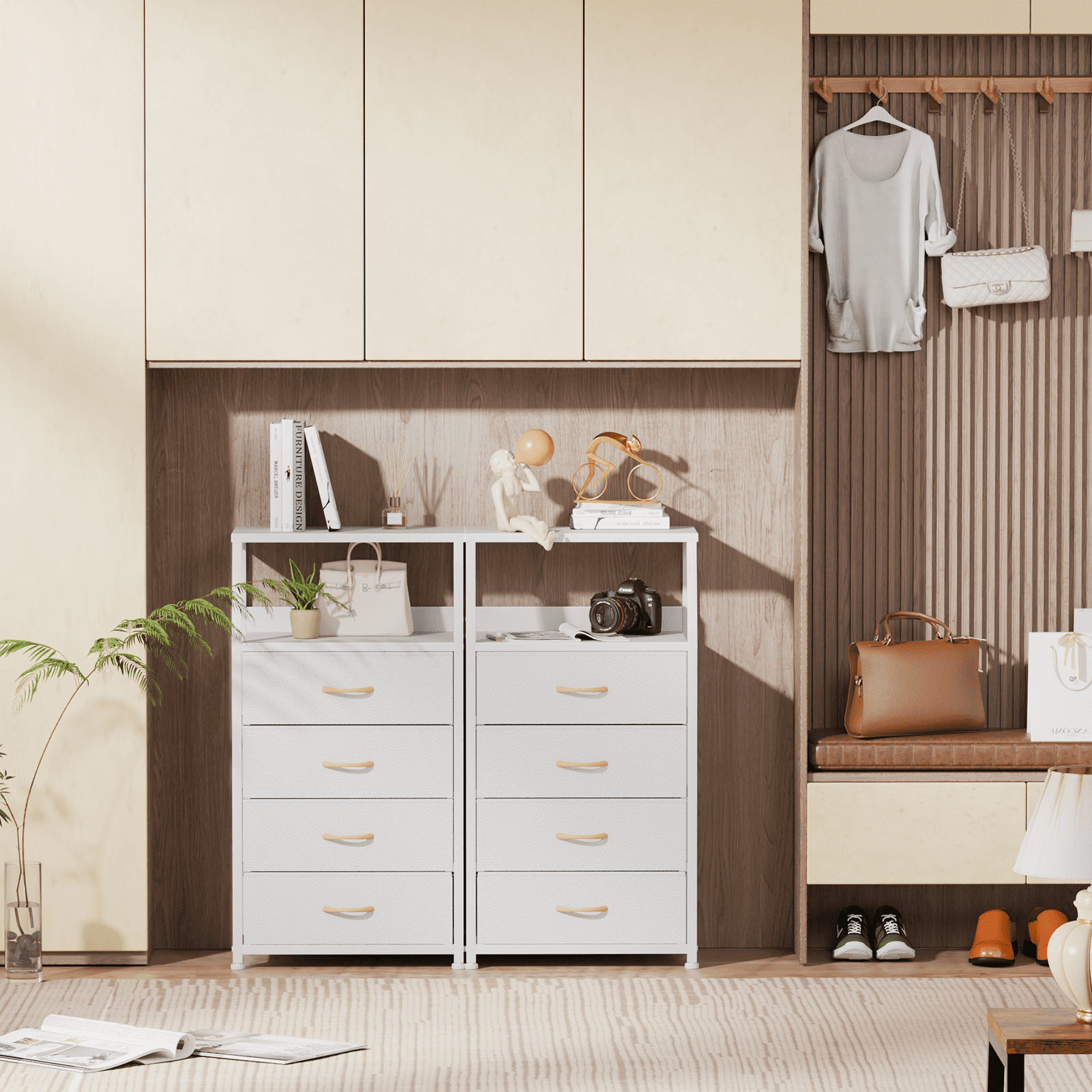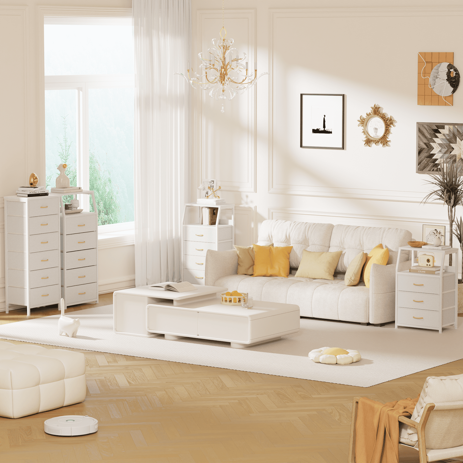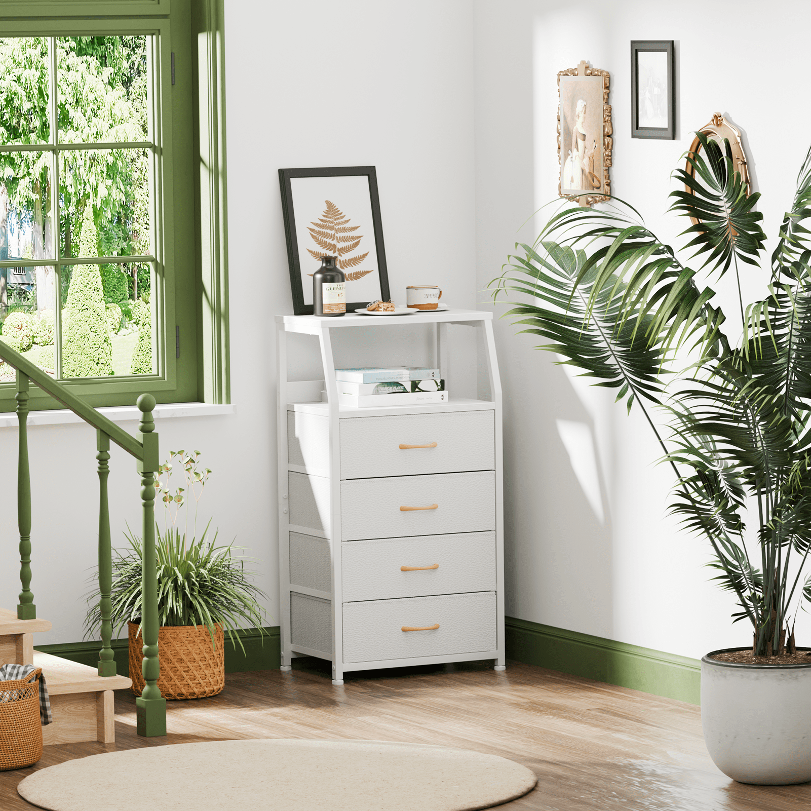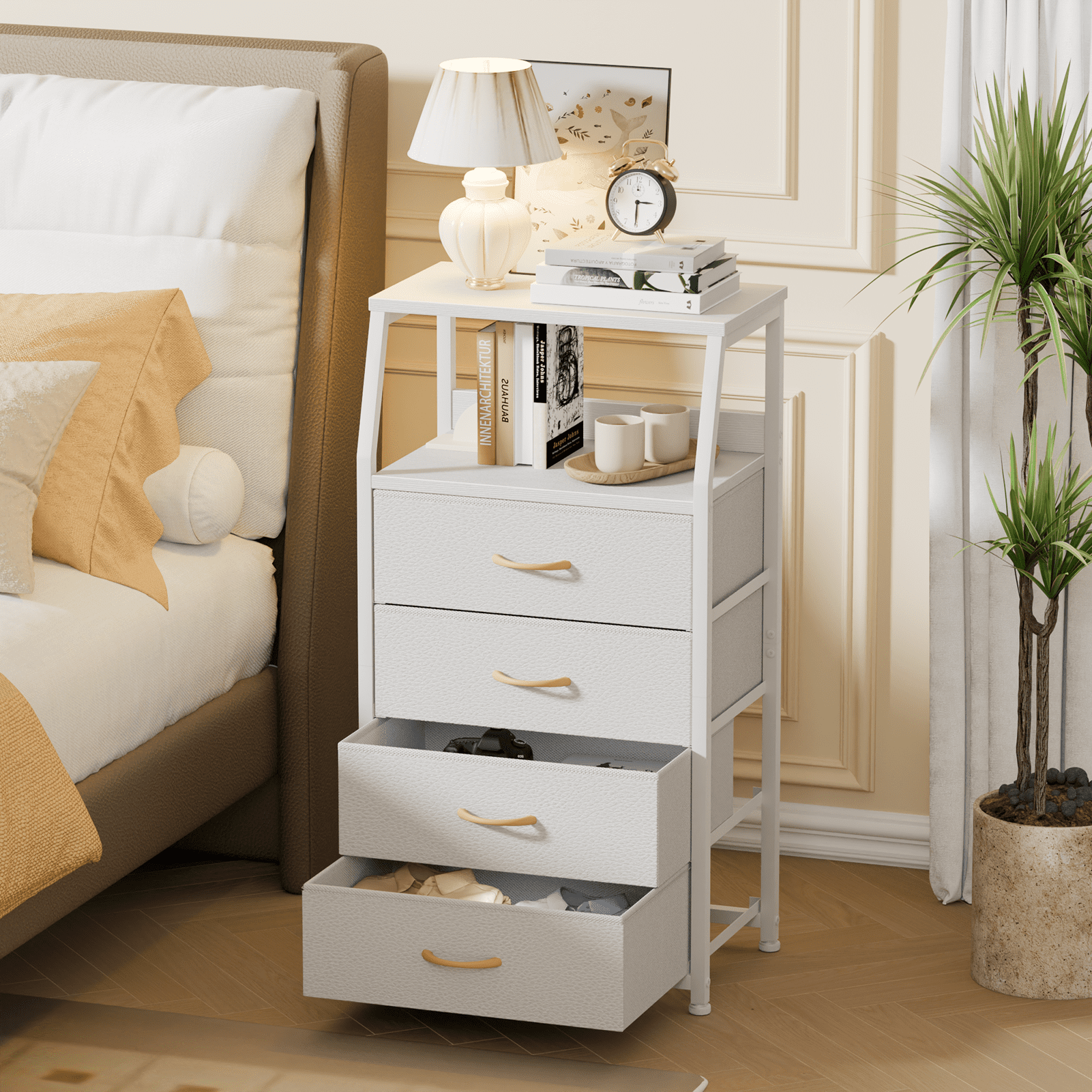 Satifur 4-Drawer Nightstand,Vertical Fabric Dresser Storage End Table,for All Age,White