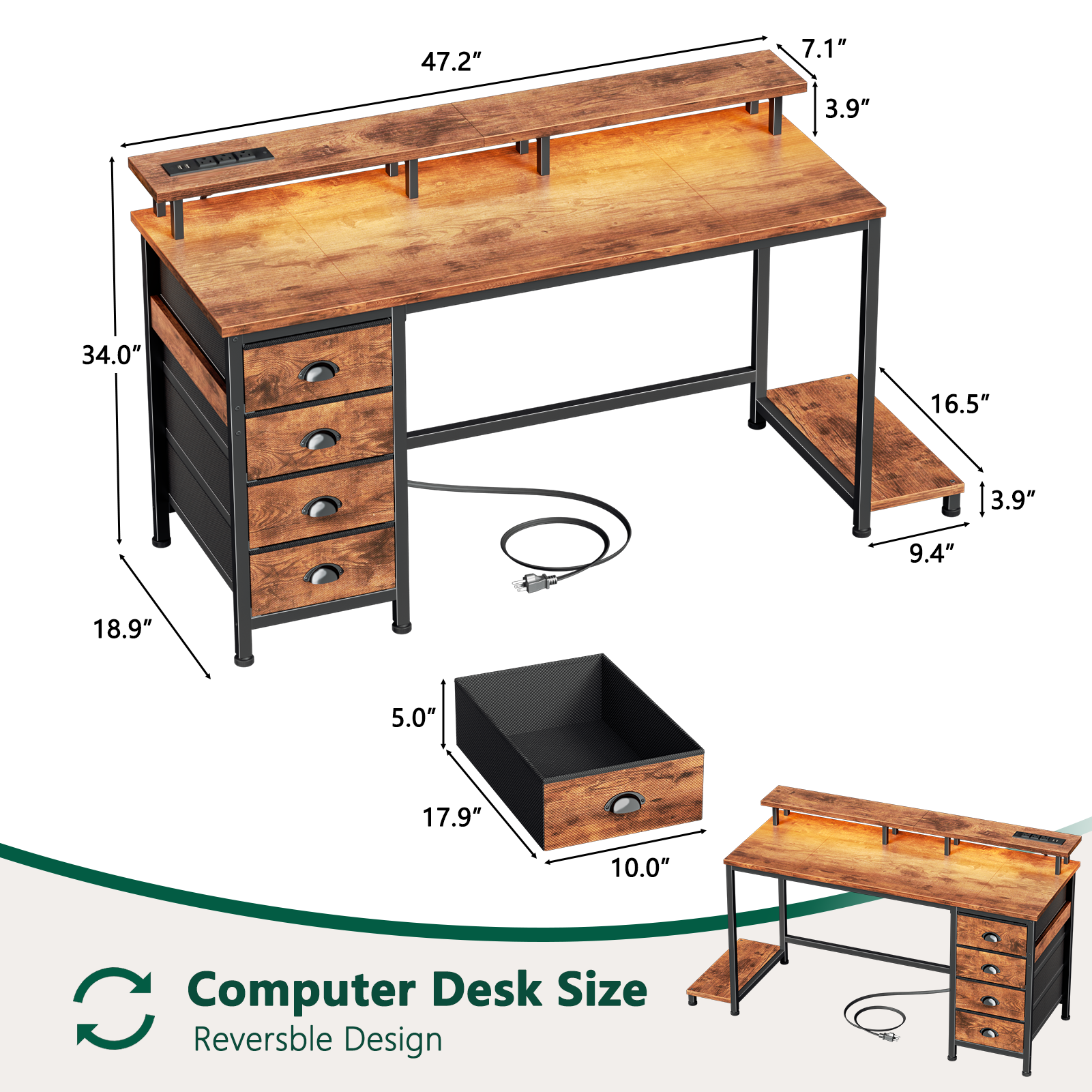 Satifur 47 inch Computer Desk with Power Outlets, Home Office Desk with 4 Drawers, Writing Desk with Removable Monitor Shelf & CPU Stand, Rustic Brown