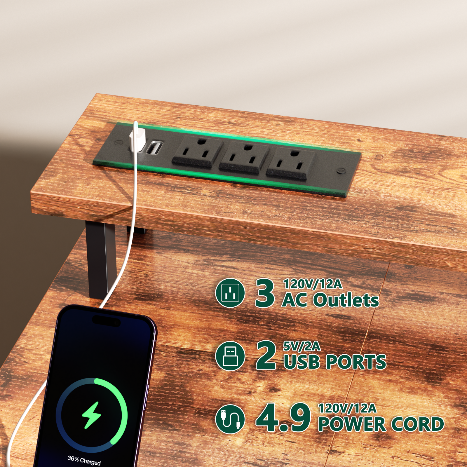 Integrated Power: Includes 3 AC outlets and 2 USB ports for convenient charging of various electronic devices.