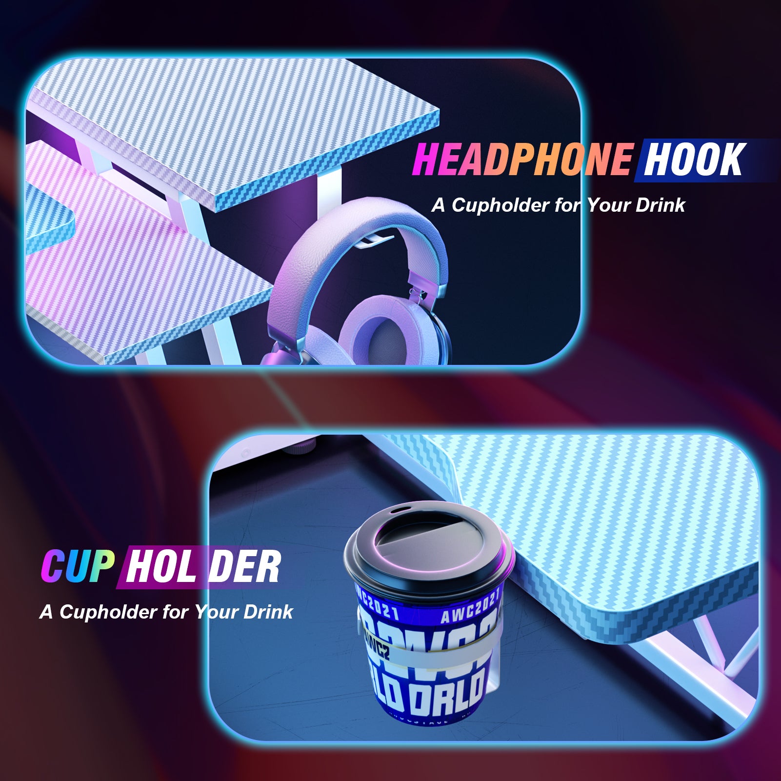 DEPLOY TACTICAL STORAGE: Your arsenal, organized. The raised monitor stand frees up desk real estate for large mouse pads, while the included headphone hook, cup holder, and 3-tier shelves keep all essentials at your fingertips mid-game.