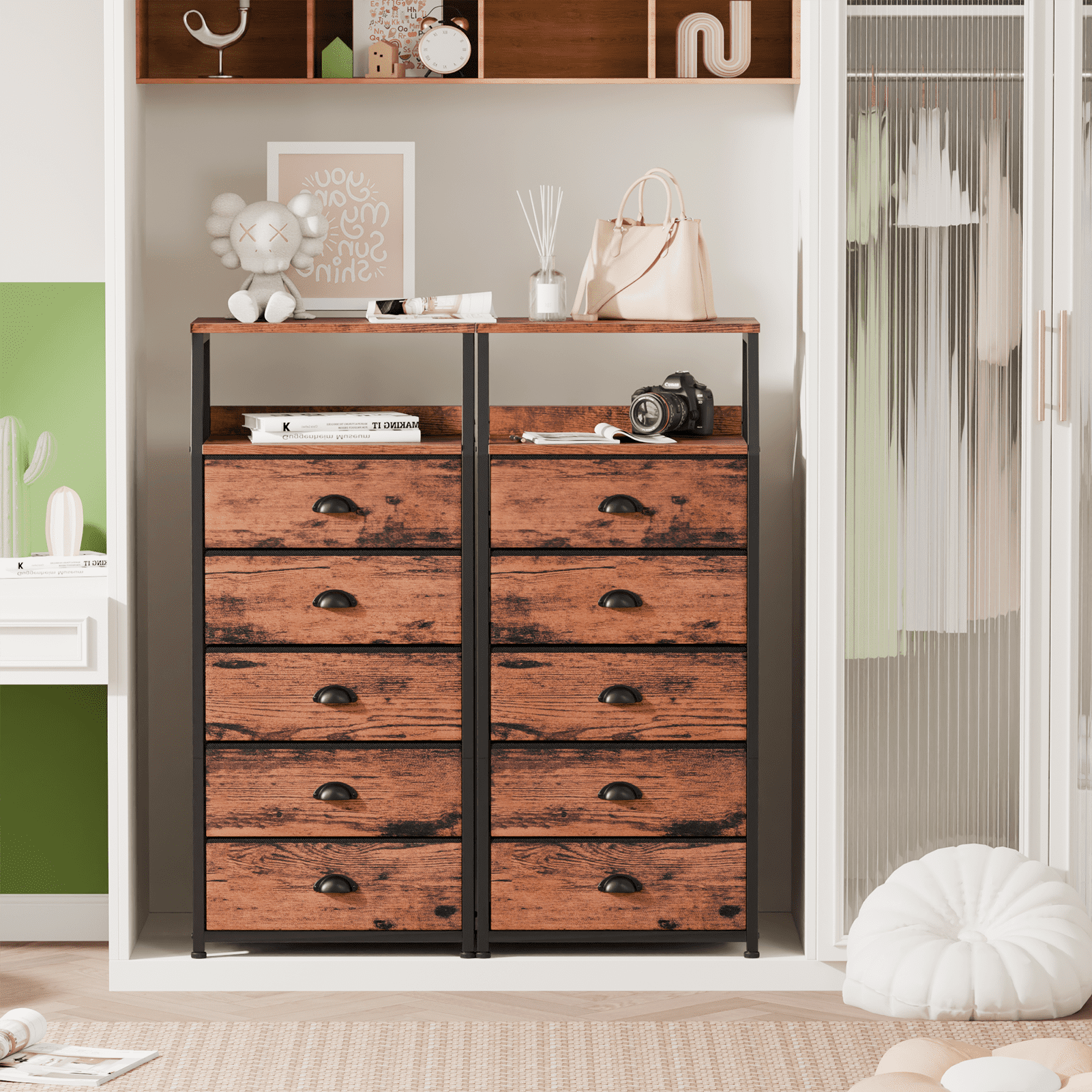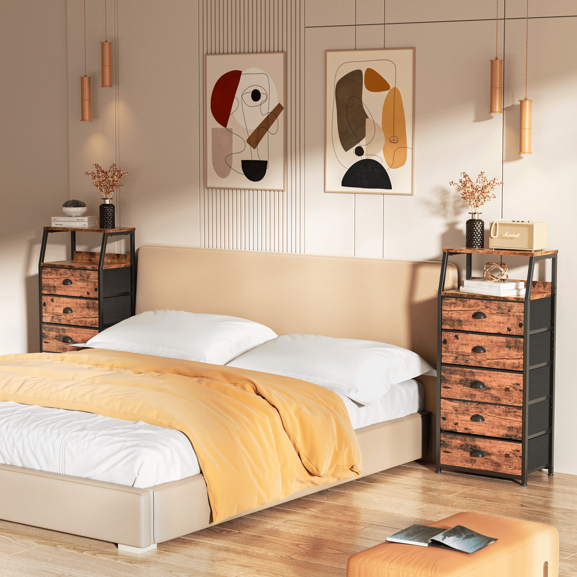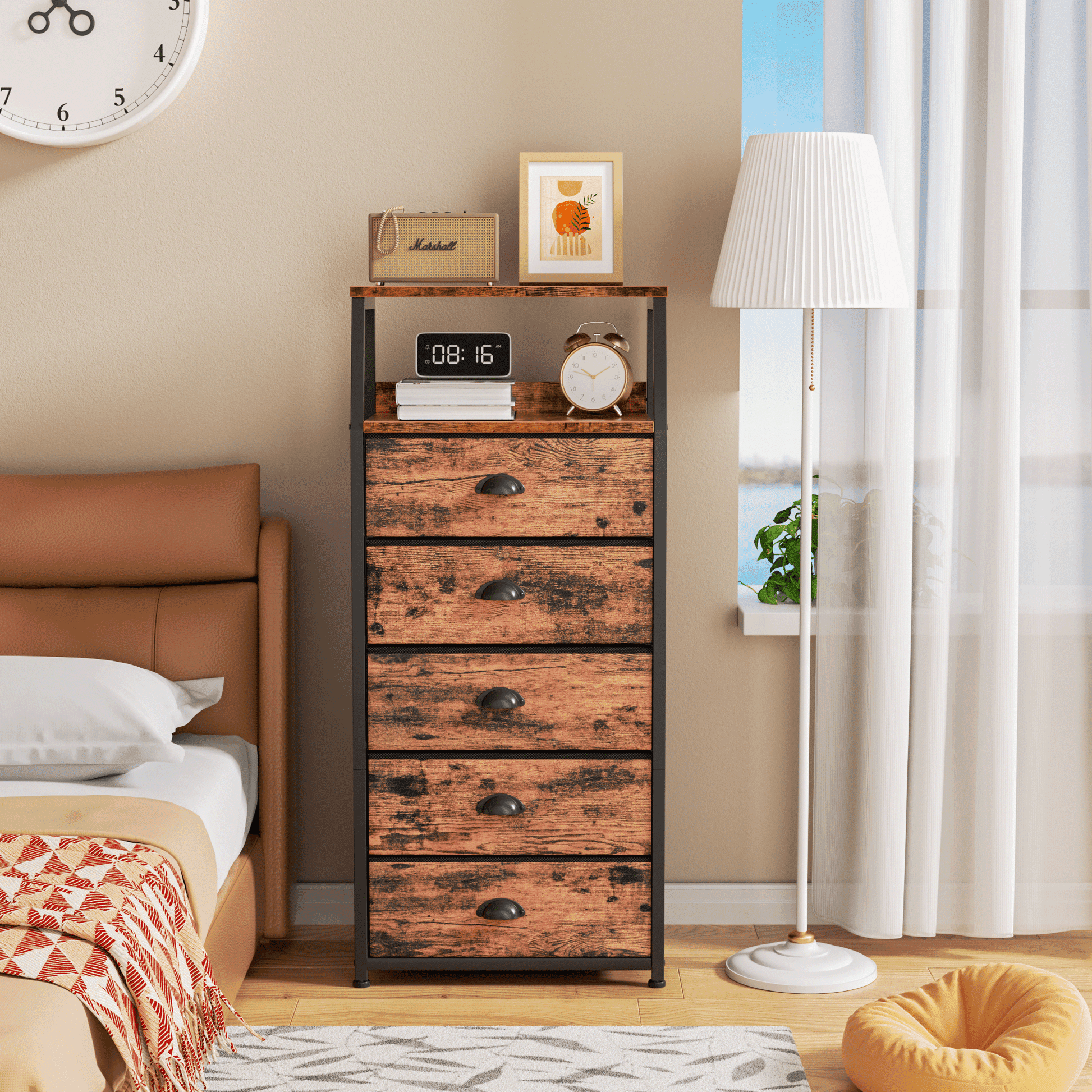 Satifur 5-Drawer Nightstand,Tall Fabric Dresser Storage End Table,Rustic Brown