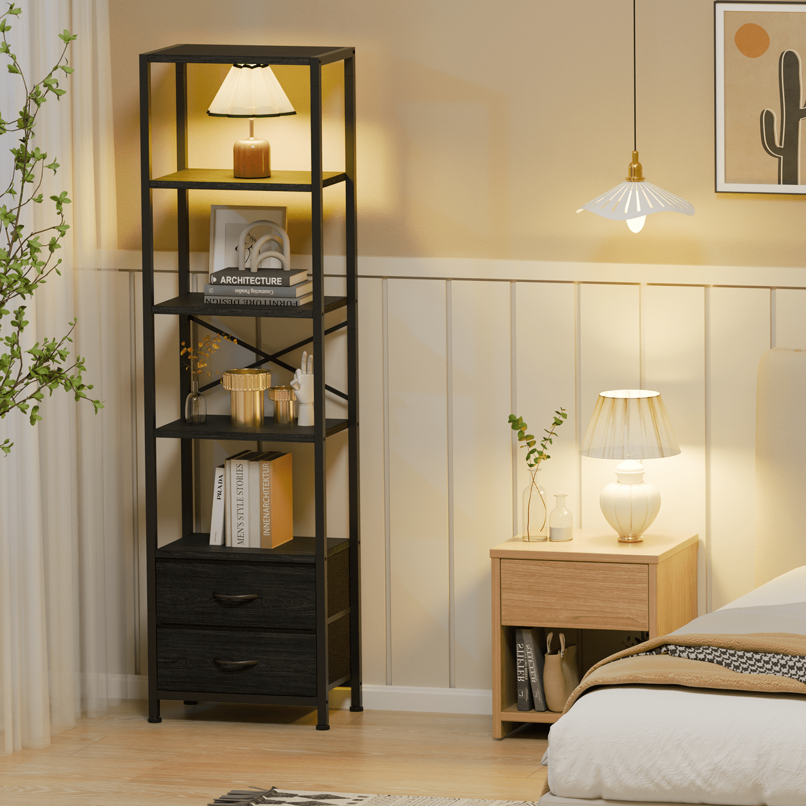 5 tier shelf and a removable fabric drawer