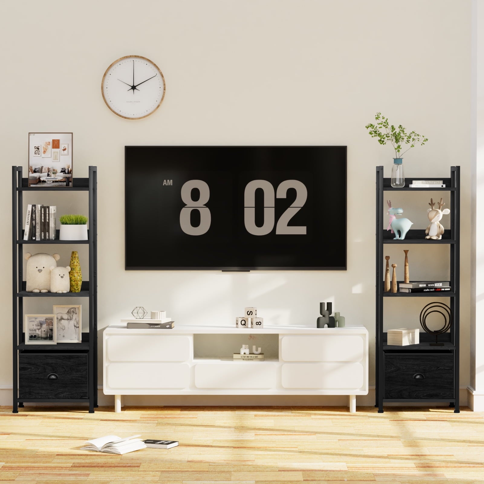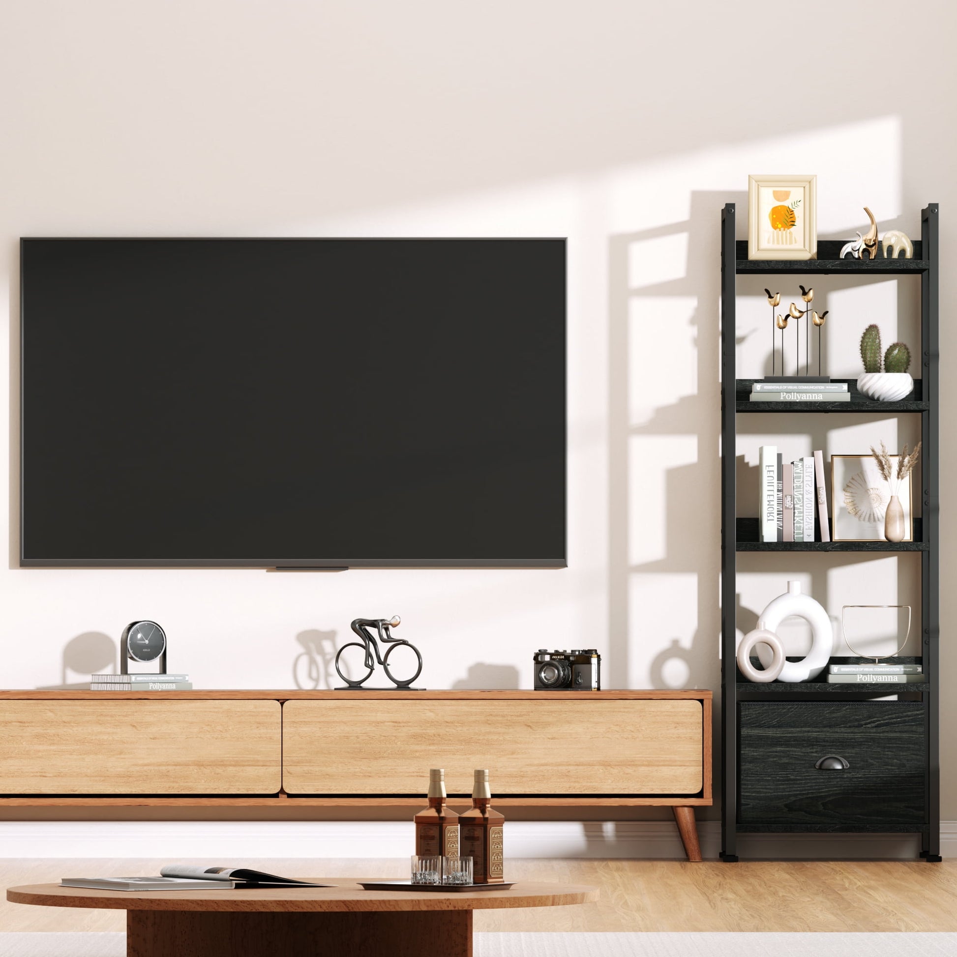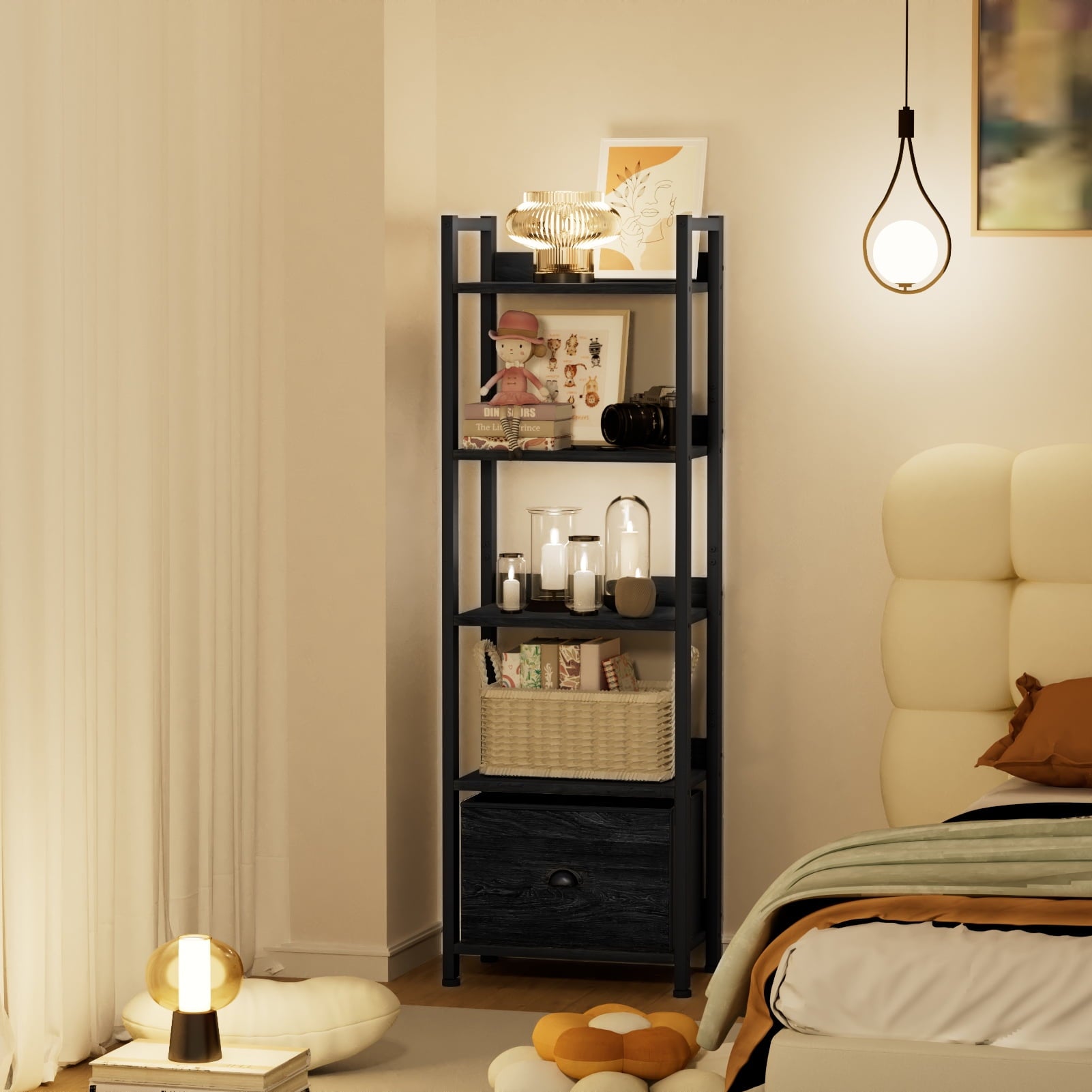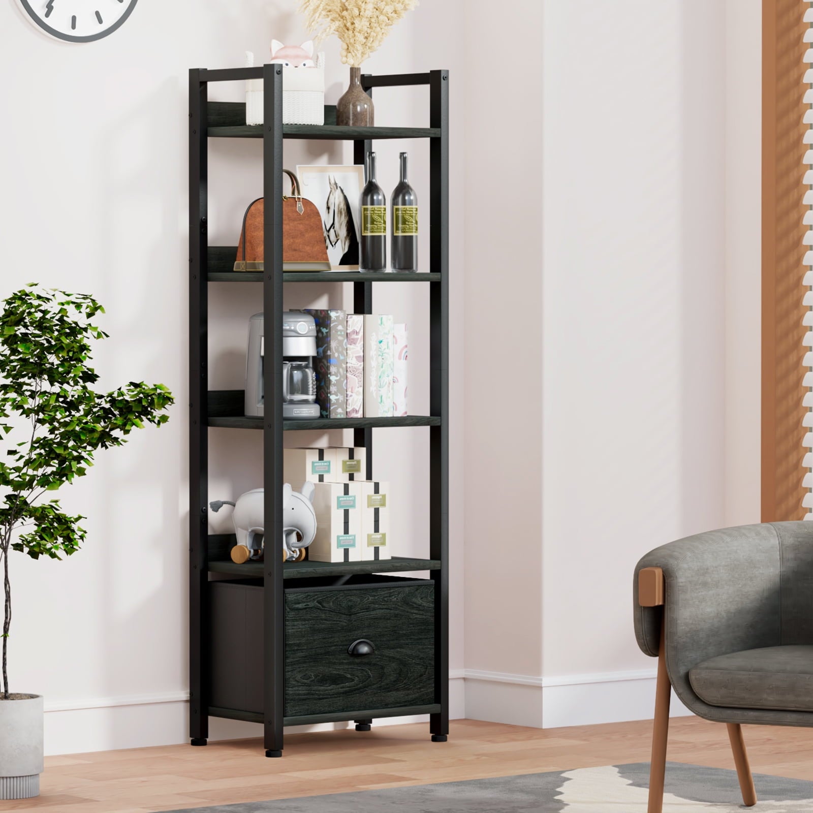 Satifur 5 Tier Ladder Bookcase with Removable Drawer Tall Standing Bookshelf,Black Oak