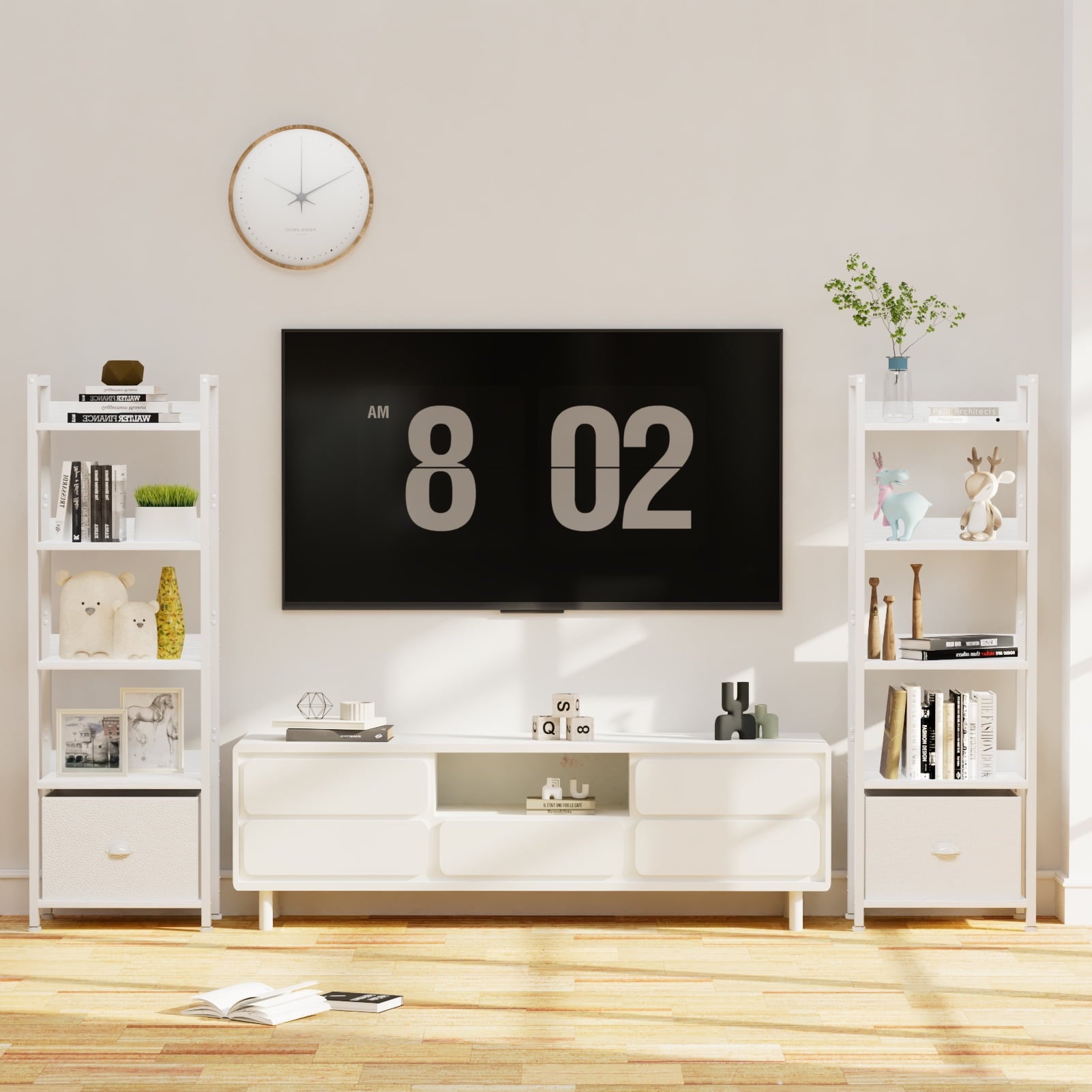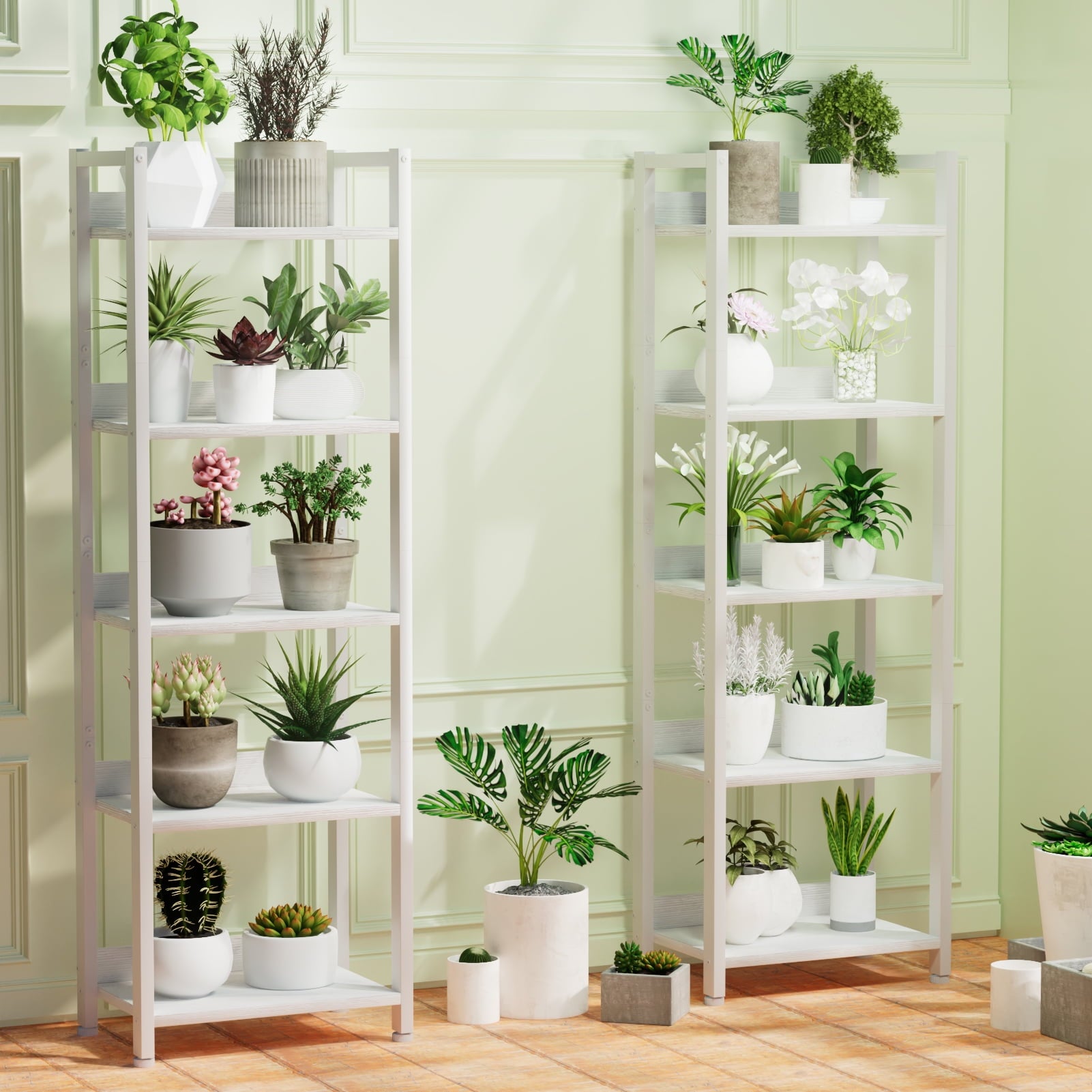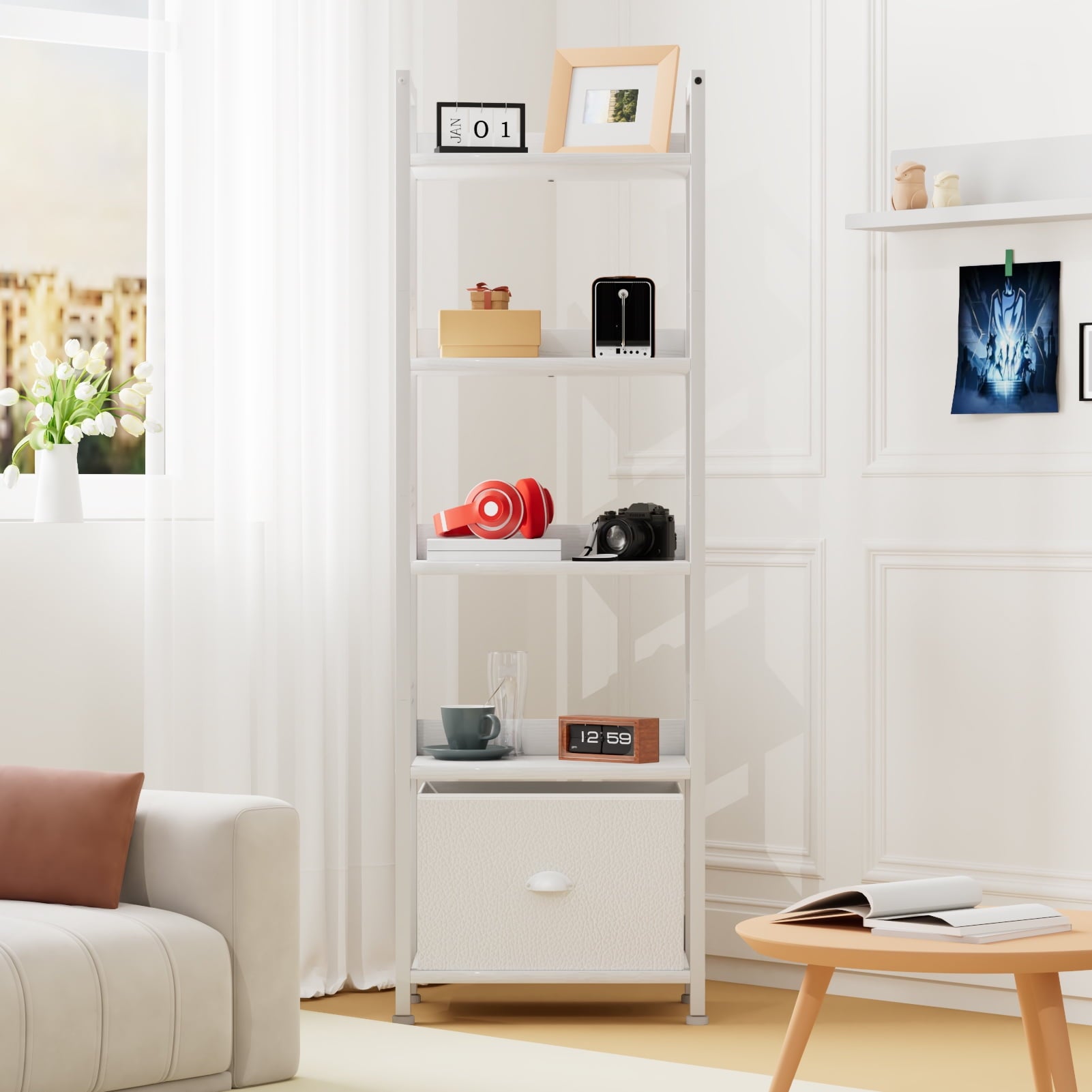 Satifur 5 Tier Ladder Bookcase with Removable Drawer Tall Standing Bookshelf,White