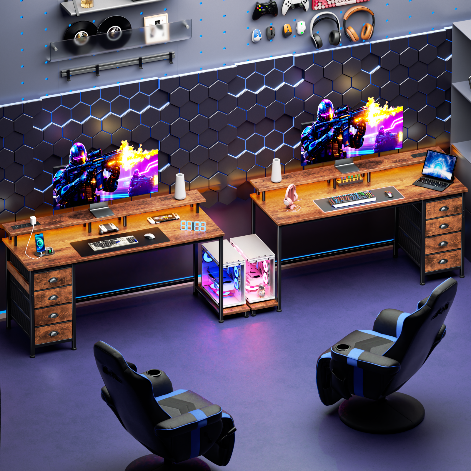 Built-in LED lighting adds a nice vibe and works well for your home office or study. And with 4 drawers and a dedicated CPU stand, everything you need is easy to reach.