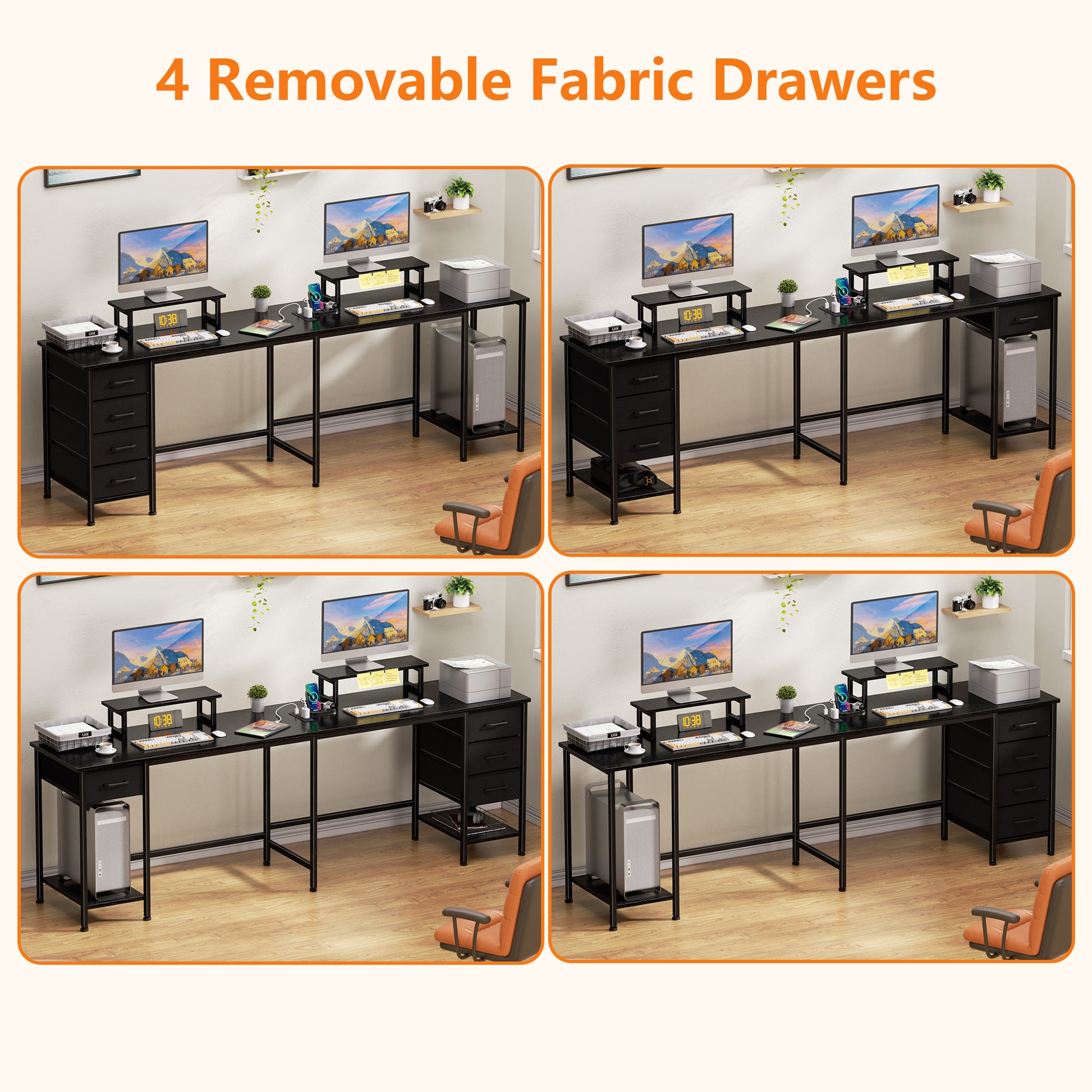 Satifur 66" L-Shaped Desk with Power Outlets, 4 Fabric Drawers & 2 Monitor Stands, Convertible Two Person Home Office Desk, Black