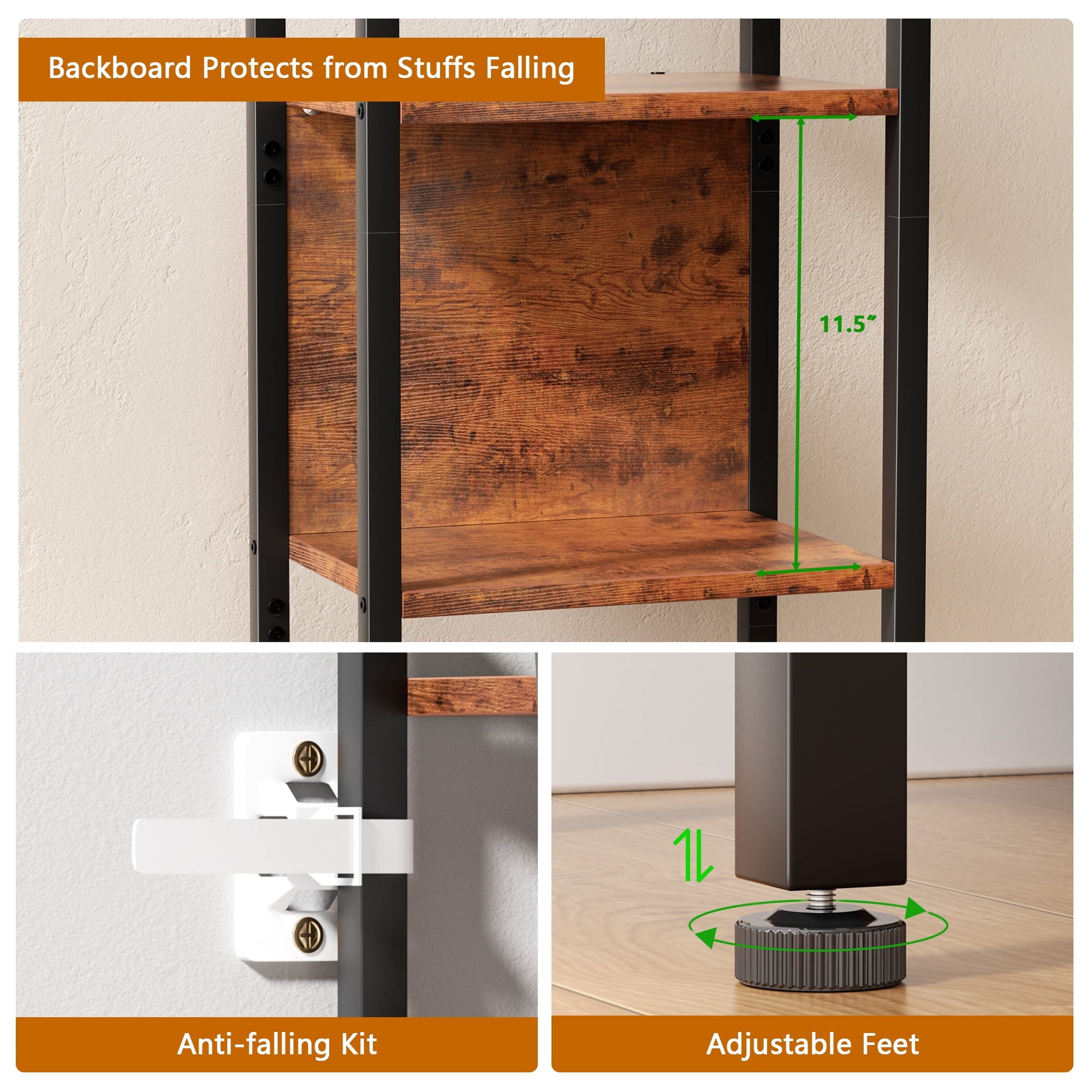 Introducing the Satifur Industrial Bookshelf ¨C your ultimate solution for stylish, space-saving storage! No more worrying about your kids or pets knocking items off the shelves. Equipped with 2 large backboards, this bookshelf ensures a safer environment while adding a touch of rustic charm to any room. Perfect for keeping your living space organized and clutter-free.