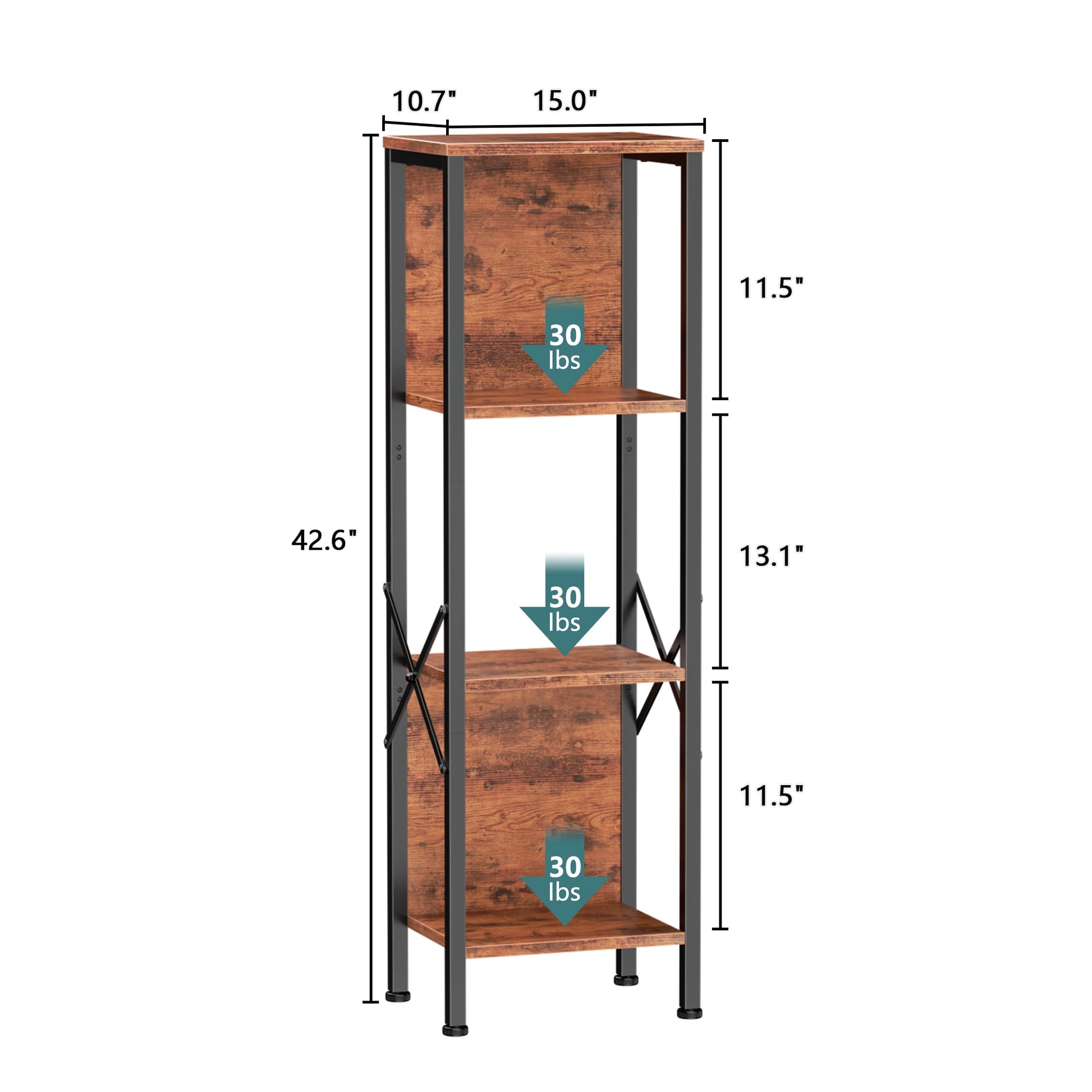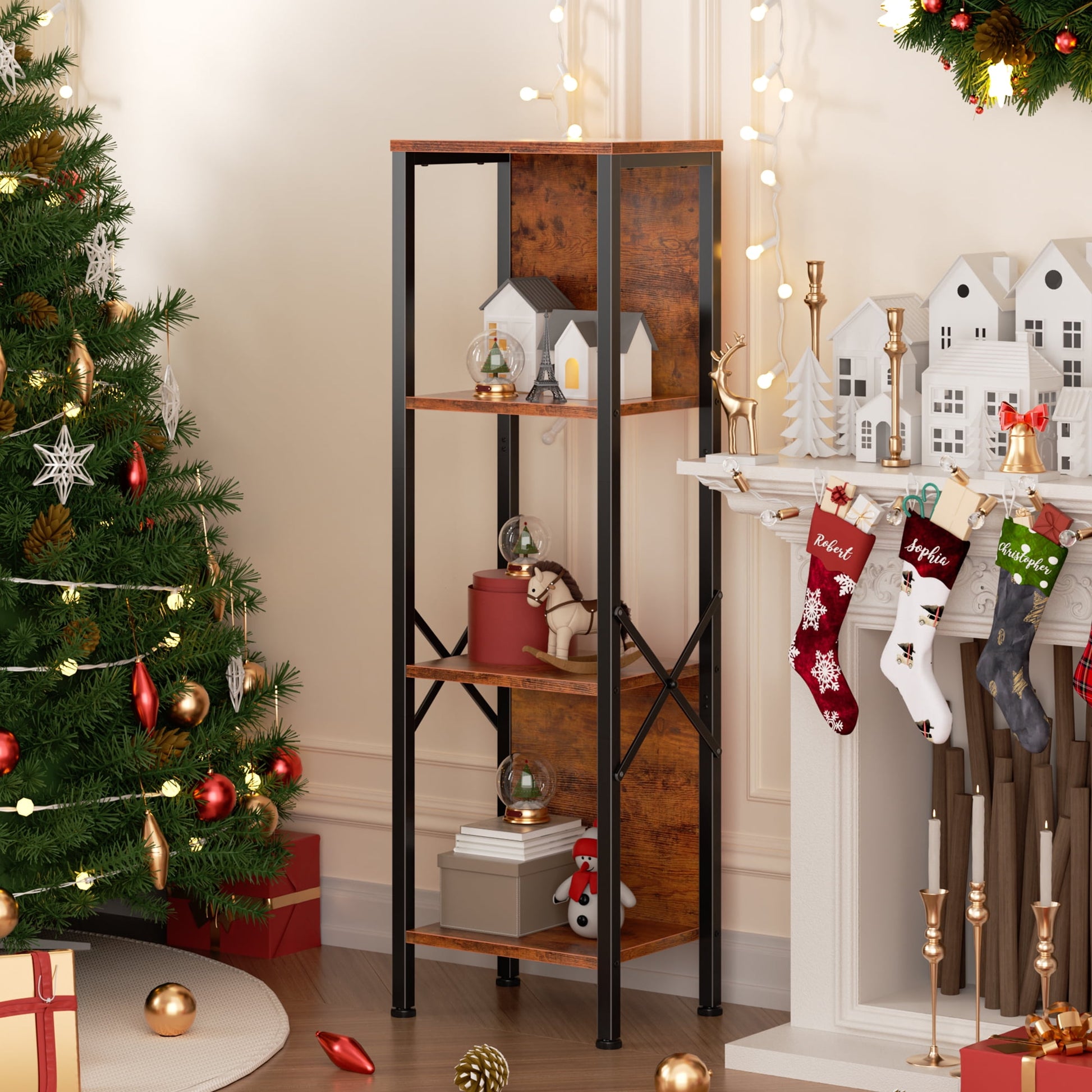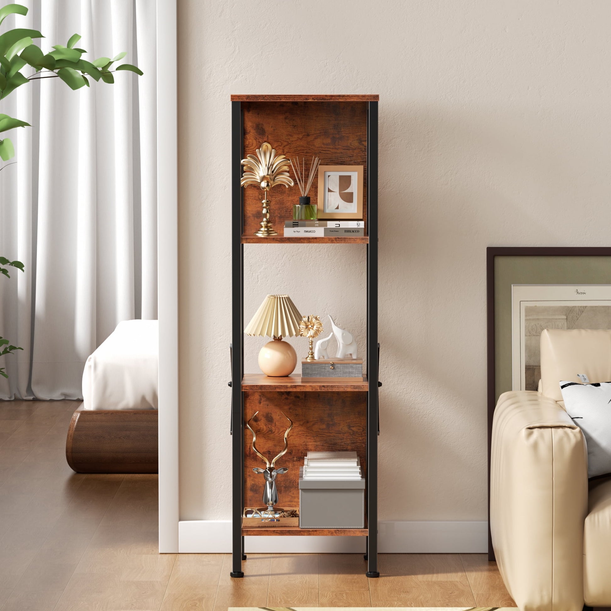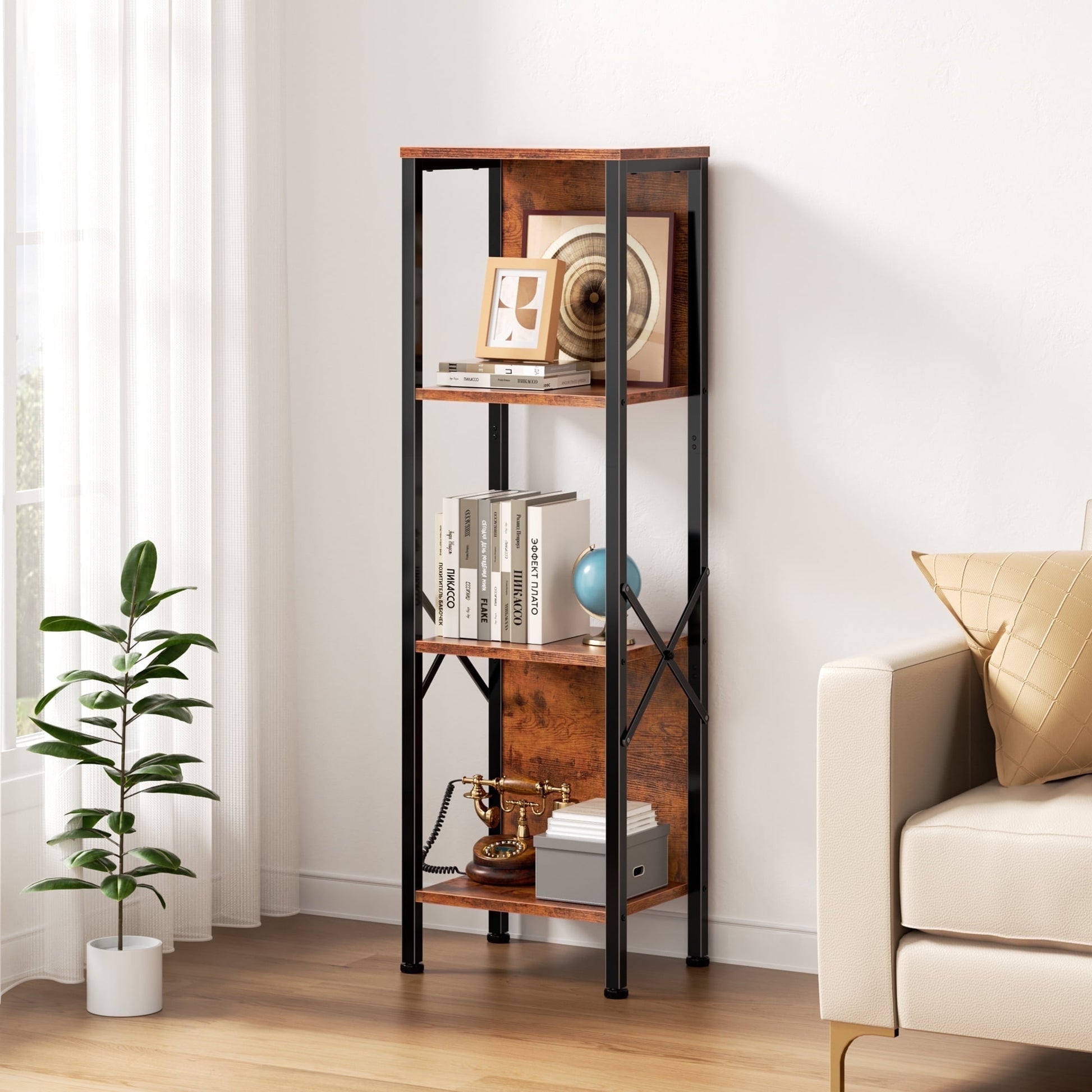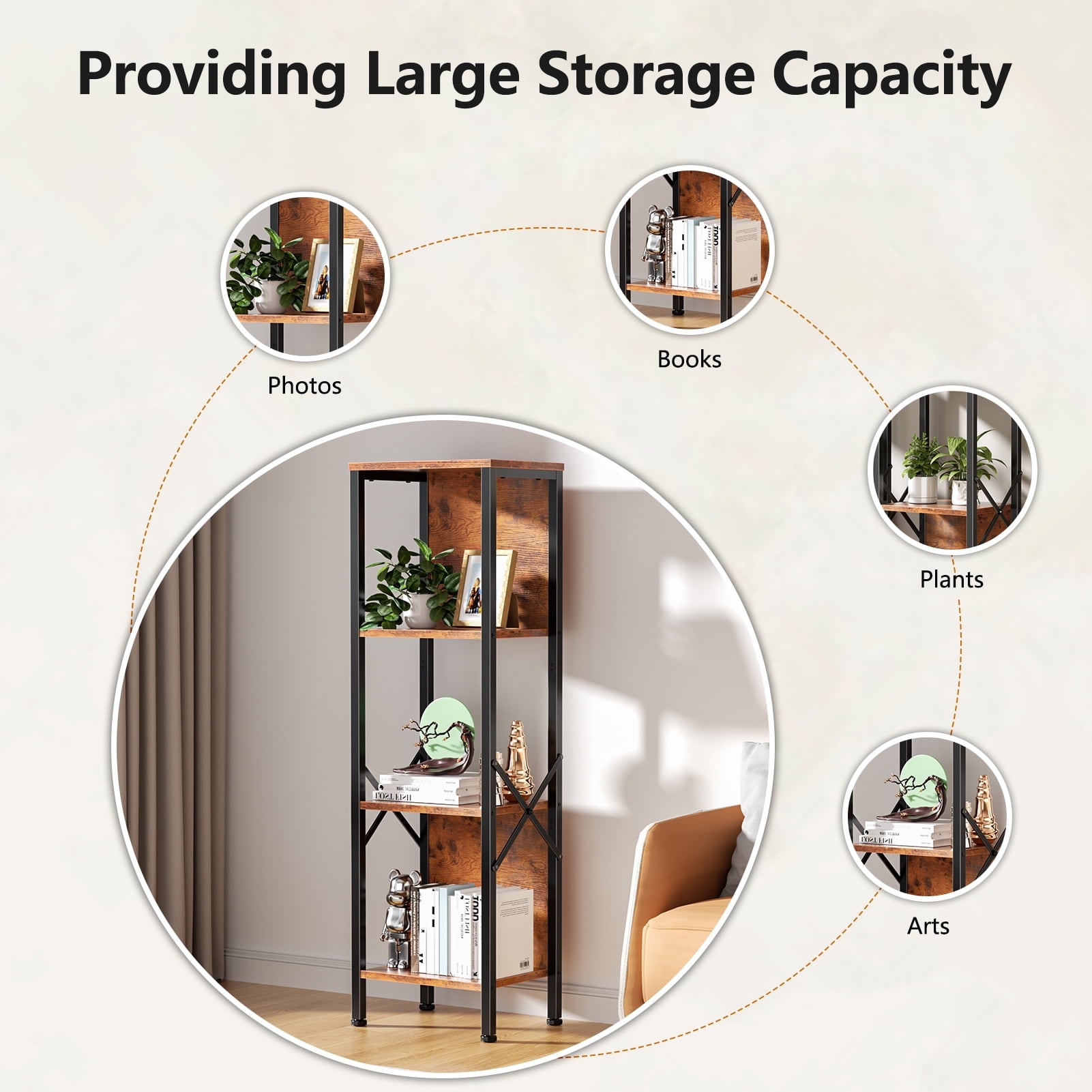 Satifur Bookshelf with 2 Large Backboards, Narrow Bookcase for Space Saving, Industrial Bookshelf with 4 Shelves for Office, Bathroom, Bedroom,Rustic Finish