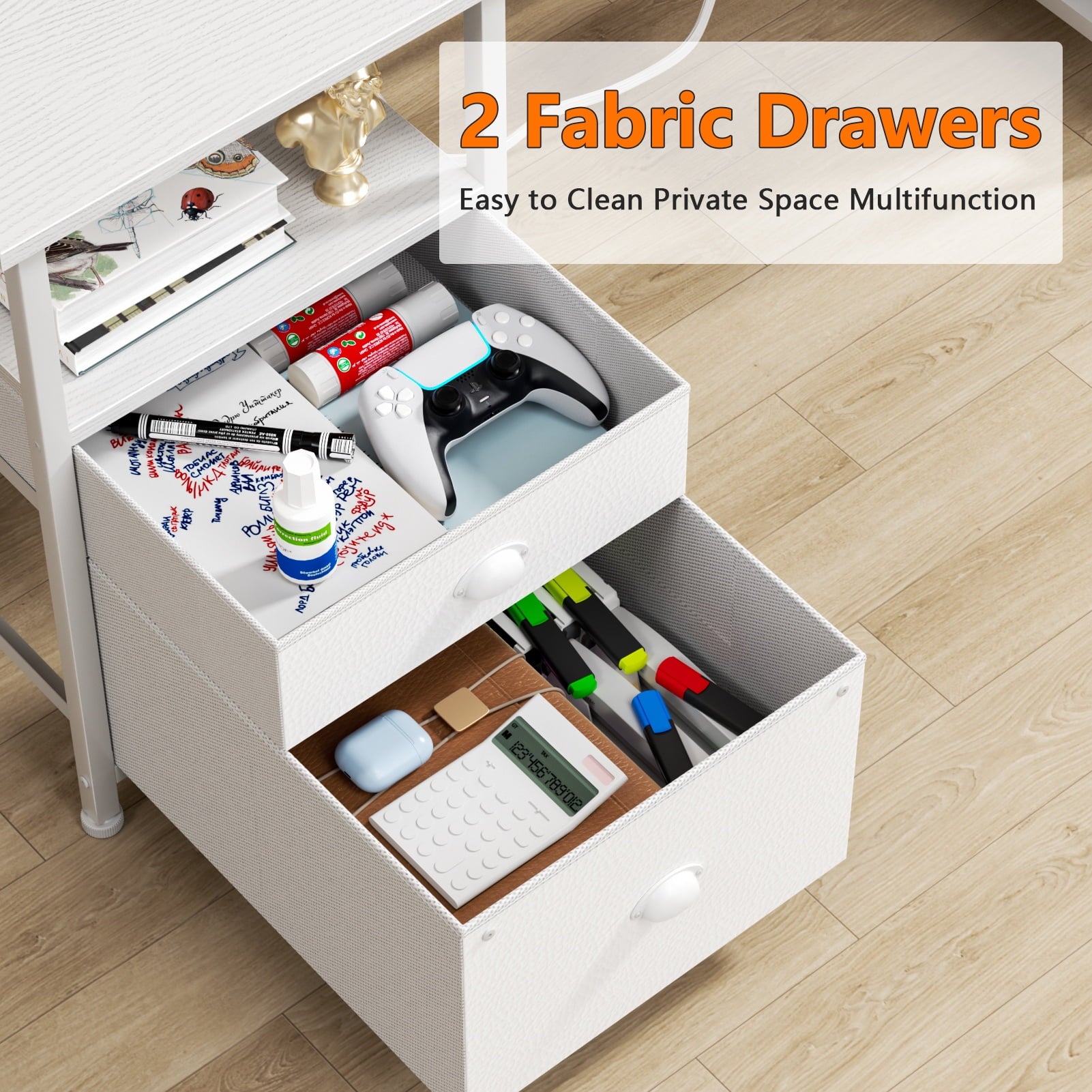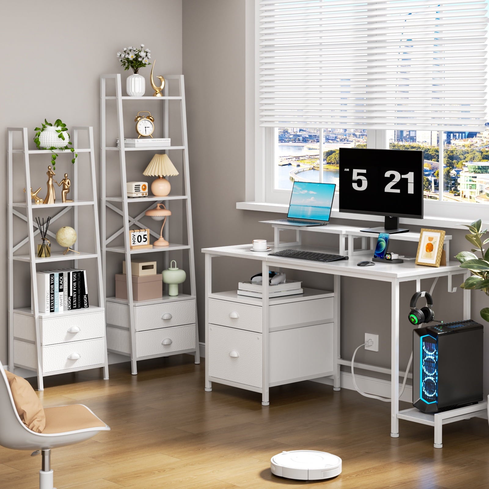 Satifur Computer Desk with Drawers & Charging Station, Gaming Desk with Movable Monitor Stands, Storage Shelves & File Cabinet, White