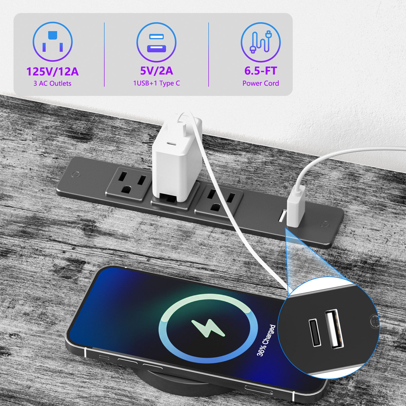 -- Built-in 3 power outlets and 2 USB ports for fast charging of all your devices.