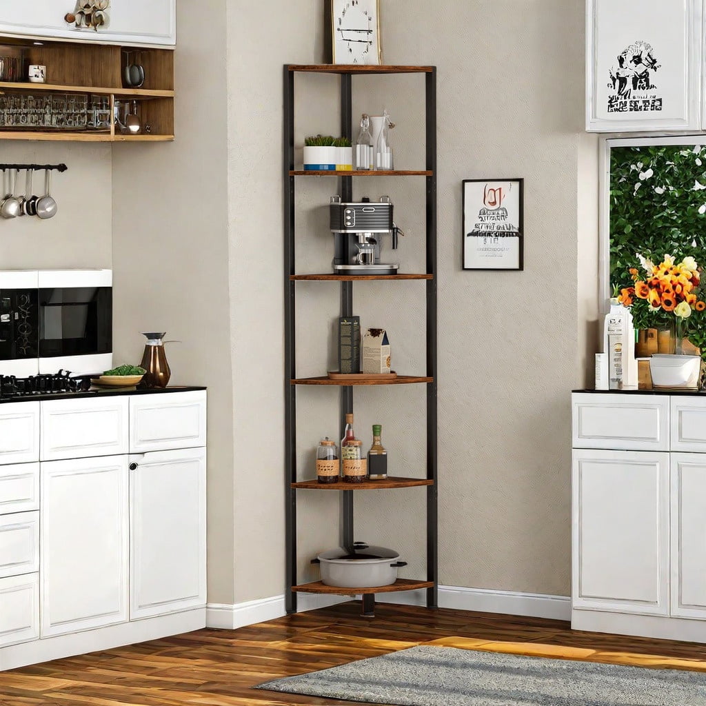 Satifur Corner Shelf Bookcase with LED Light Strip, 6-Tier Corner Bookshelf for Living Room,Bedroom,Kitchen,Rustic Brown