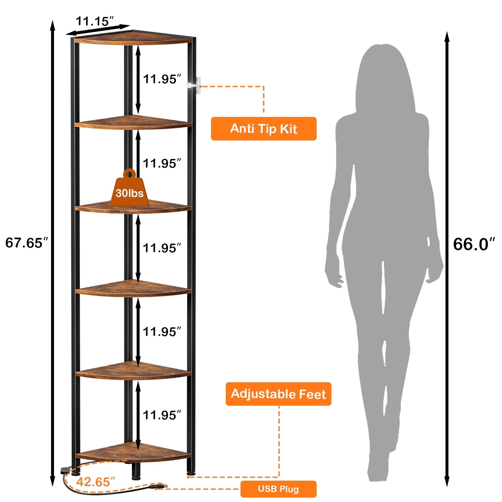 Dimensions: 11.15"D x 11.15"W x 67.65"H
