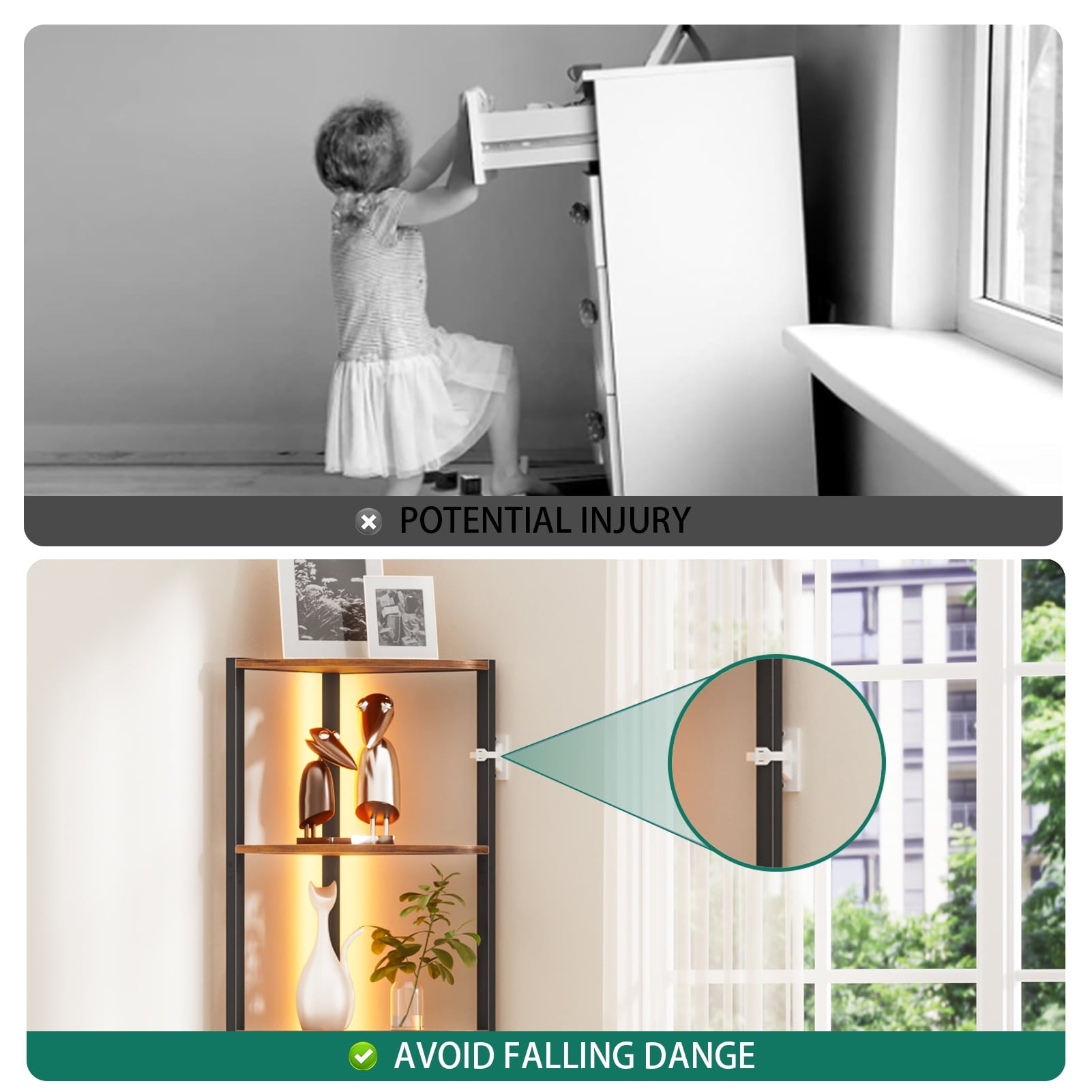 - High-quality materials and anti-toppling device ensure safety.