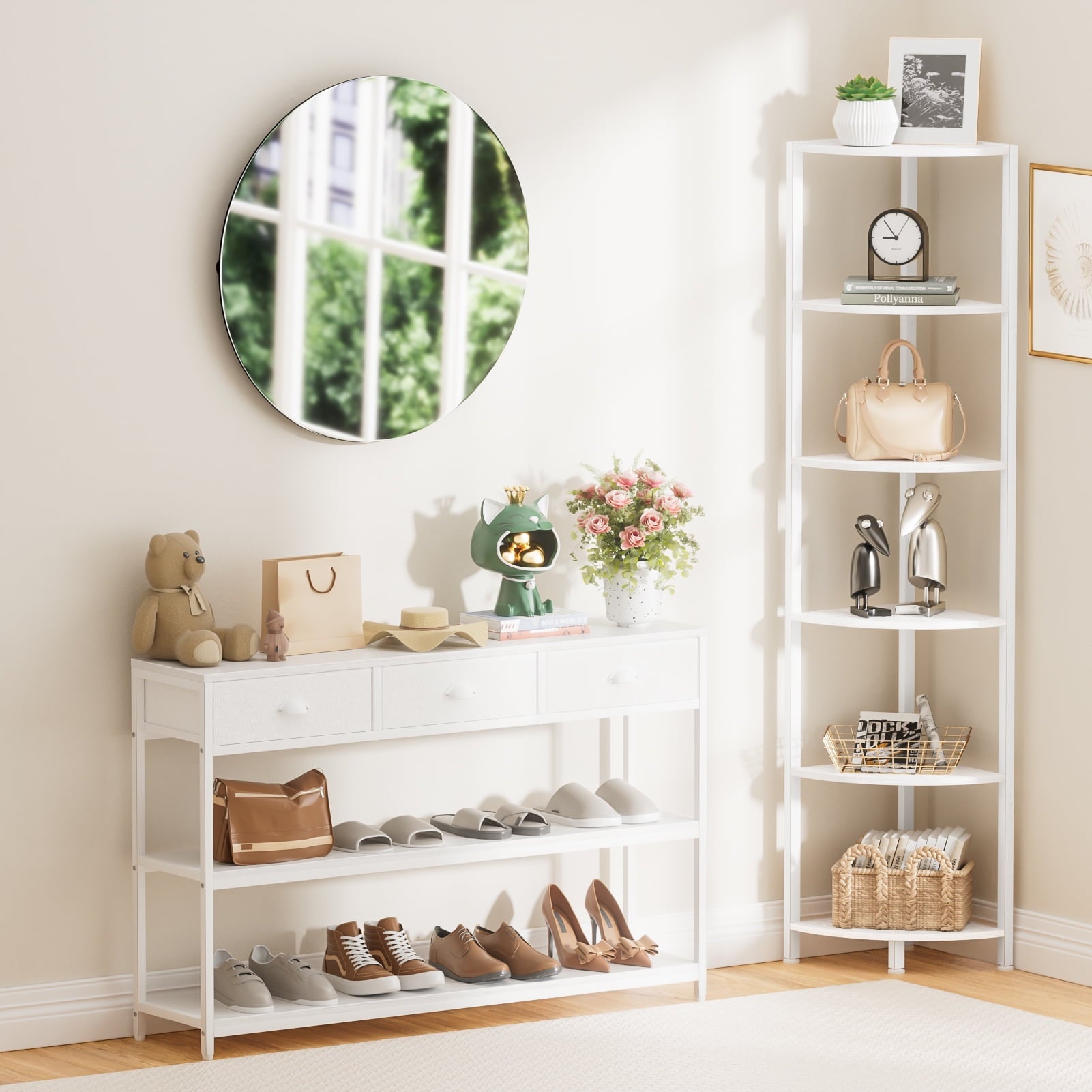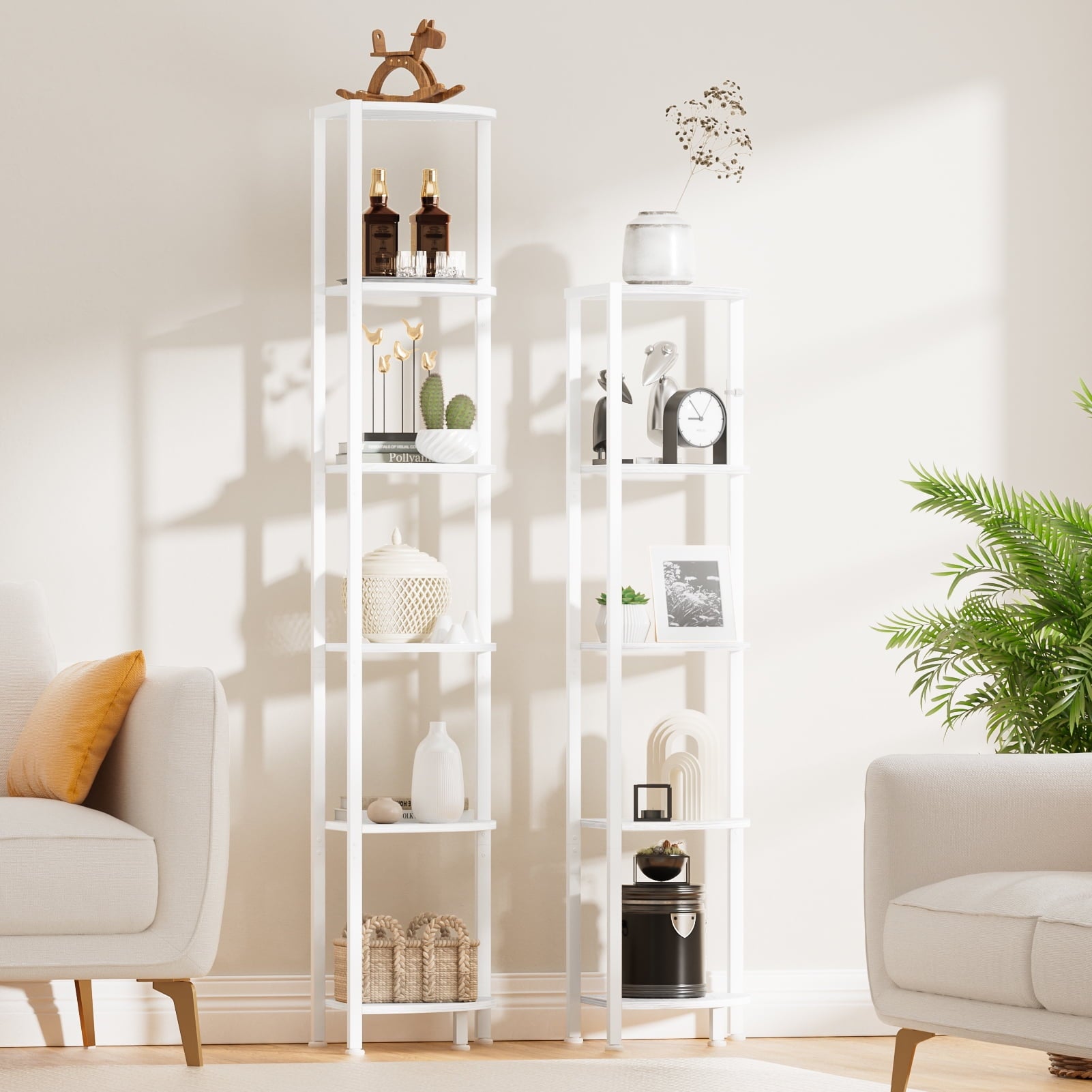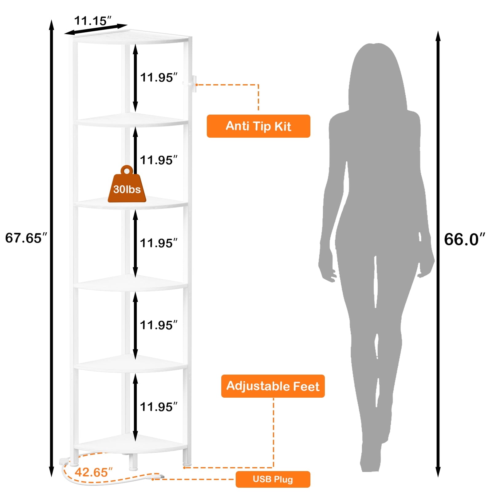 Satifur Corner Shelf Bookcase with LED Light Strip, 6-Tier Corner Bookshelf for Living Room,Bedroom,White