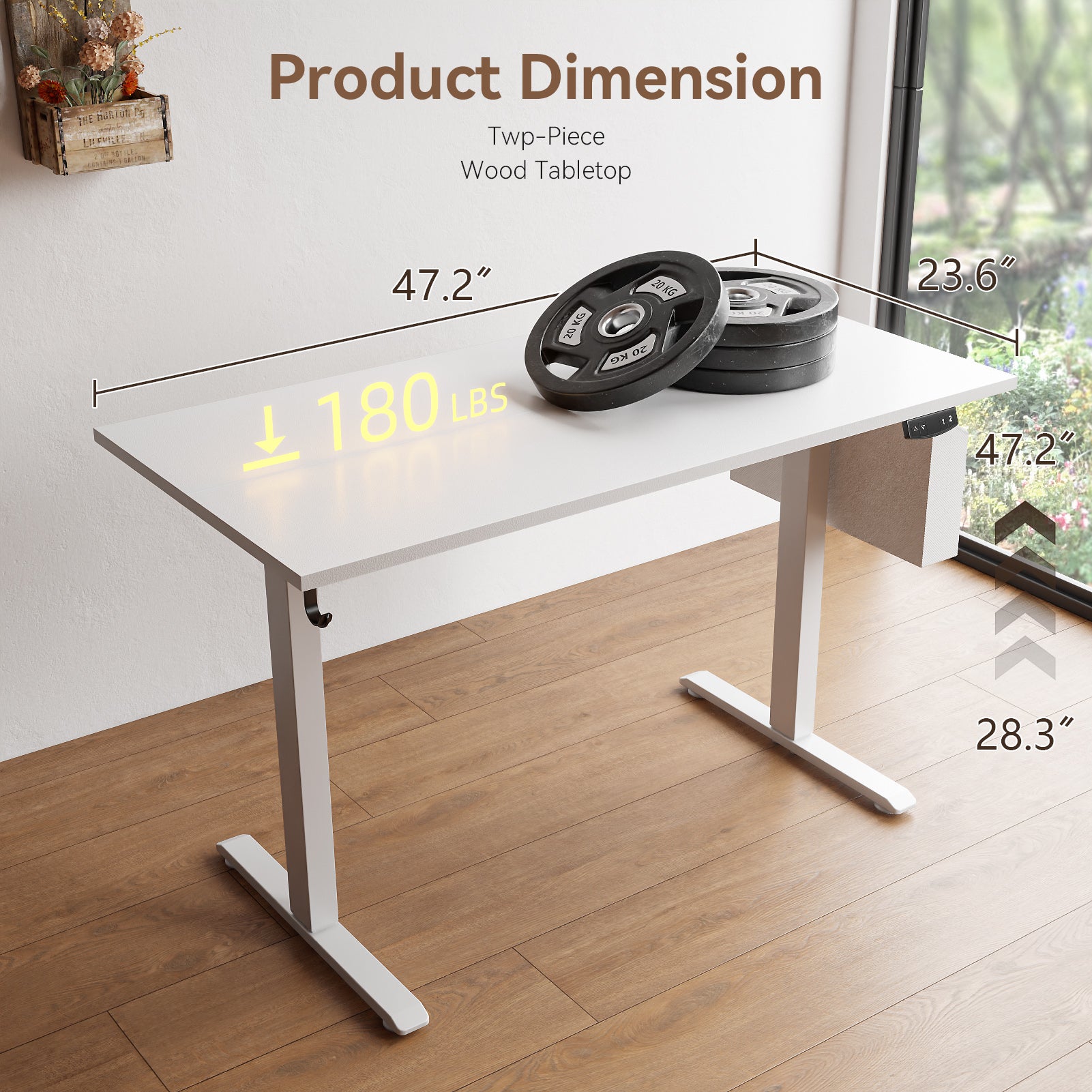 Electric Adjustment: Standing desk can adjust the height between 28.35"-47.24" according to your needs, with 2 memory buttons for different occasions