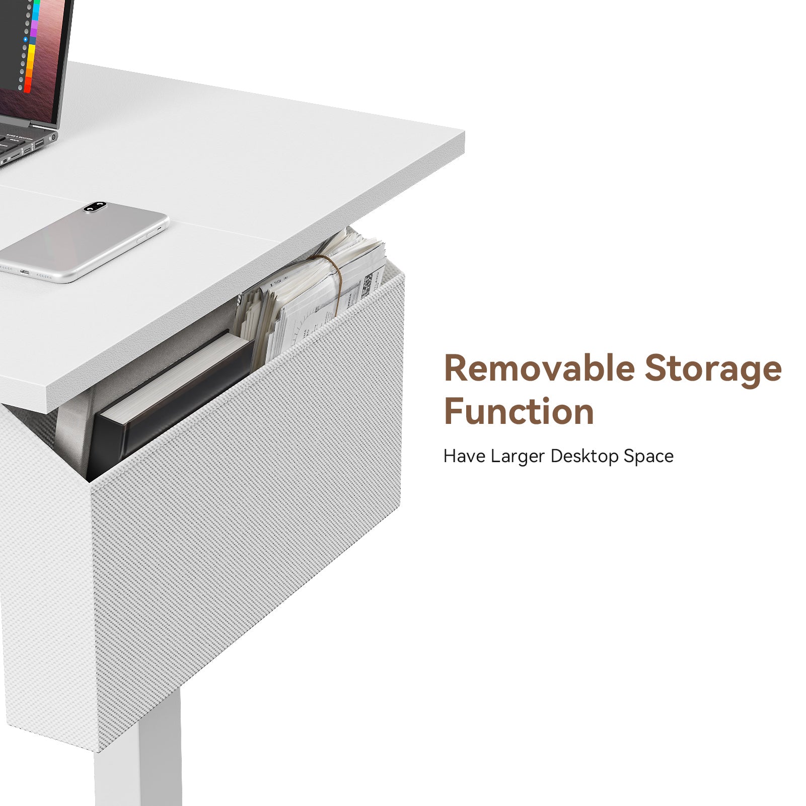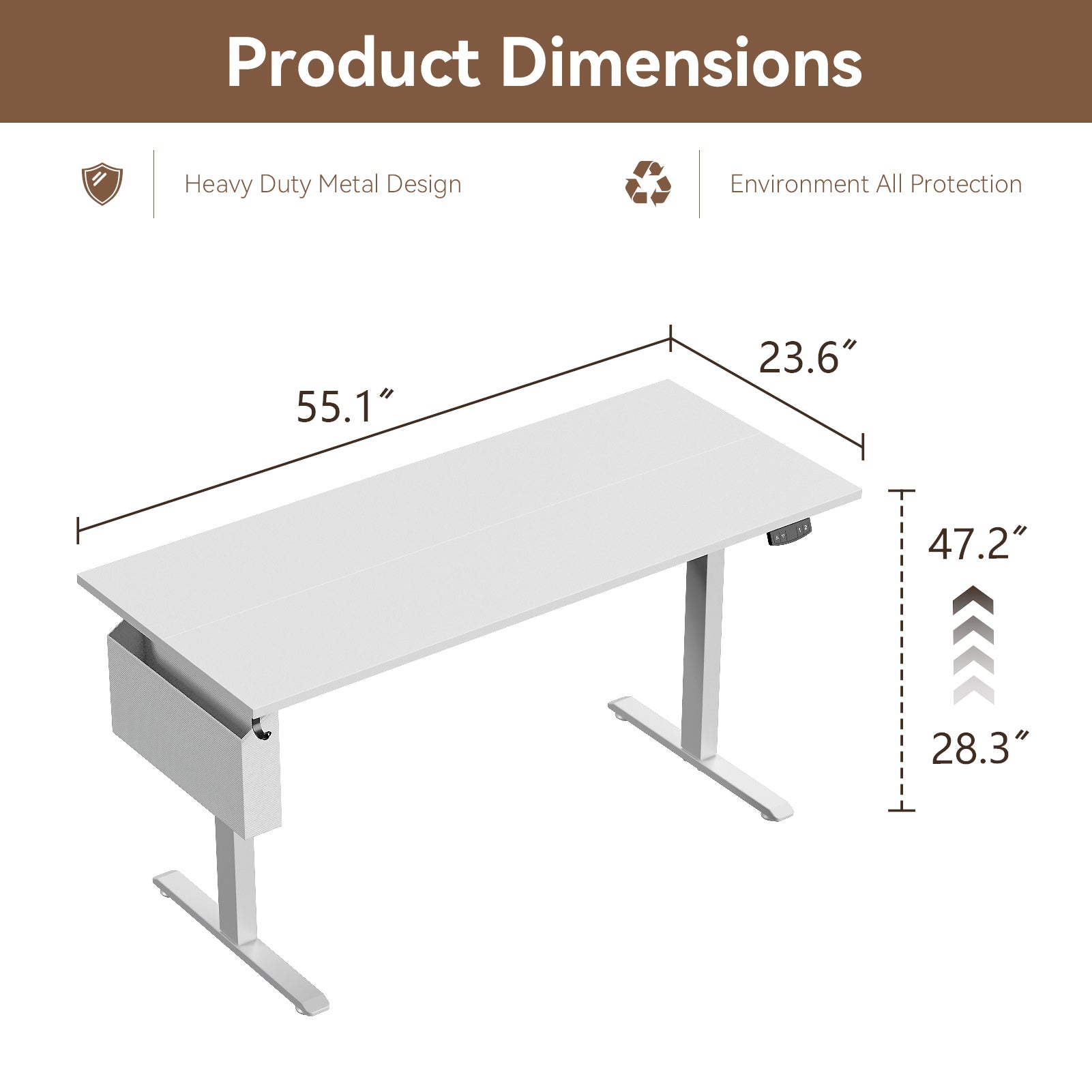 Satifur Electric Standing Desk 55", Ergonomic Computer Desk with Memory Preset, Height Adjustable Sit Stand Desk with Hooks & Storage, White