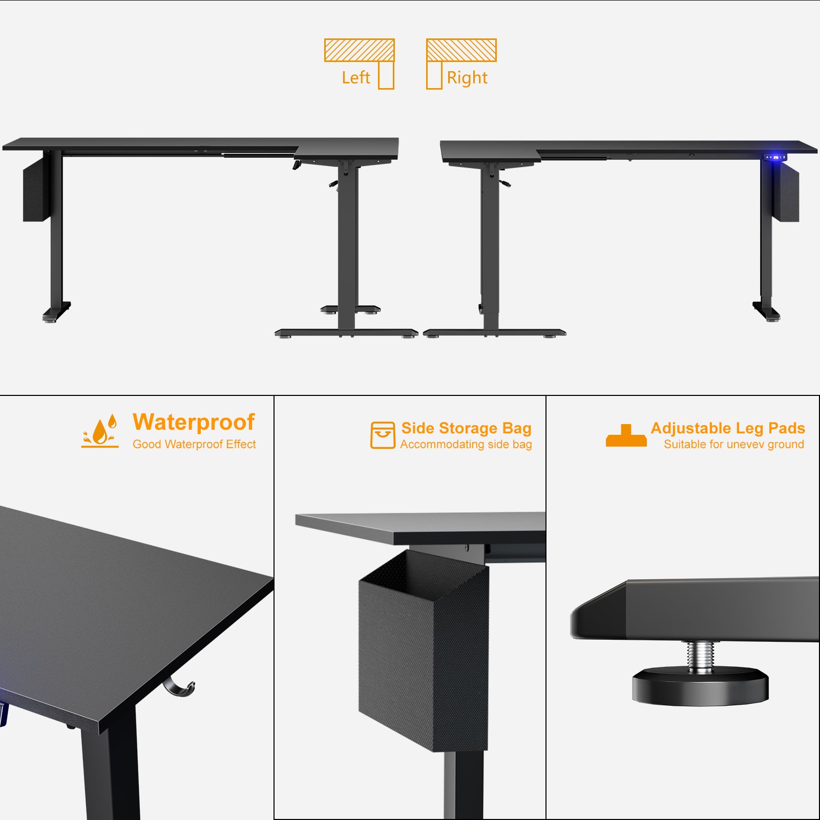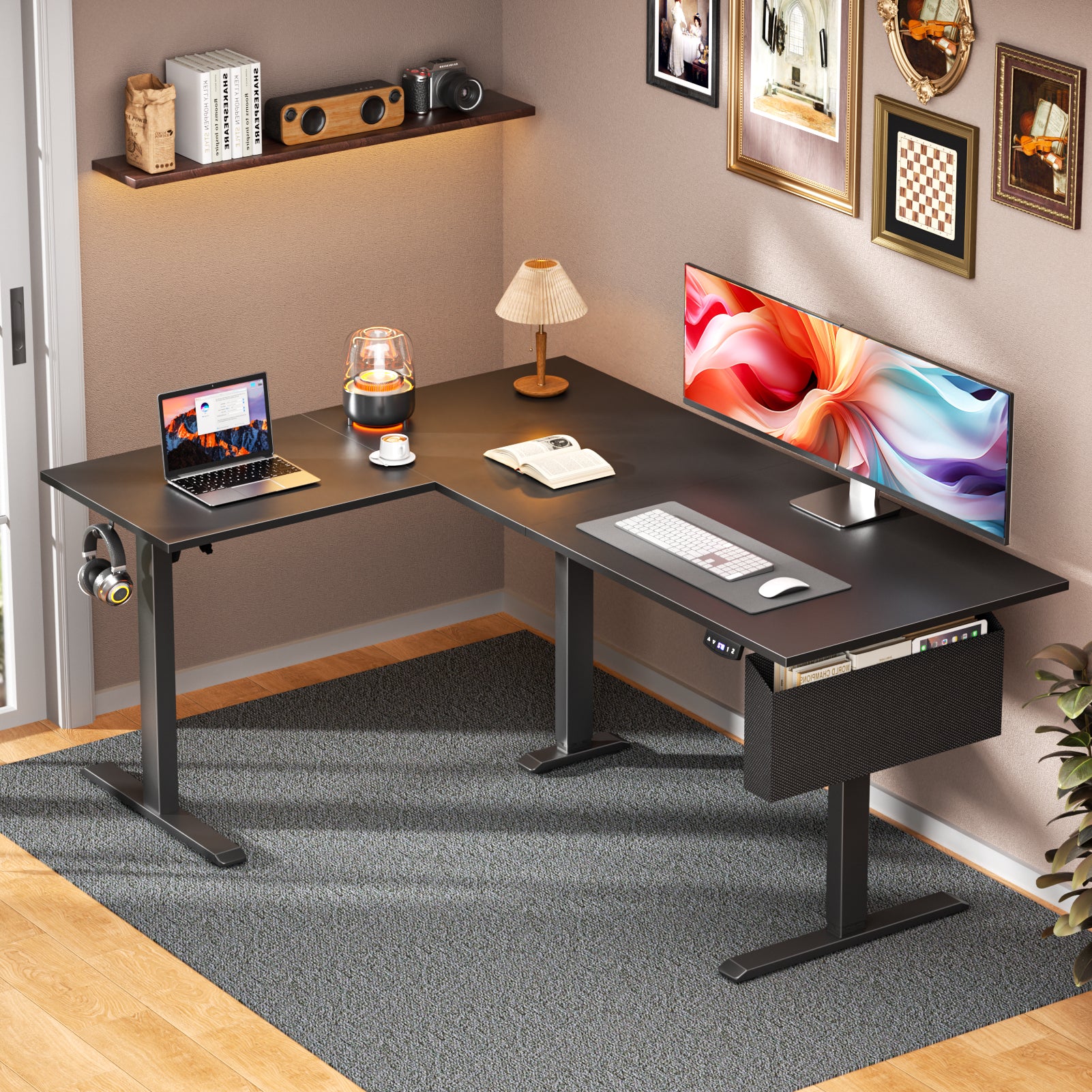 Satifur Electric Standing Desk 63" L-Shaped, Ergonomic Computer Desk with Memory Preset, Height Adjustable Sit Stand Desk with Hooks & Storage, Black