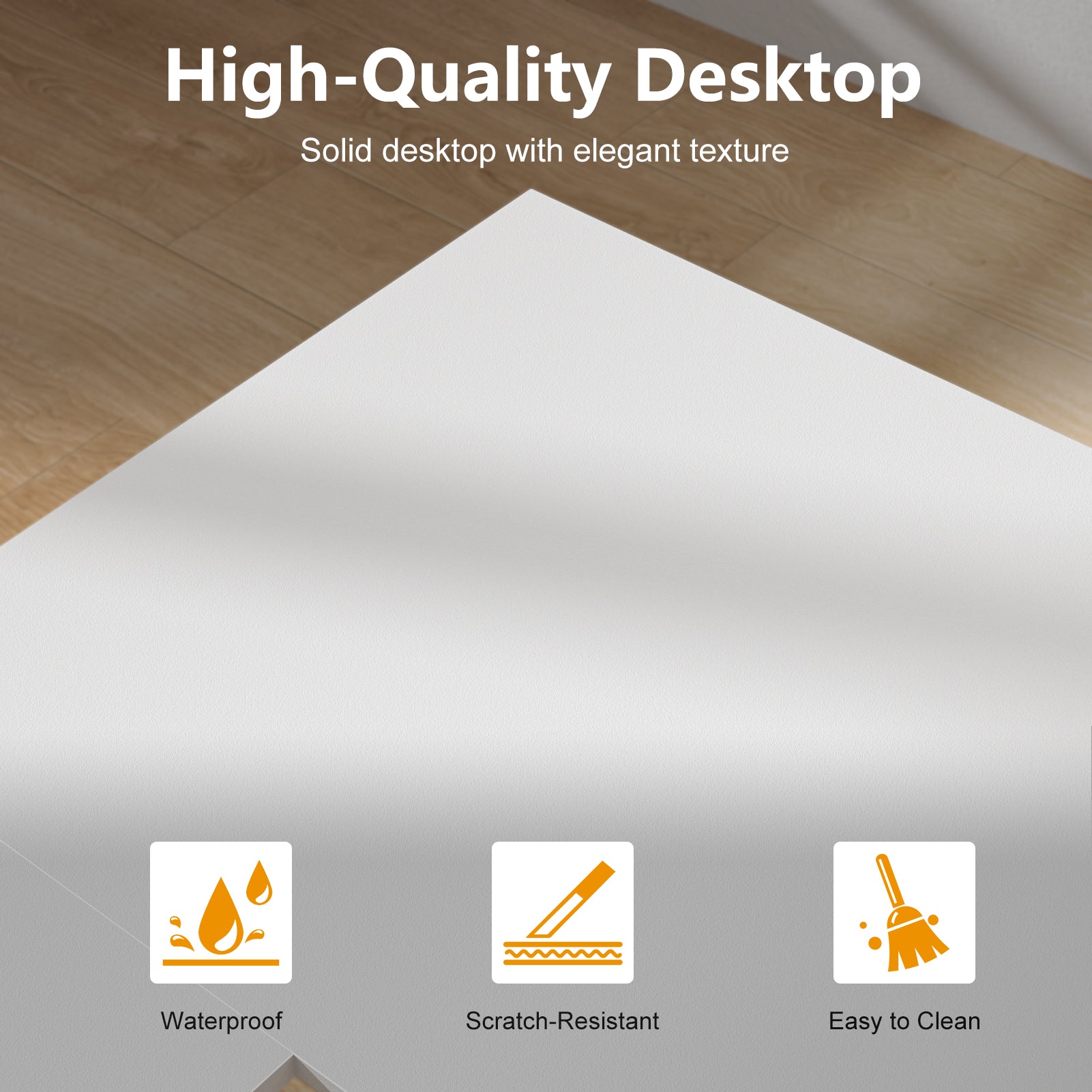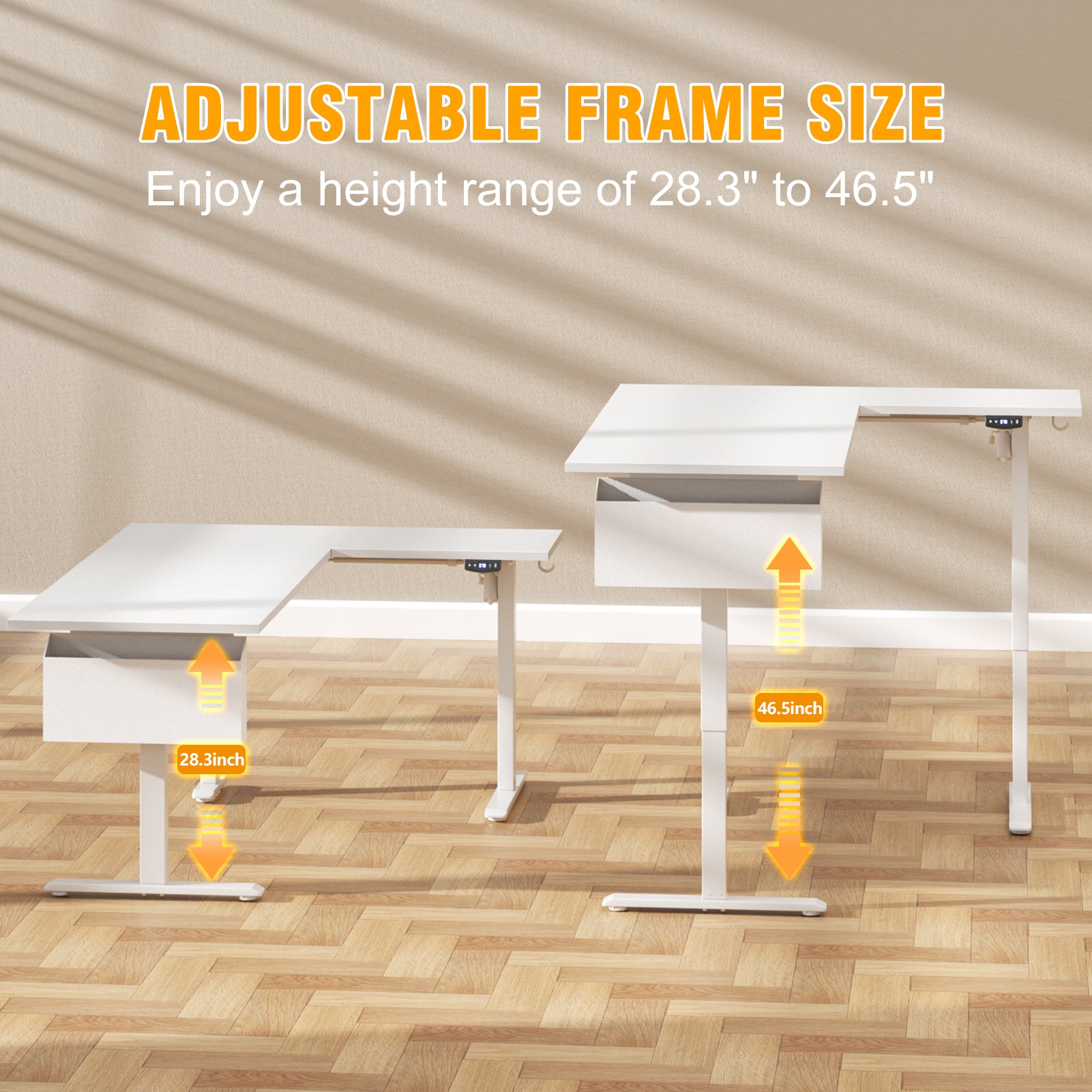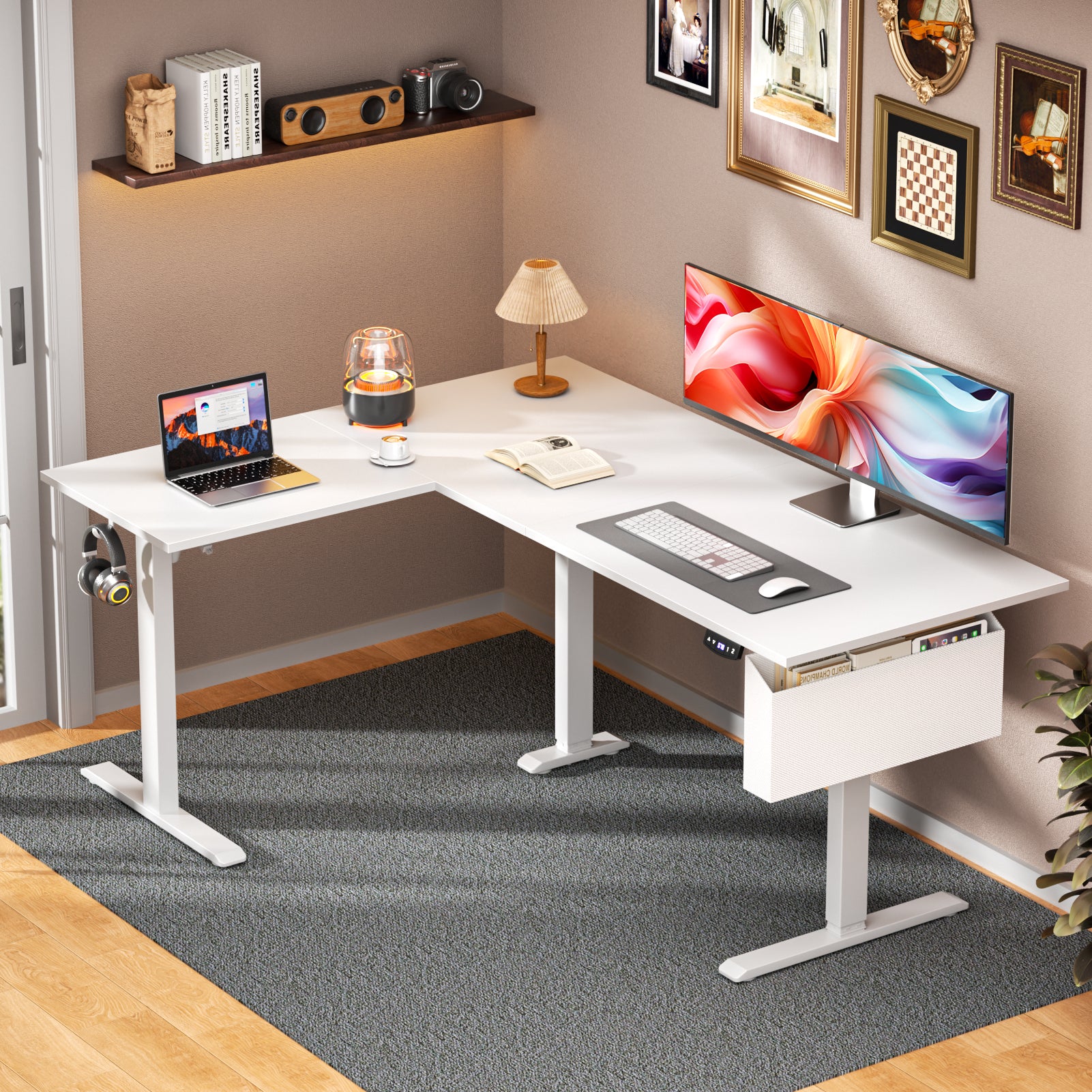 Satifur Electric Standing Desk 63" L-Shaped, Ergonomic Computer Desk with Memory Preset, Height Adjustable Sit Stand Desk with Hooks & Storage, White