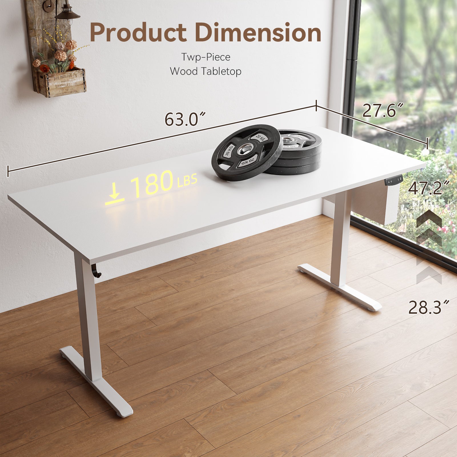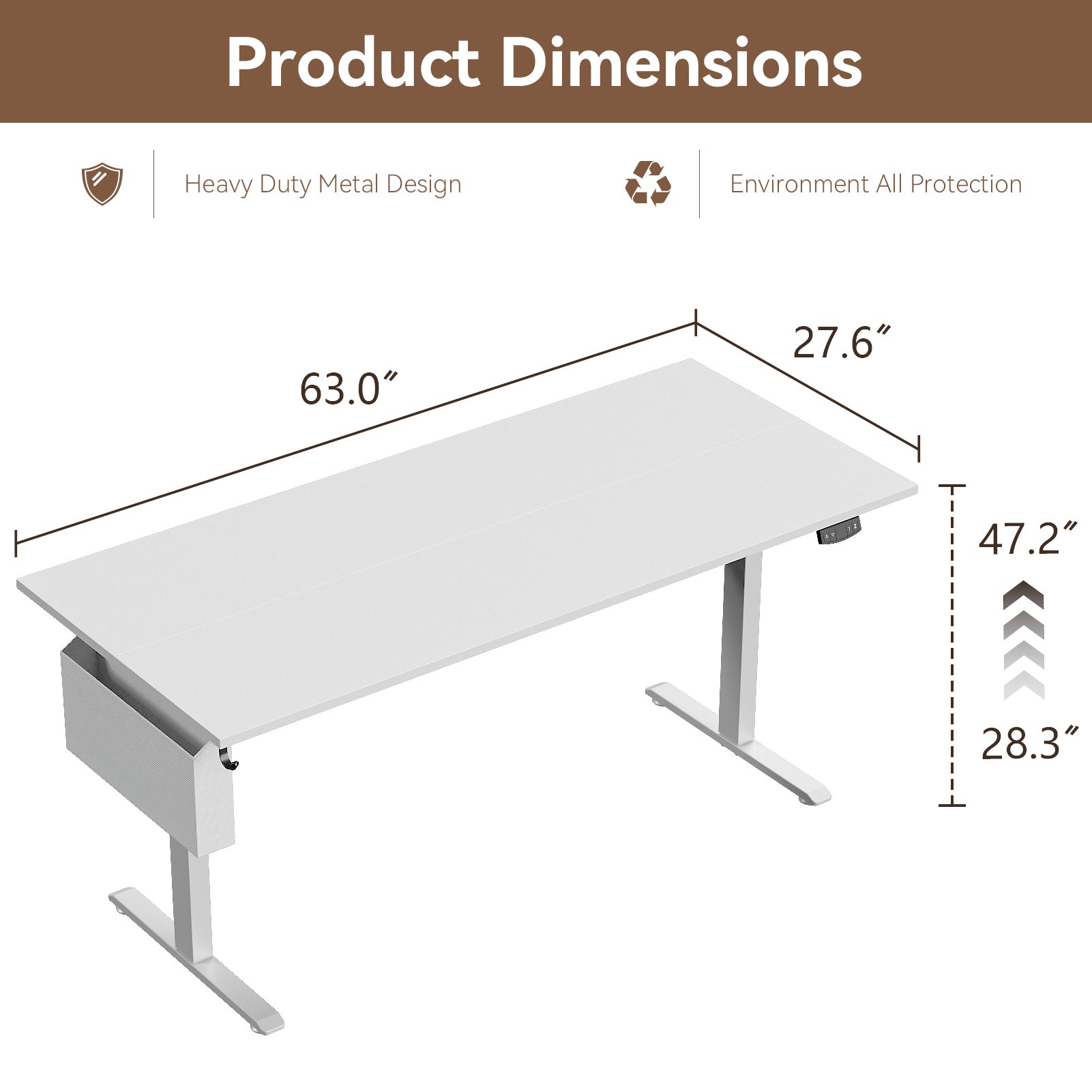Satifur Electric Standing Desk 63" x 27.5", Ergonomic Computer Desk with Memory Preset, Height Adjustable Sit Stand Desk with Hooks & Storage, White