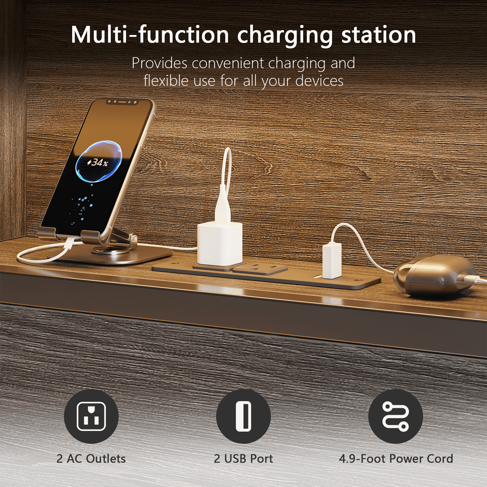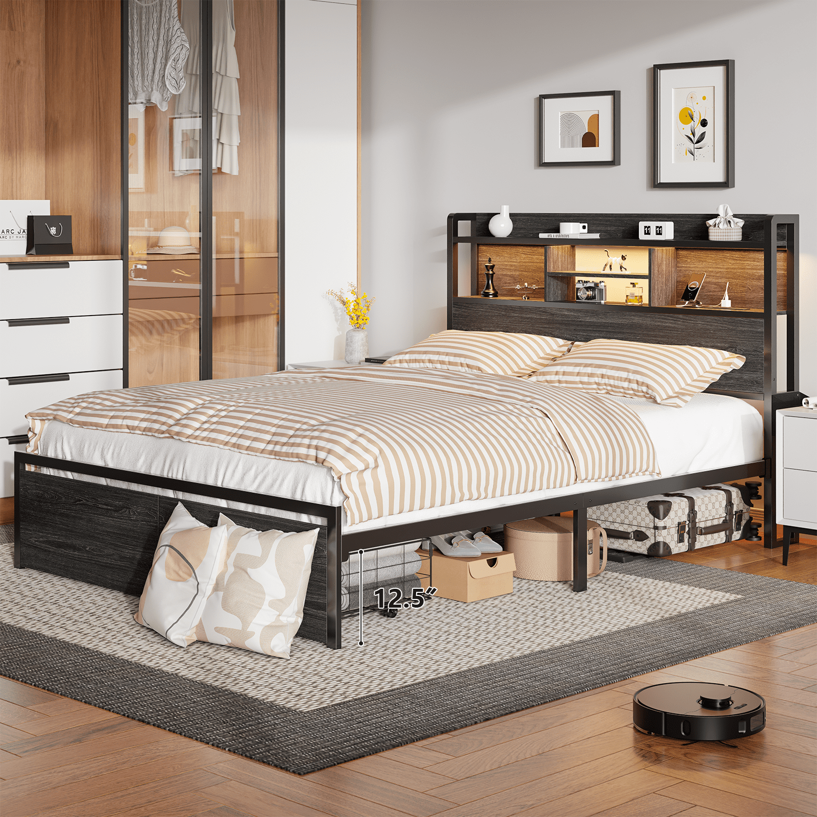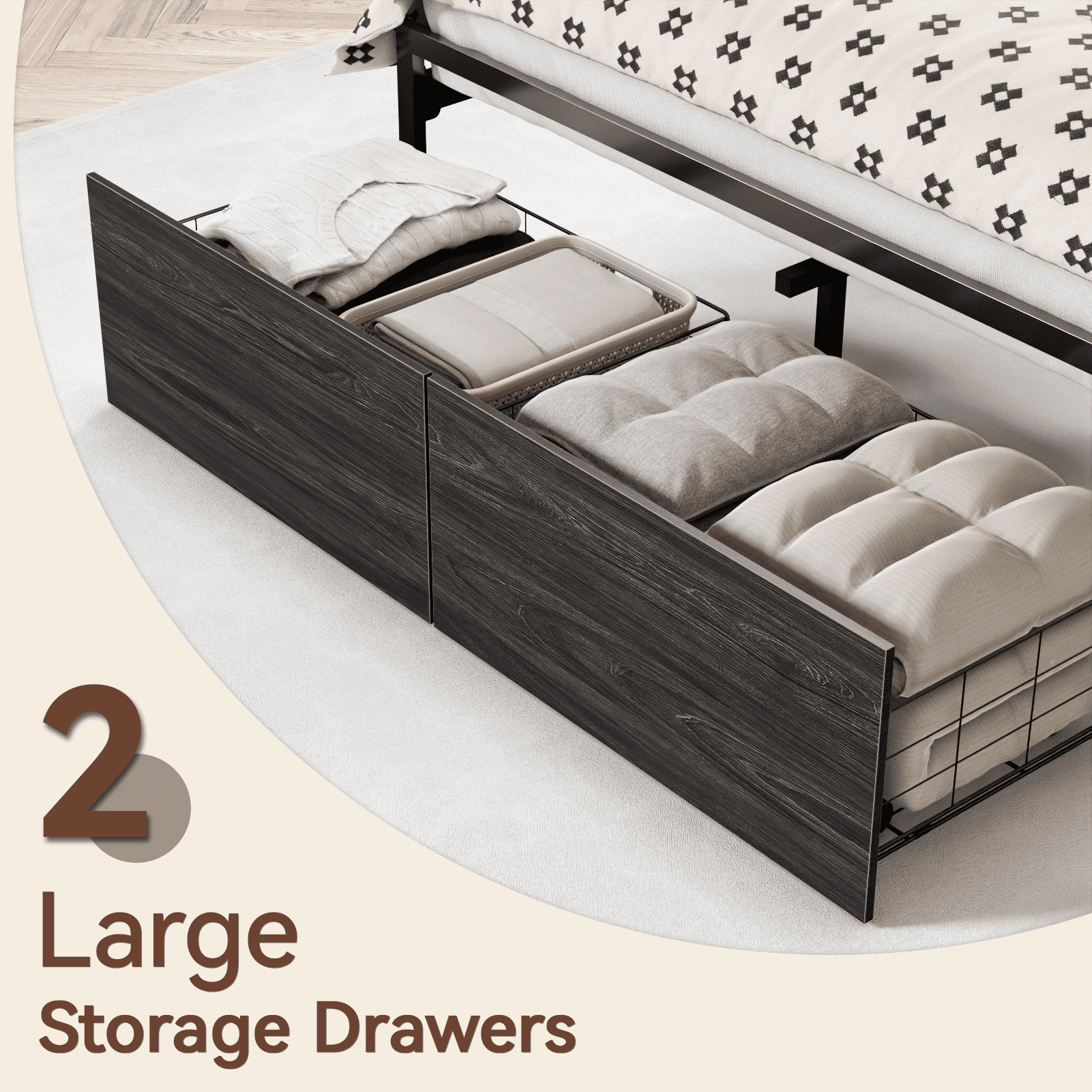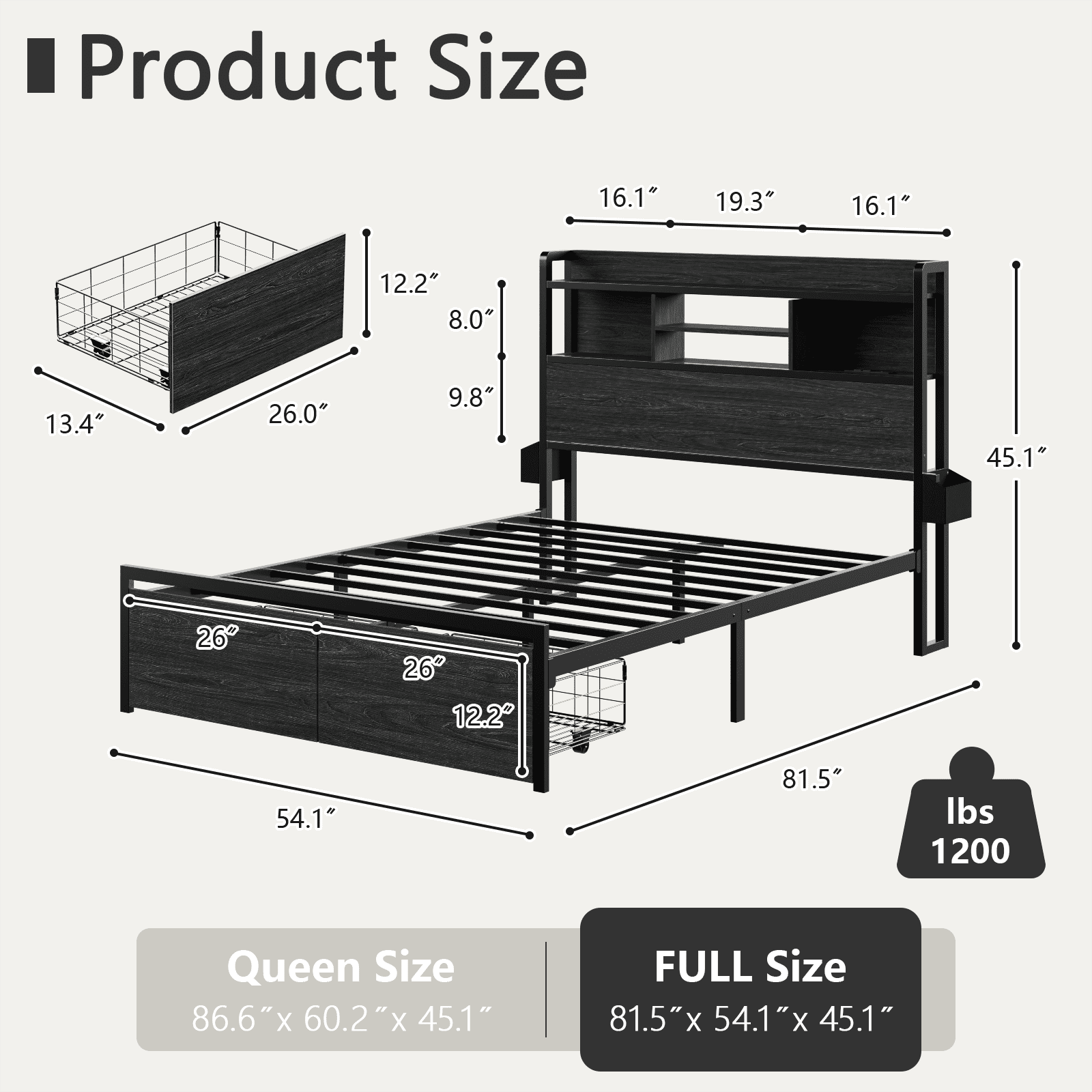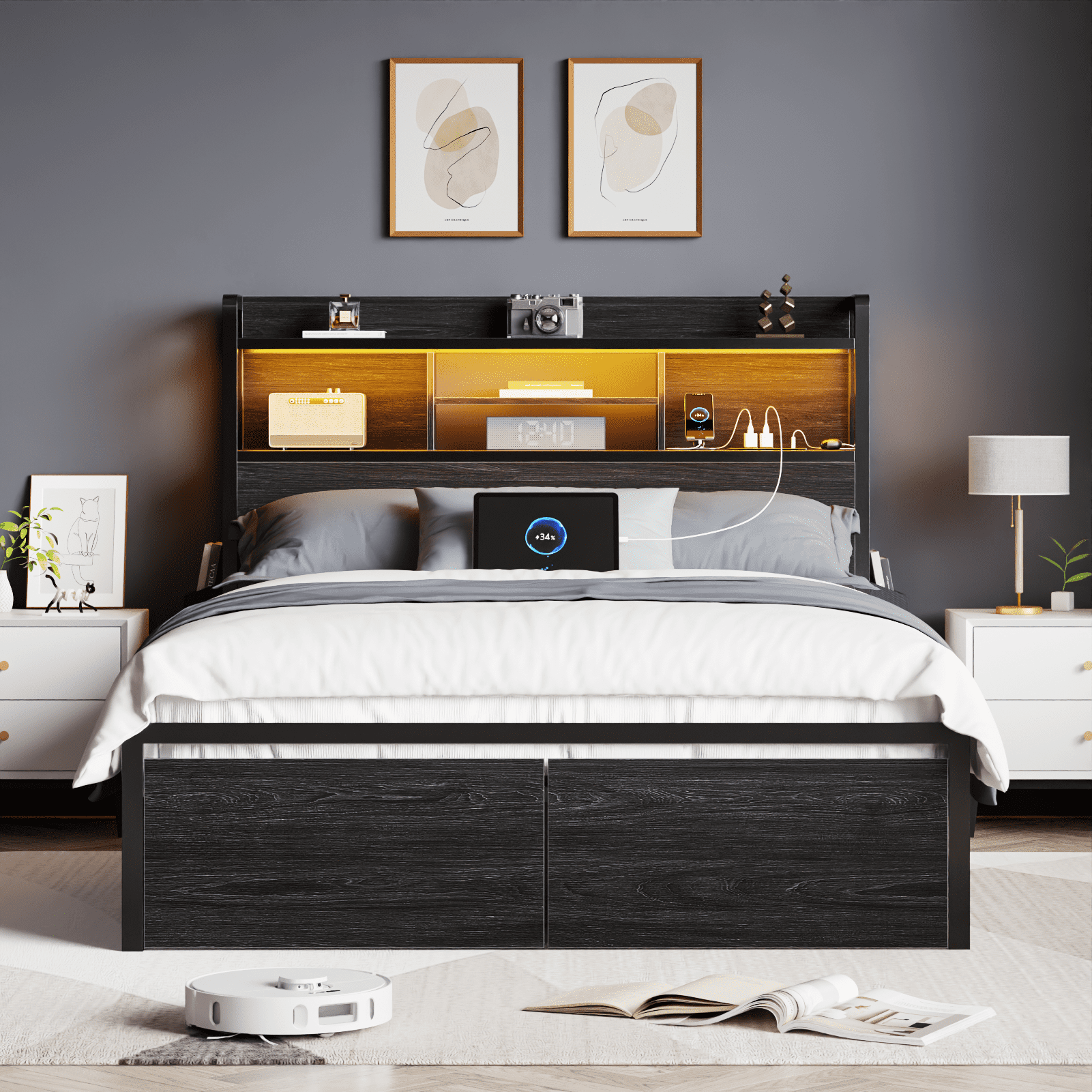Satifur Full Bed Frame with Upholstered Headboard, Platform Bed Full with LED Lights & 2 Drawers, No Box Spring Needed
