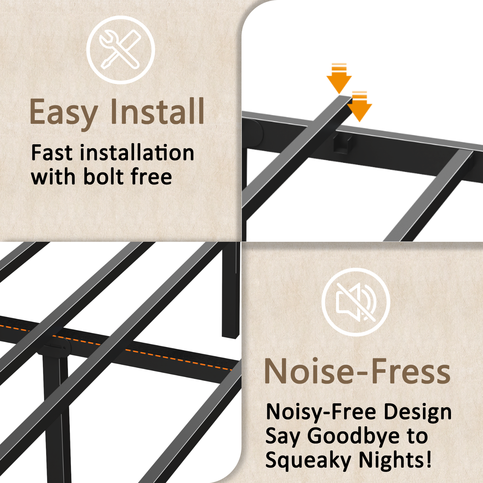 Easy to Assemble - Designed for seamless setup, our bed frame comes with everything you need for quick and easy assembly. Enjoy the benefits of your new bed frame in no time. The low-maintenance design of this bed frame makes cleaning and upkeep a breeze, ensuring it remains a hassle-free addition to your bedroom.