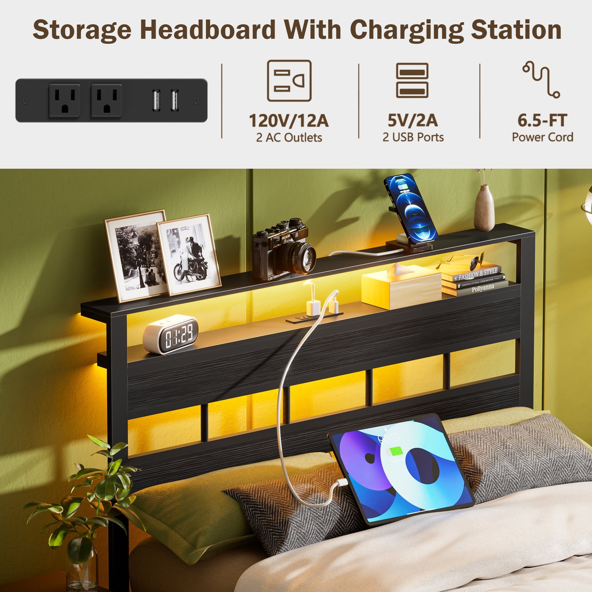 Introducing the Satifur Full Size Bed Frame with High LED Storage Headboard Shelf ¨C a versatile and stylish addition to any bedroom. Crafted from durable metal, this platform bed offers both functionality and elegance, making it the perfect choice for enhancing your sleep environment.