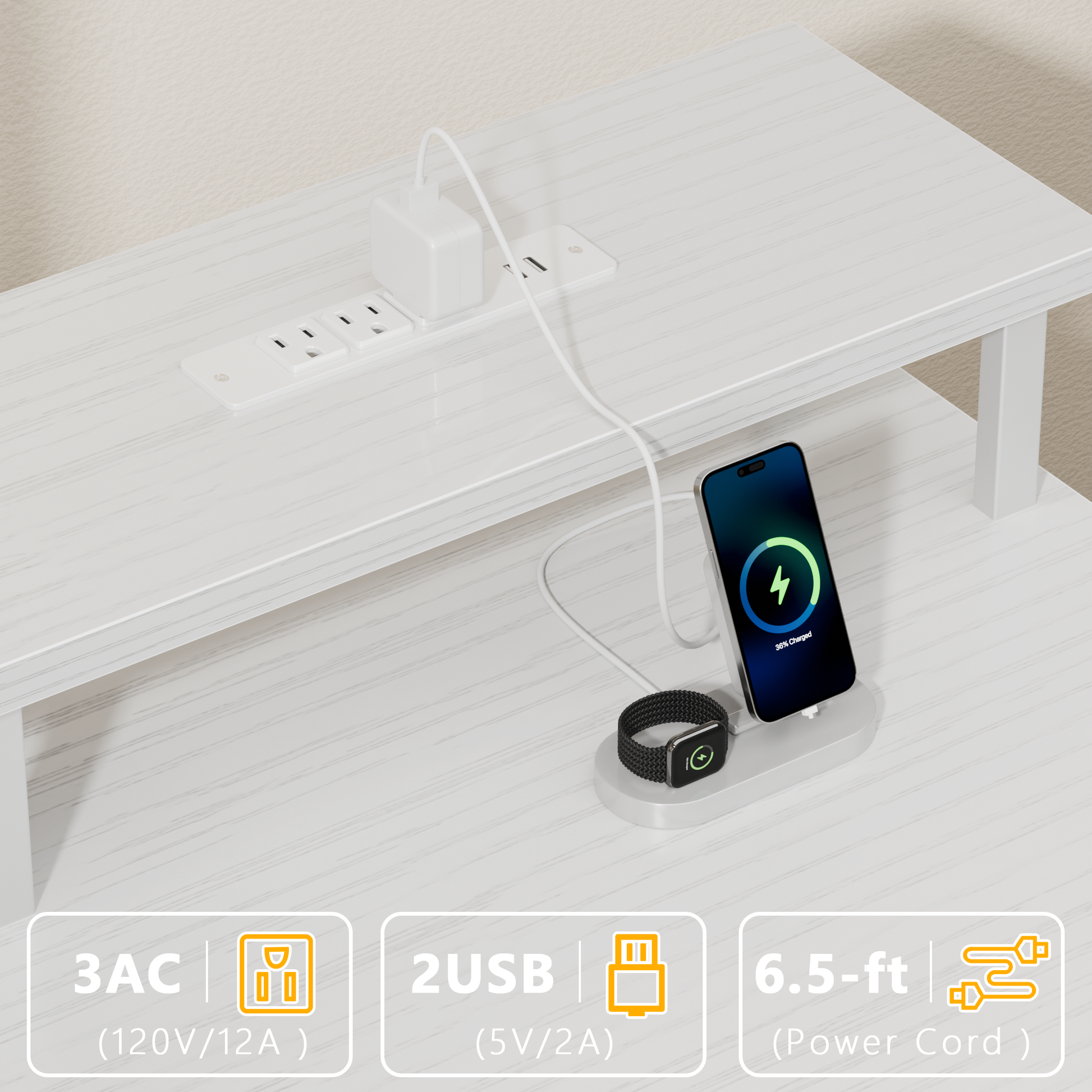 Integrated Power Hub: The Satifur computer desk keeps all your devices charged and within reach. It is equipped with 3 AC outlets and 2 USB ports, making it easy to power your computer, monitor, and phone simultaneously for an efficient, clutter-free workspace.