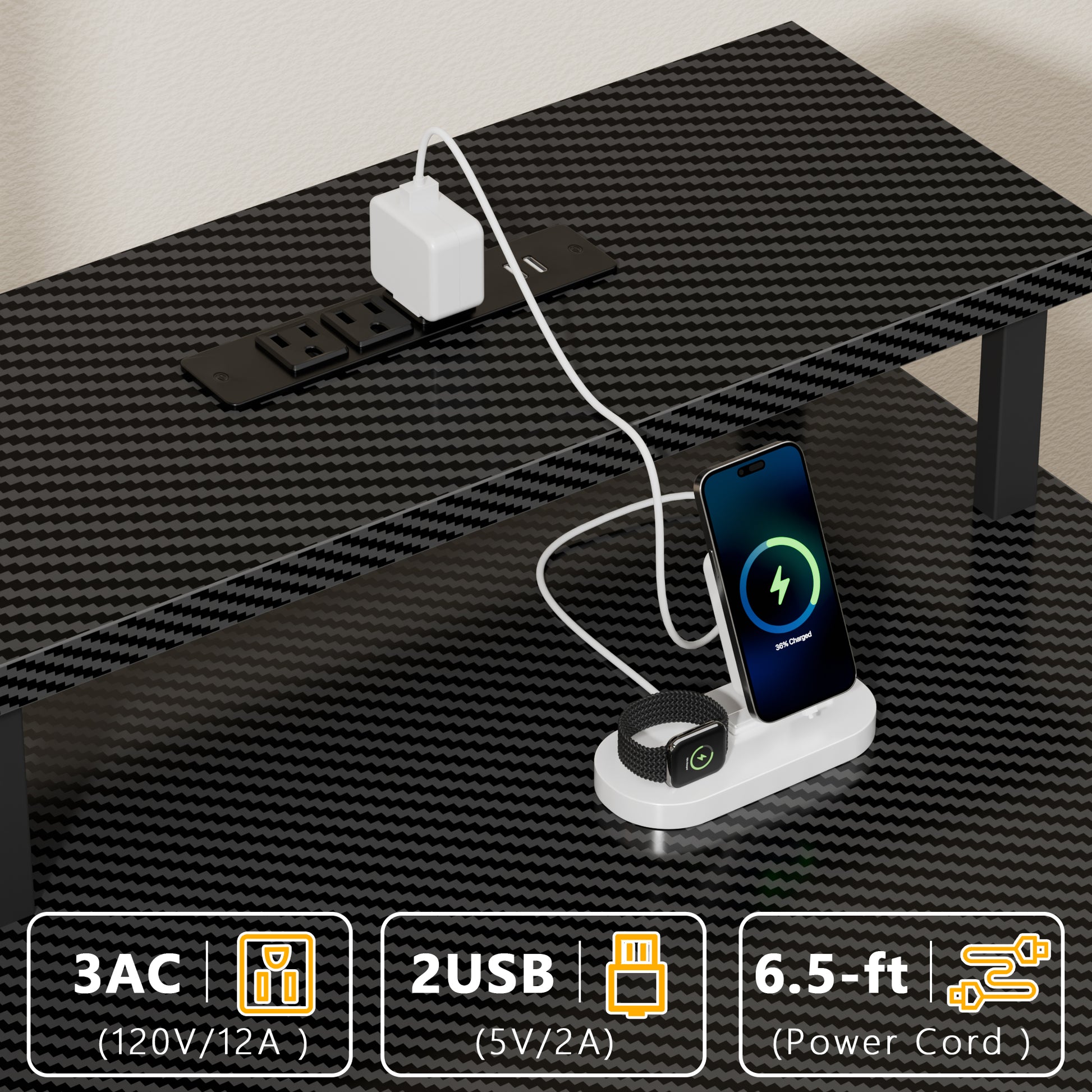Integrated Power Hub: The Satifur computer desk keeps all your devices charged and within reach. It is equipped with 3 AC outlets and 2 USB ports, making it easy to power your computer, monitor, and phone simultaneously for an efficient, clutter-free workspace.