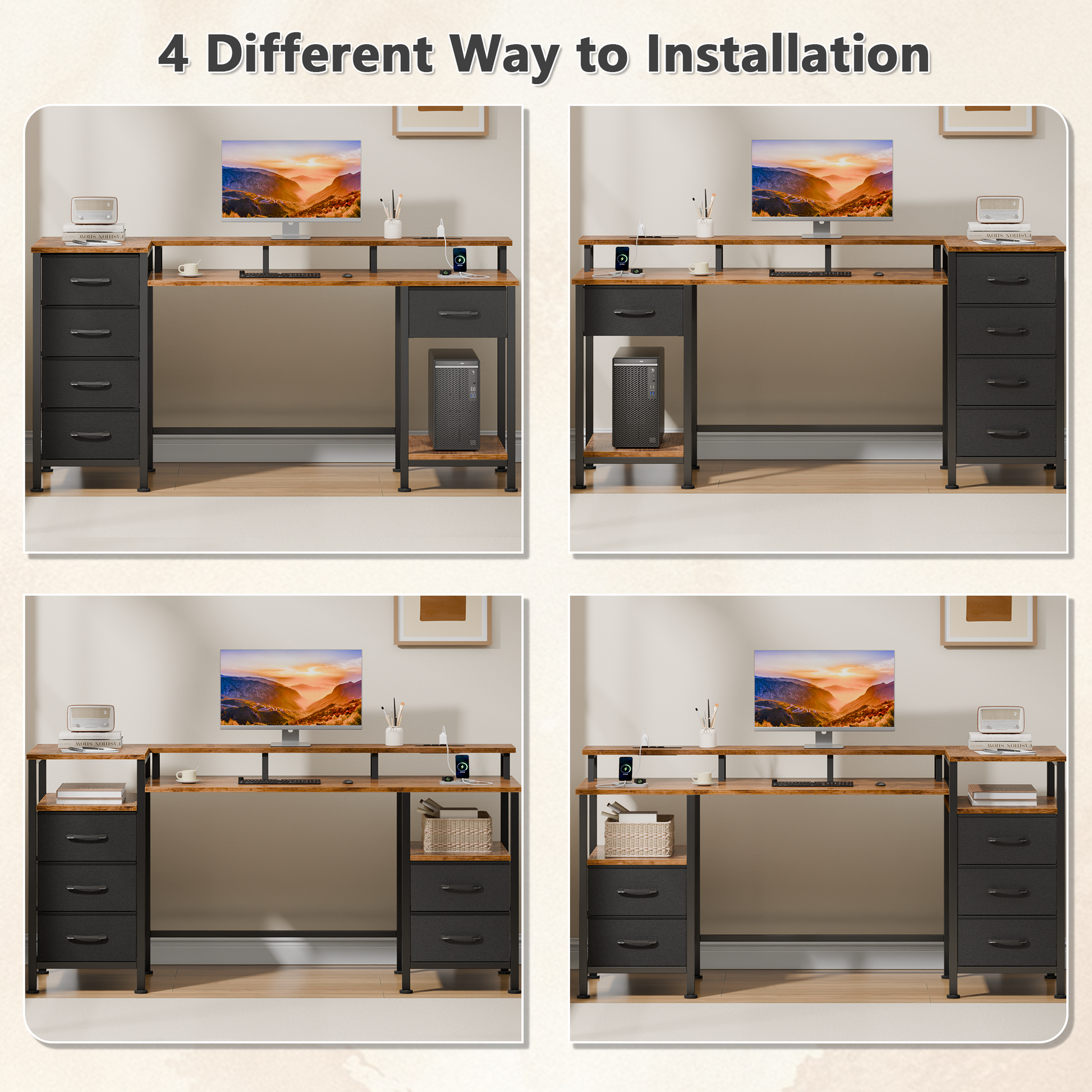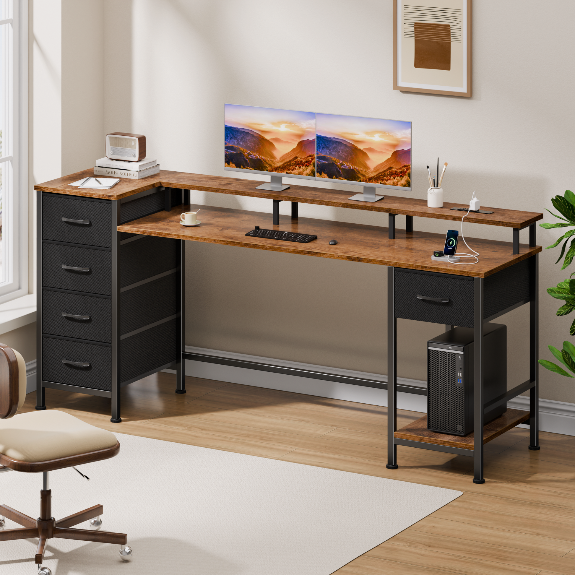 Superior Storage Capacity: Outfit your space with the exceptional organization offered by this computer desk. It includes 5 versatile fabric drawers and 2 handy open shelves beneath the desktop, providing ample room for everything from office supplies to gaming accessories.