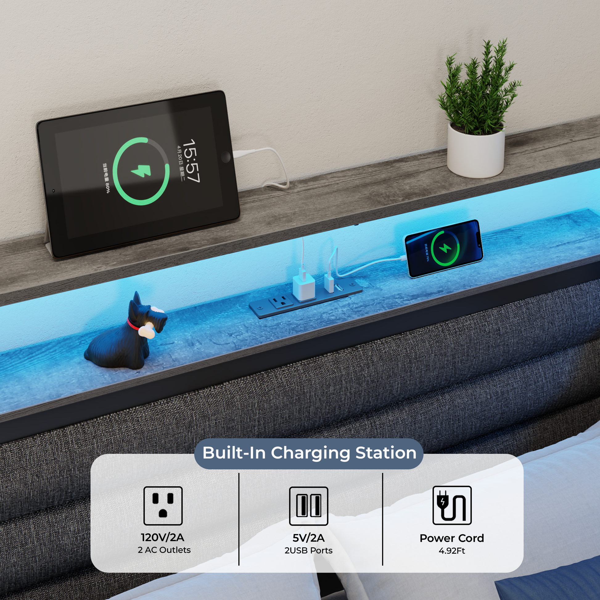 This L-shaped corner bed frame is a space-saving, functional game-changer—perfect for teen bedrooms, small apartments, or cozy homes! It fits snugly into any layout, offering sleeping/lounging versatility plus ample storage (3 under-bed drawers, 3 open cubbies, double-layer shelf) to stow essentials and keep small spaces tidy. It also boasts a headboard with an adhesive LED light strip (vibe-boosting for bedtime) and integrated power (1 USB, 2 AC outlets, 1 Type-C) for convenient in-bed device charging—no mid-use trips.