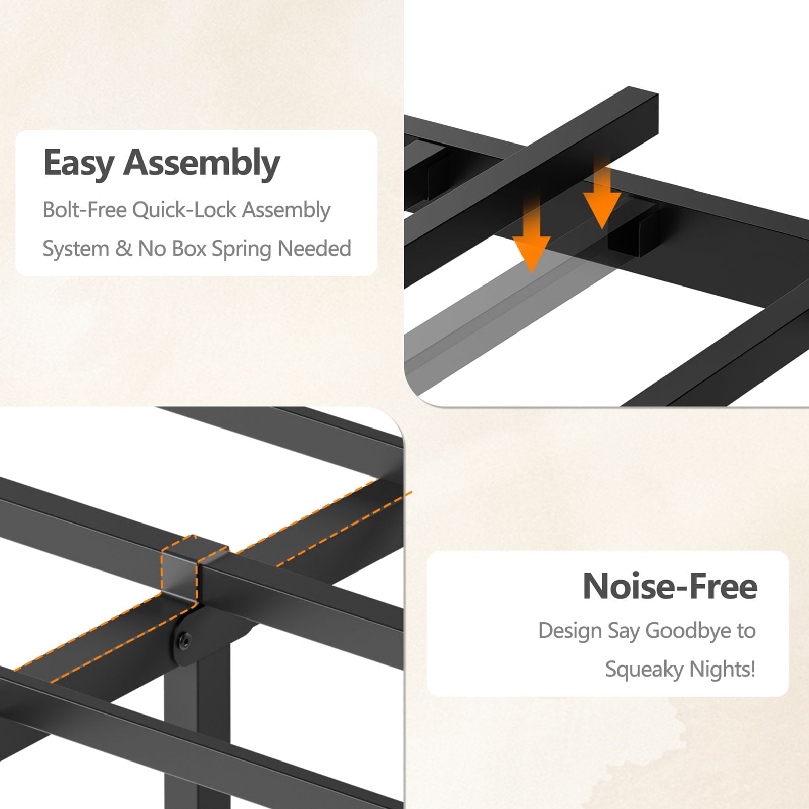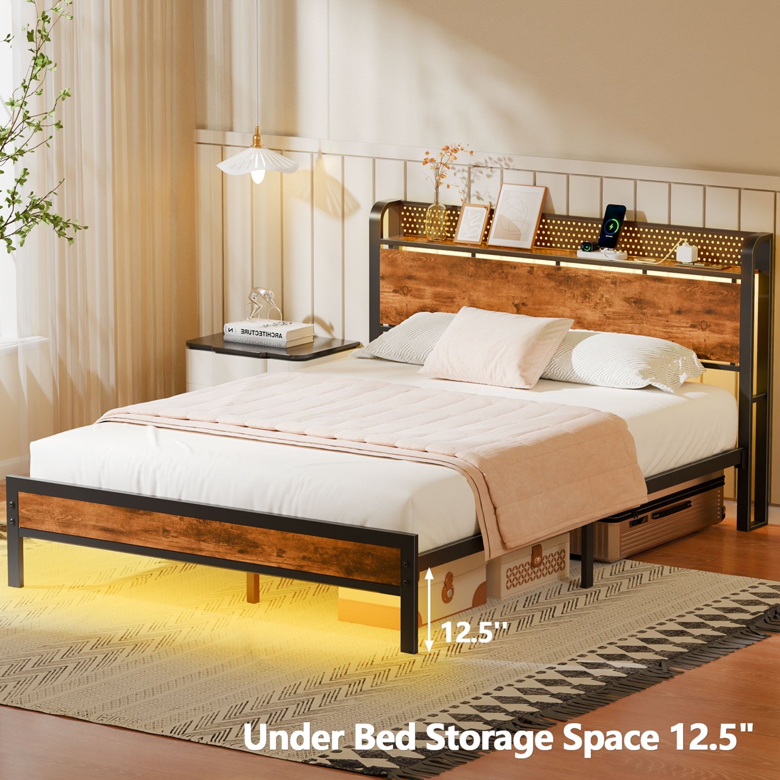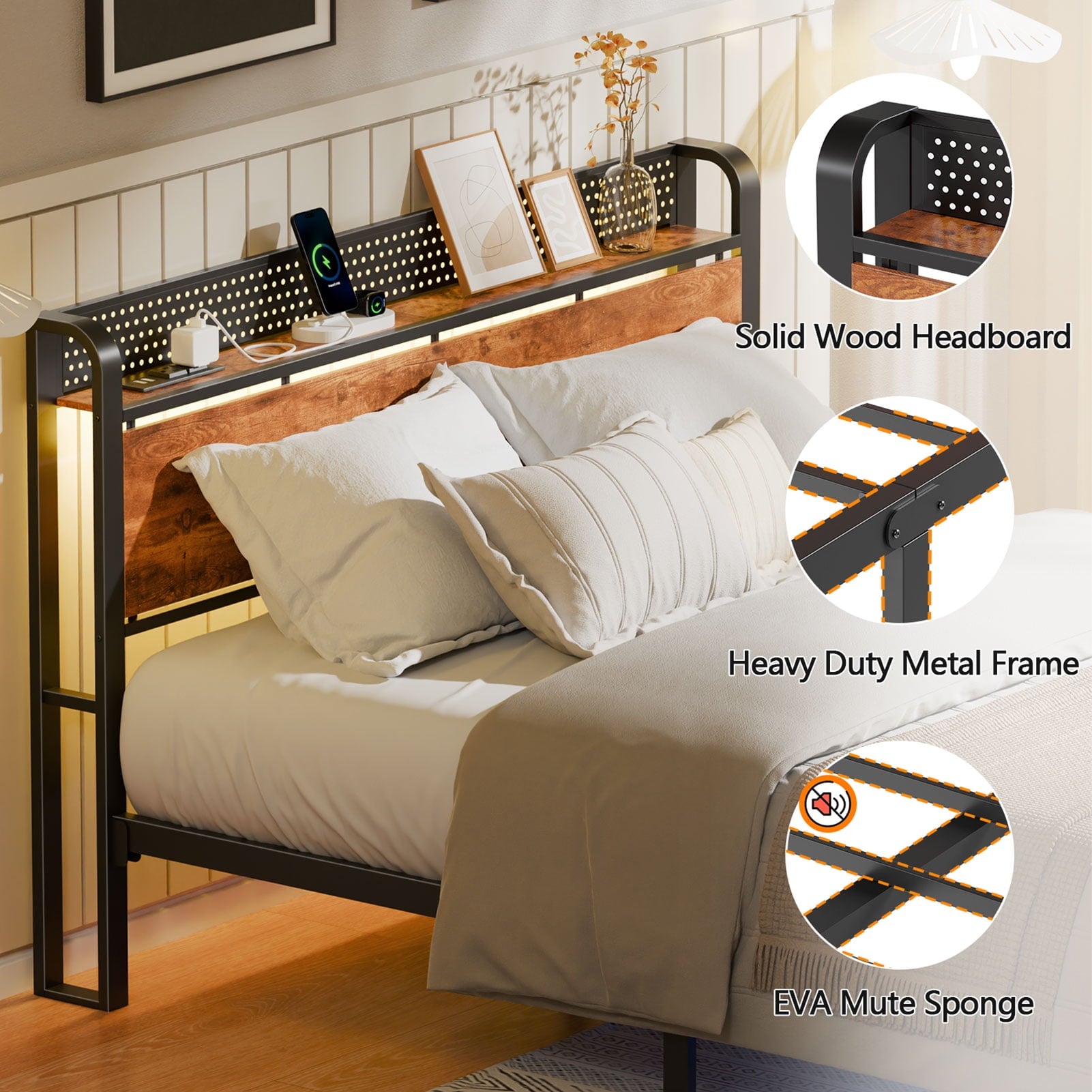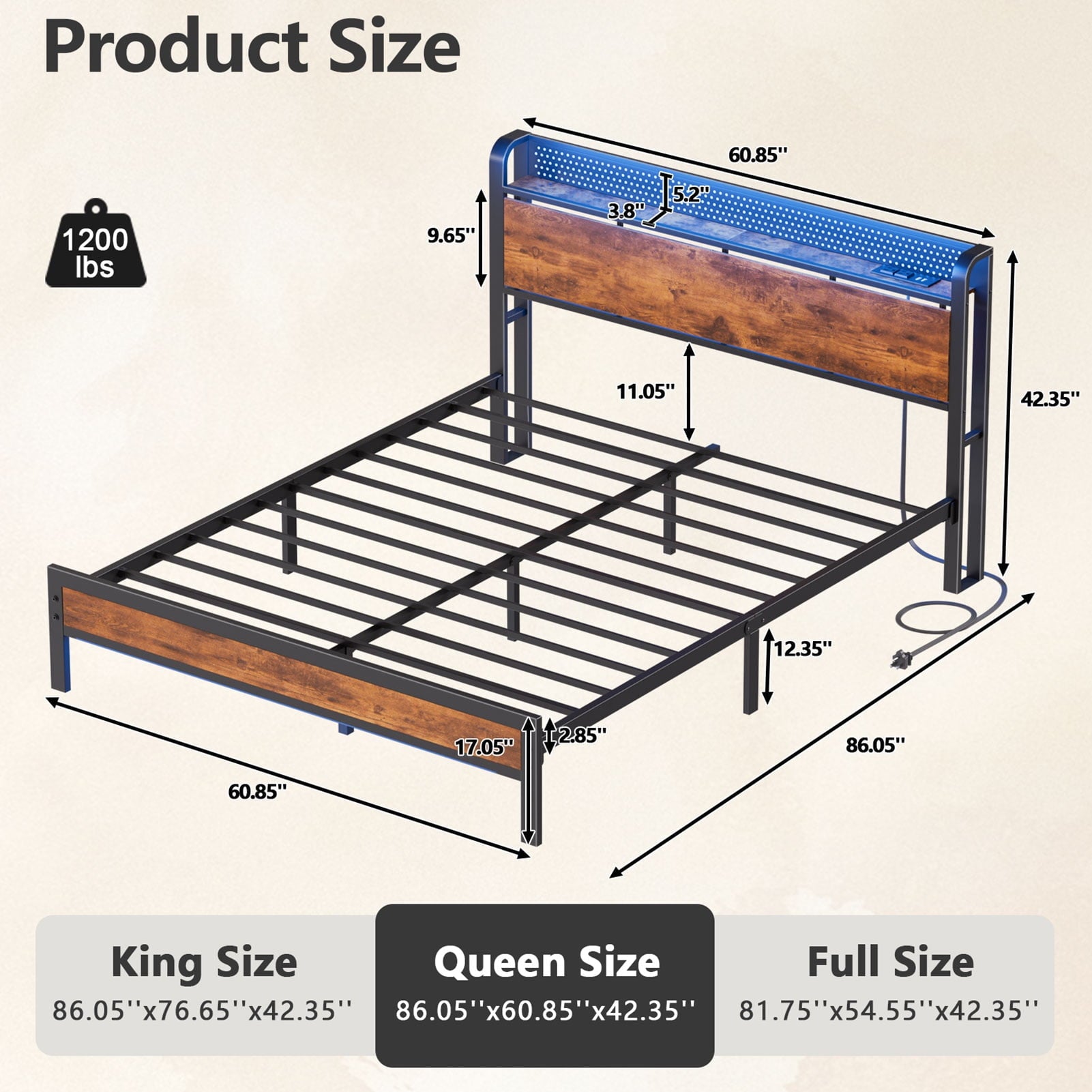 Satifur LED Bed Frame Queen Size with 2 USB Ports and Outlets, Platform Metal Bed Frame, No Box Spring Needed, Noise-Free