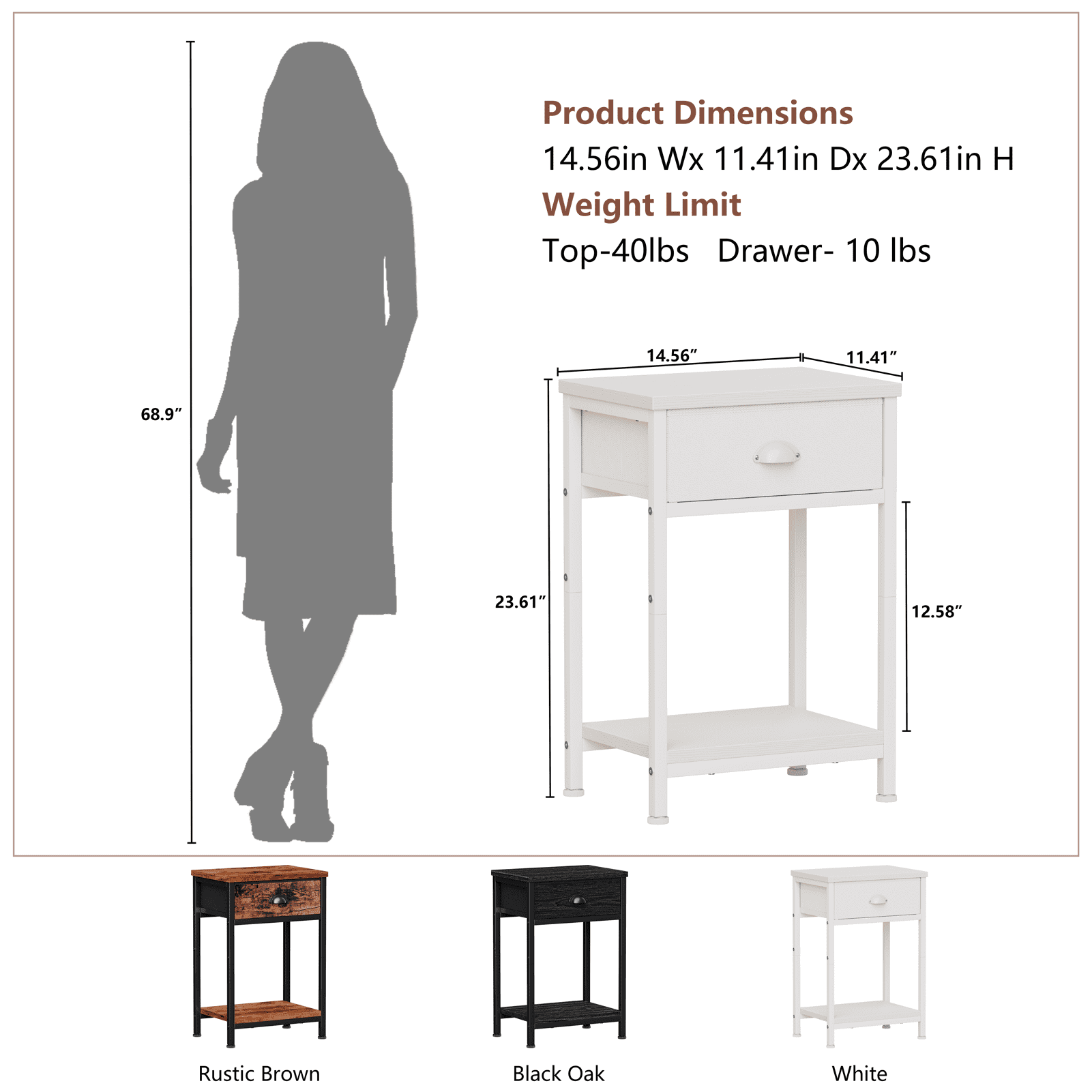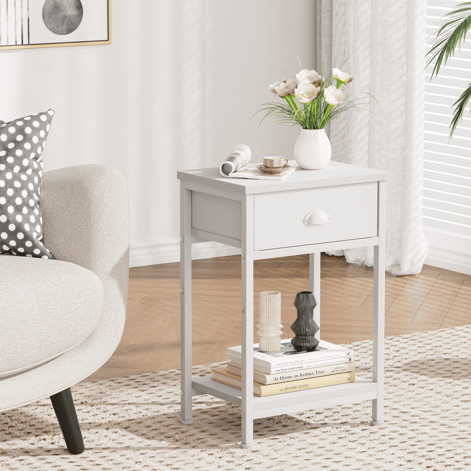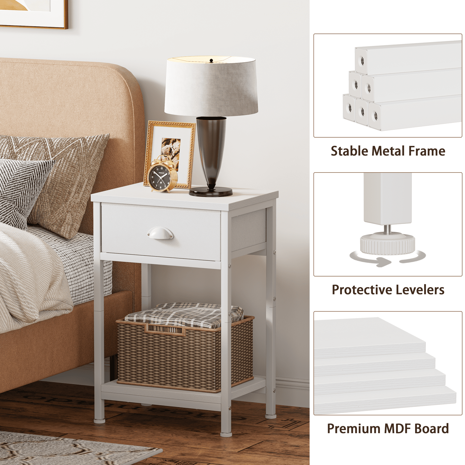 Satifur Nightstand with Drawer and Shelf ,Bedside End Table, Sofa Side Table, for Bedroom, Livingroom, White, 1 Pack: