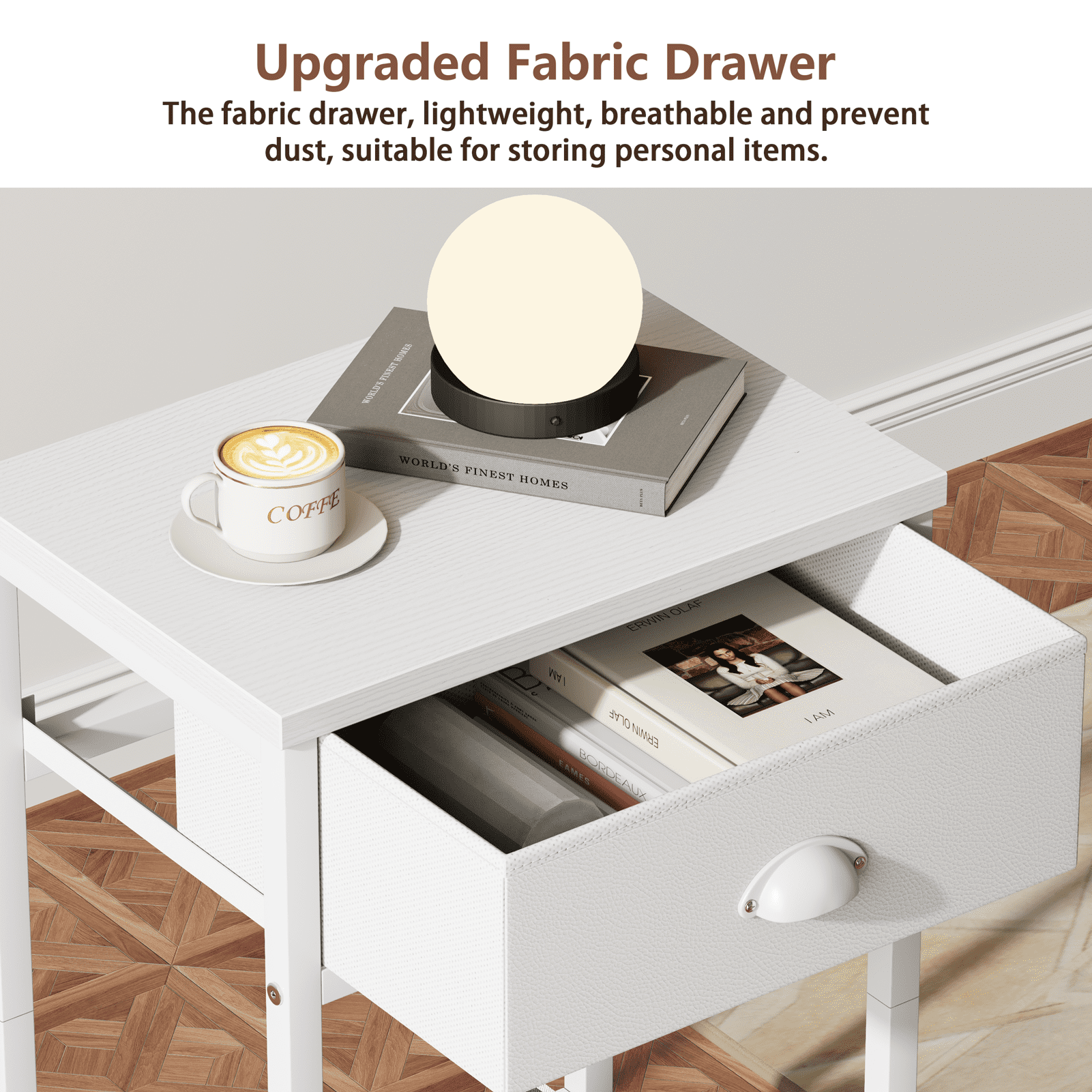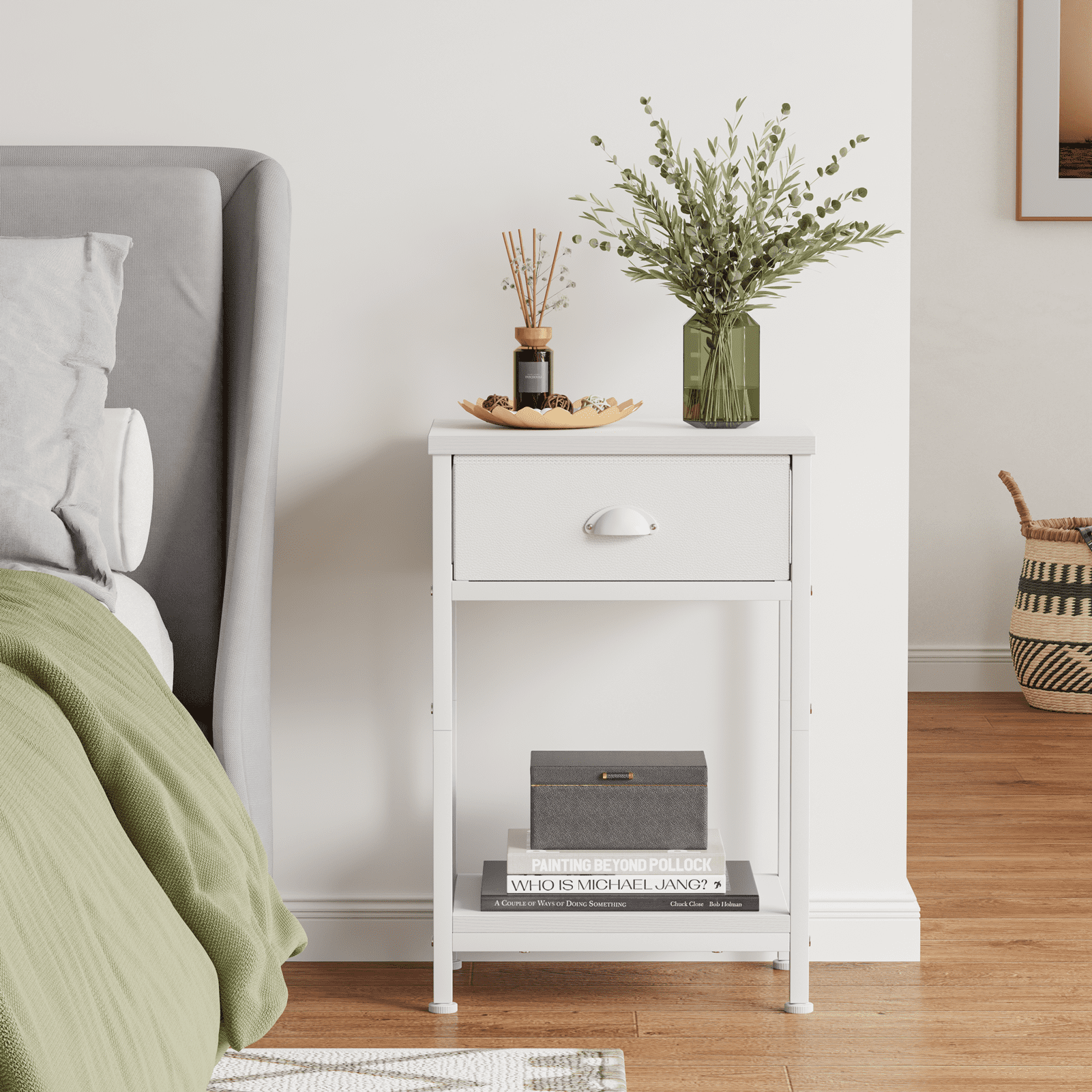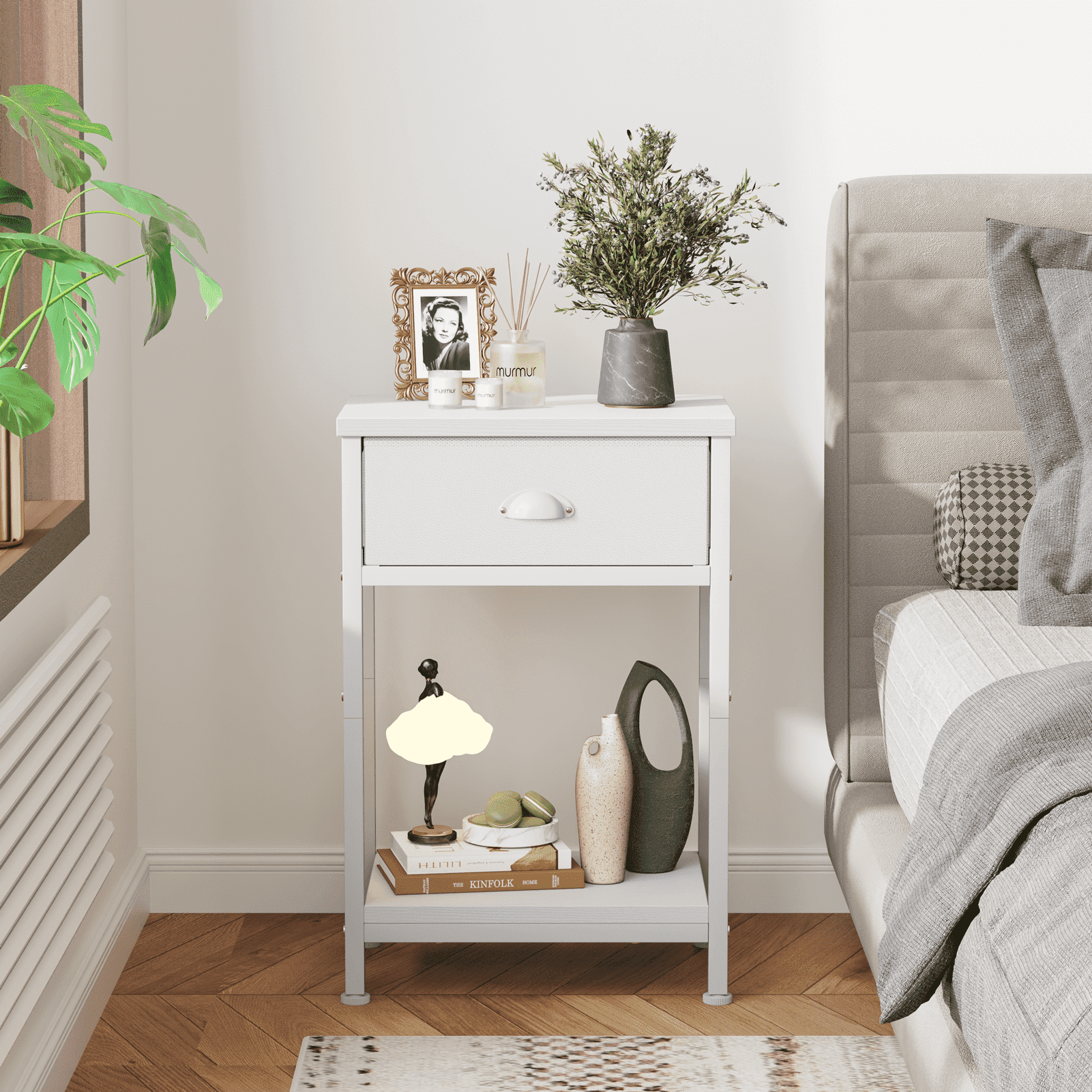 Satifur Nightstand with Drawer and Shelf ,Bedside End Table, Sofa Side Table, for Bedroom, Livingroom, White, 1 Pack: