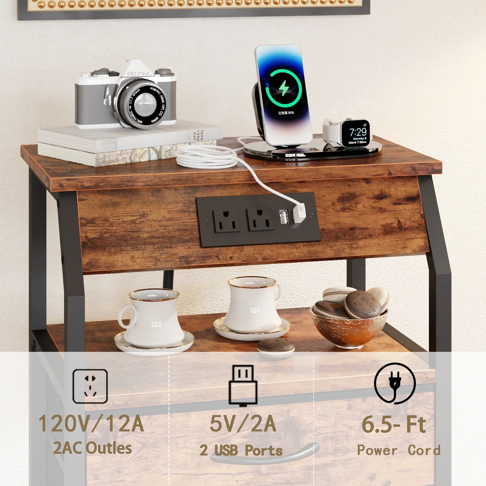 Nightstand with Outlets: Featuring 2 AC outlets and 2 USB ports, this nightstand with drawer provides convenient charging spots for your devices, creating a comfortable bedtime environment.