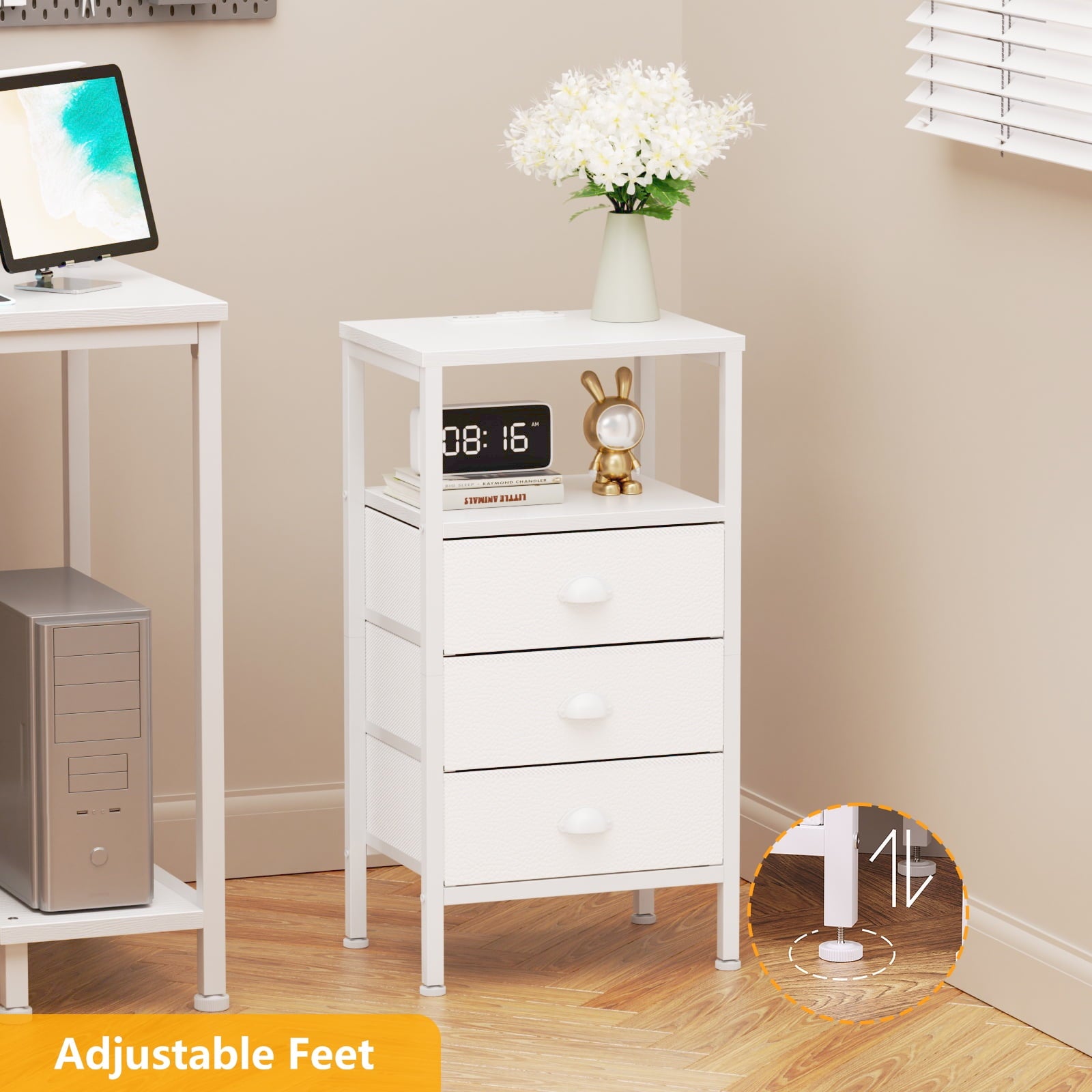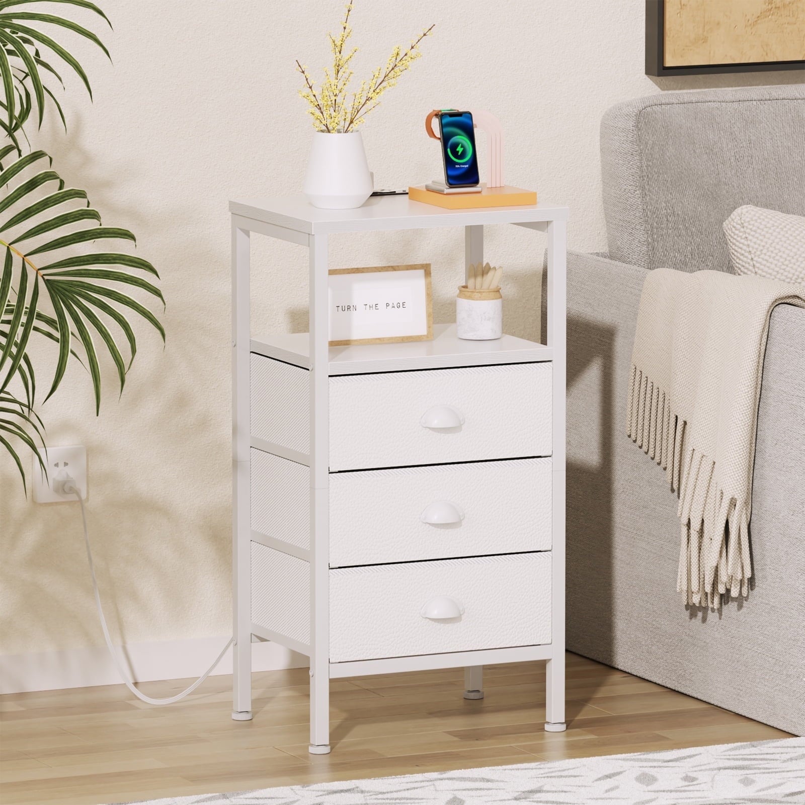 Satifur Nightstand with Charging Station Bedside Table with Fabric Storage Drawers, White