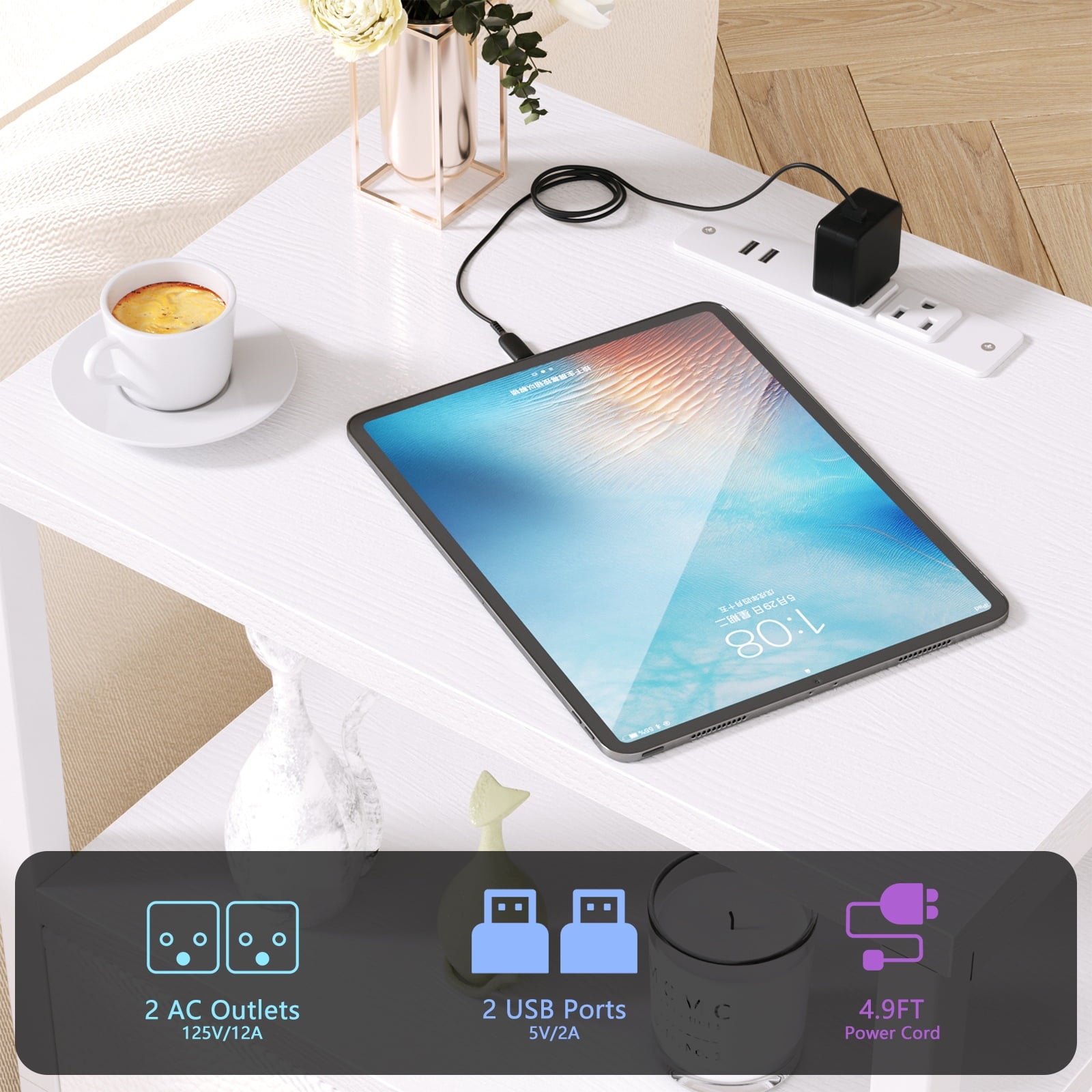 Statifur end table with charging station for livingroom, bedroom and office comes with 2 USB ports and 2 power outlets, you can easily charge your mobile phone, computer, Bluetooth speaker or iPad at any time. This wooden nightstand features with 2 foldable