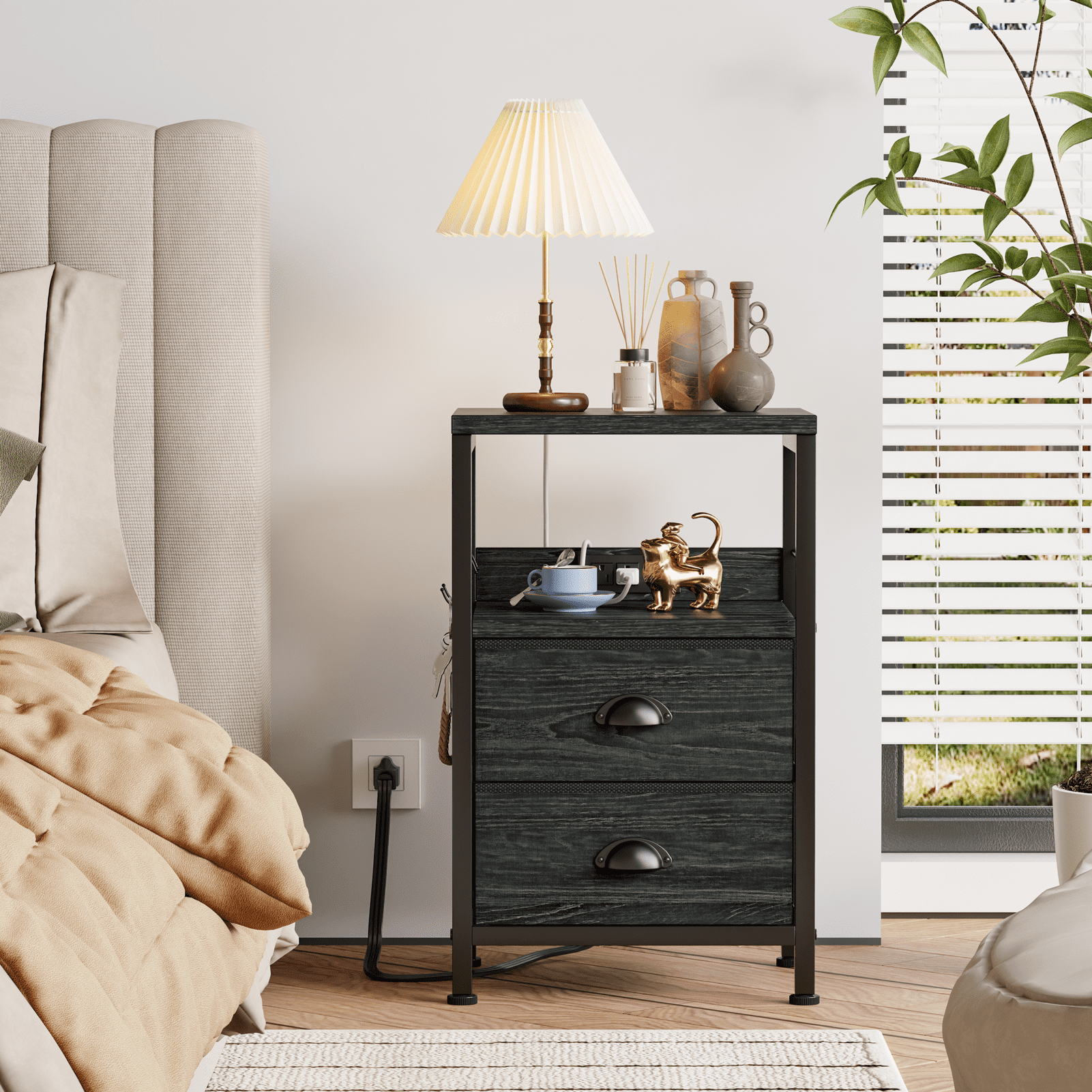 Upgrade your bedroom with Satifur nightstands. Featuring removable fabric drawer and open shelf, these table match any decor style and provide ample storage.Use them as nighstand, beside table, dresser, end table, or toy organizer. Each of fabric drawers is designed with pull handles,so you can easily reach everything you want. The charging station with 2 AC outlets and 2 USB ports is enough to charge your laptop, phone etc, saving time and effort without looking for USB charging cable or outlets. Whether you're looking for a coffee table, side table or nightstand, Satifur can be satisfactory!