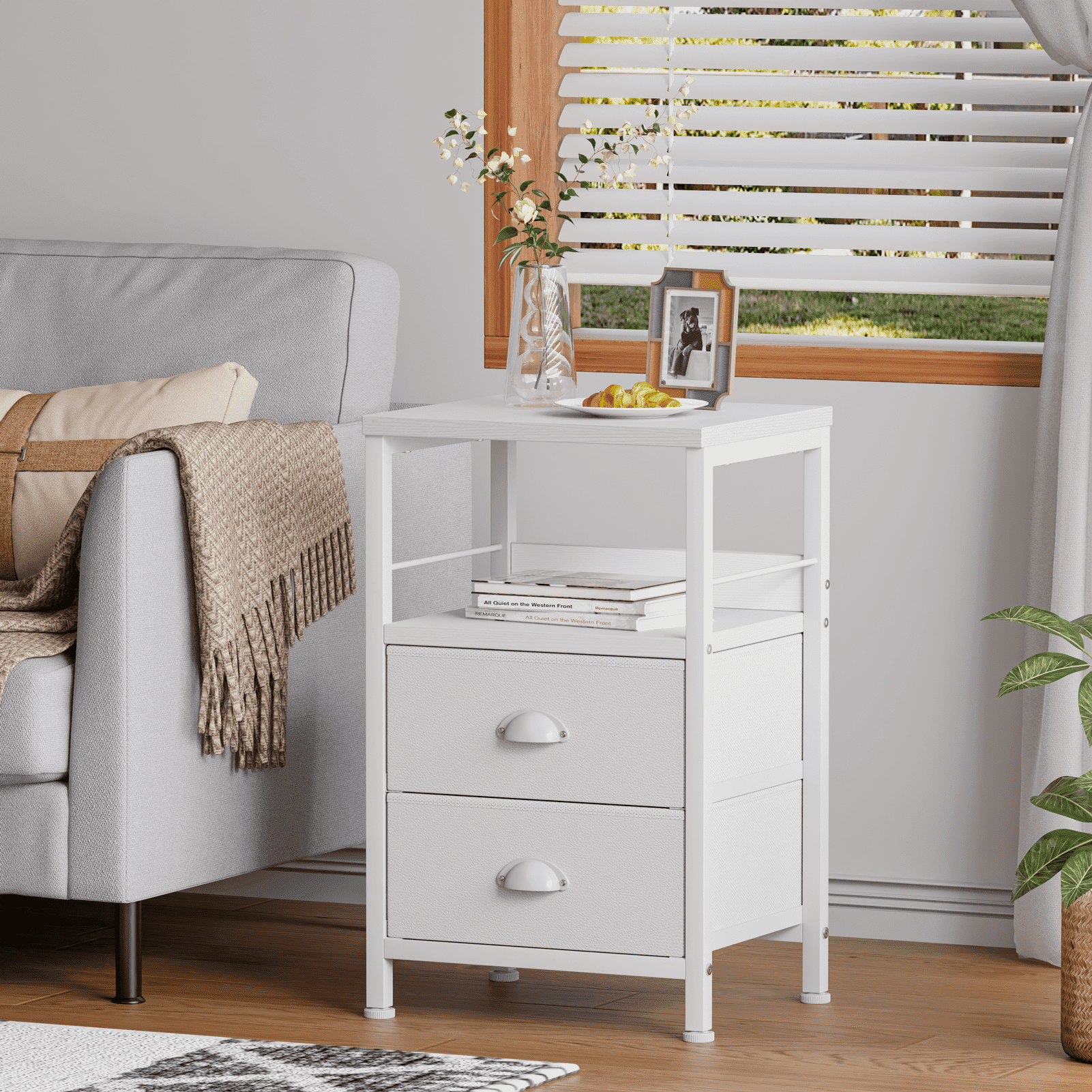 Satifur Nightstand with Drawers & Shelf Bedside End Table for Bedroom,White
