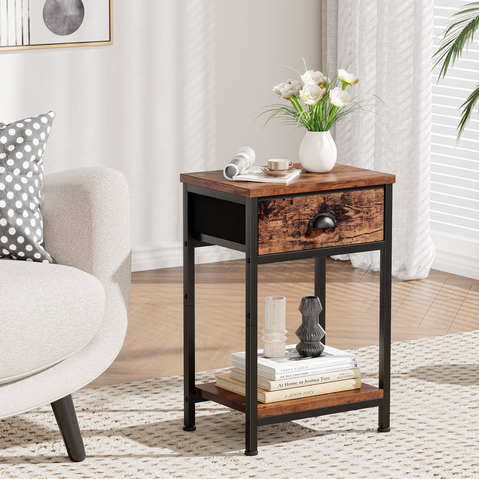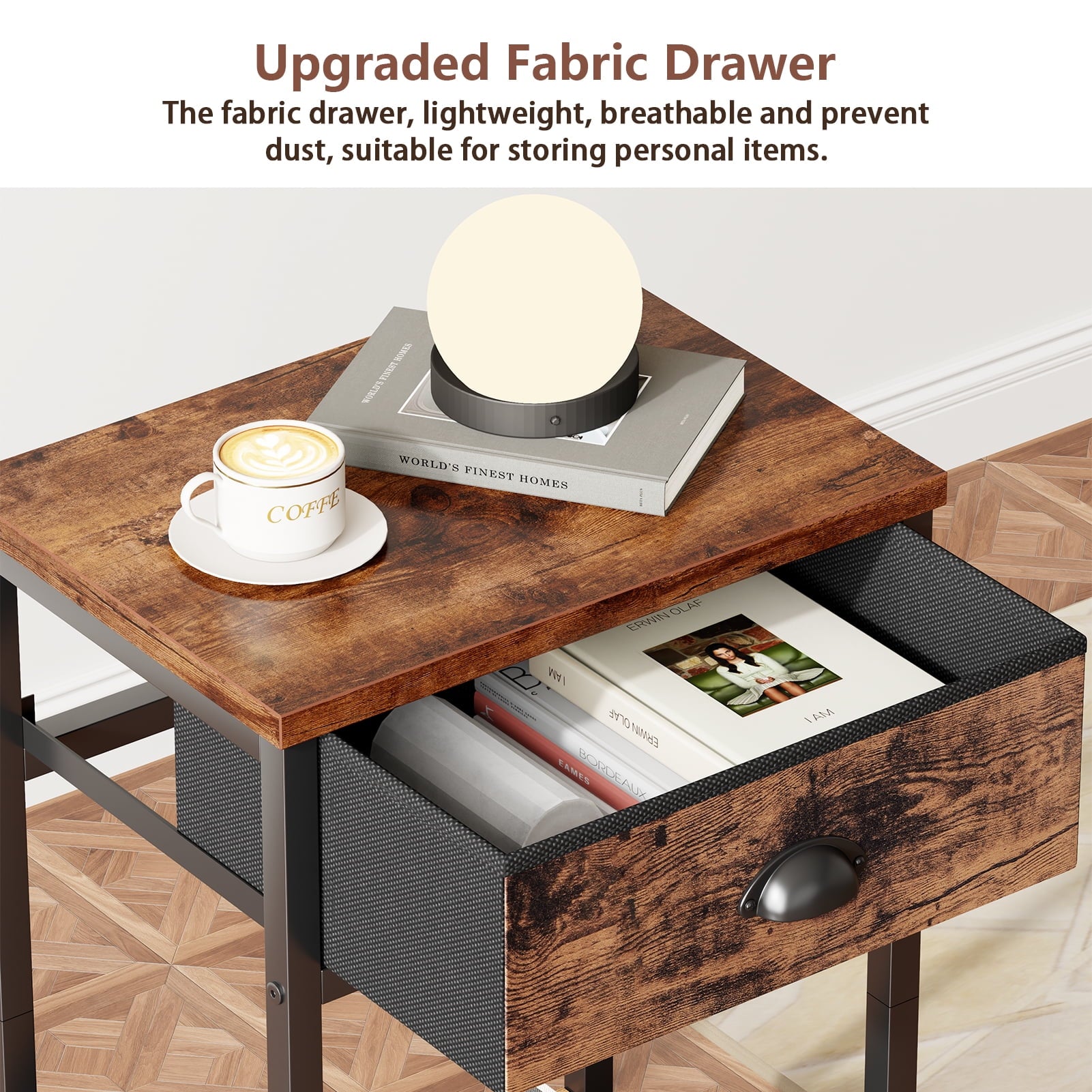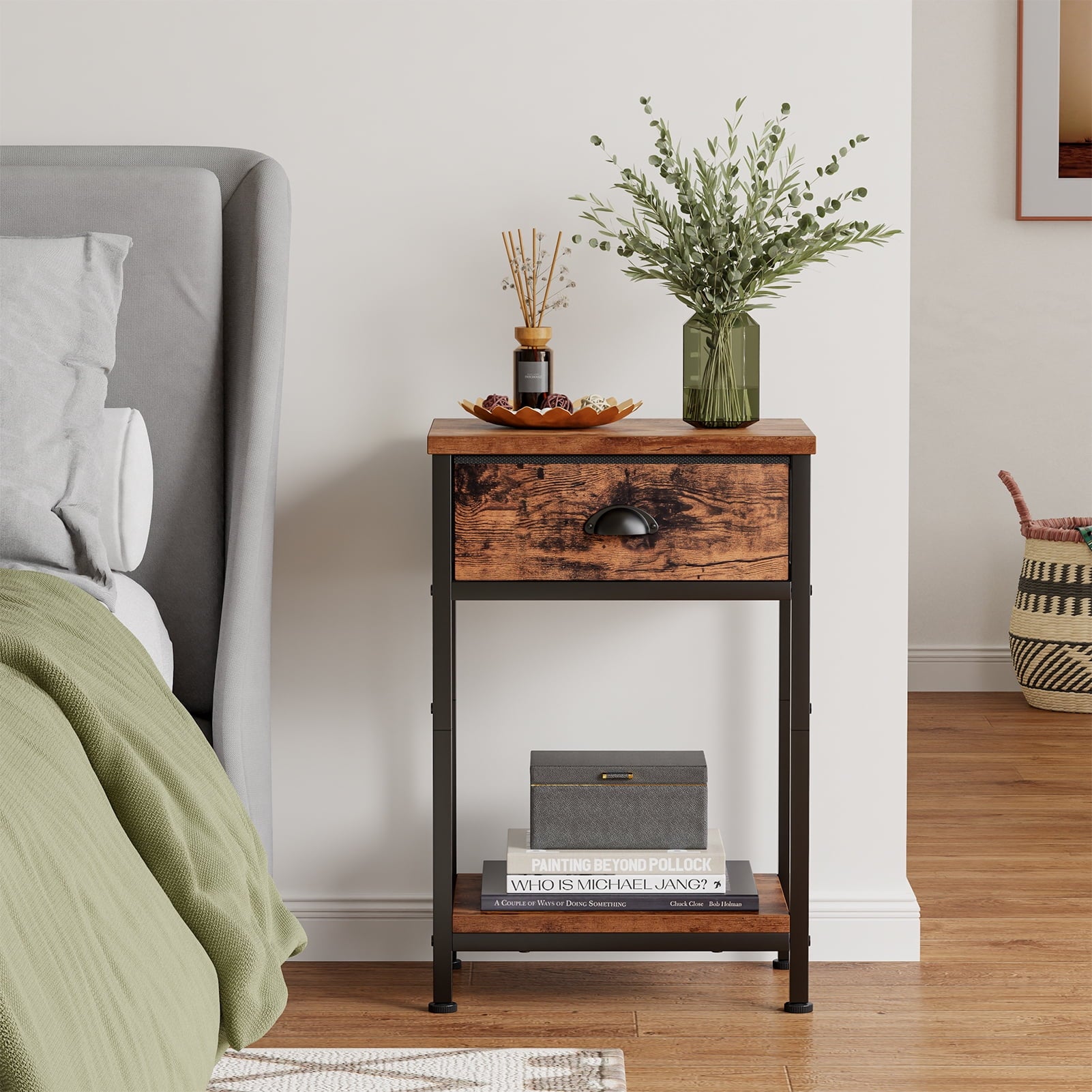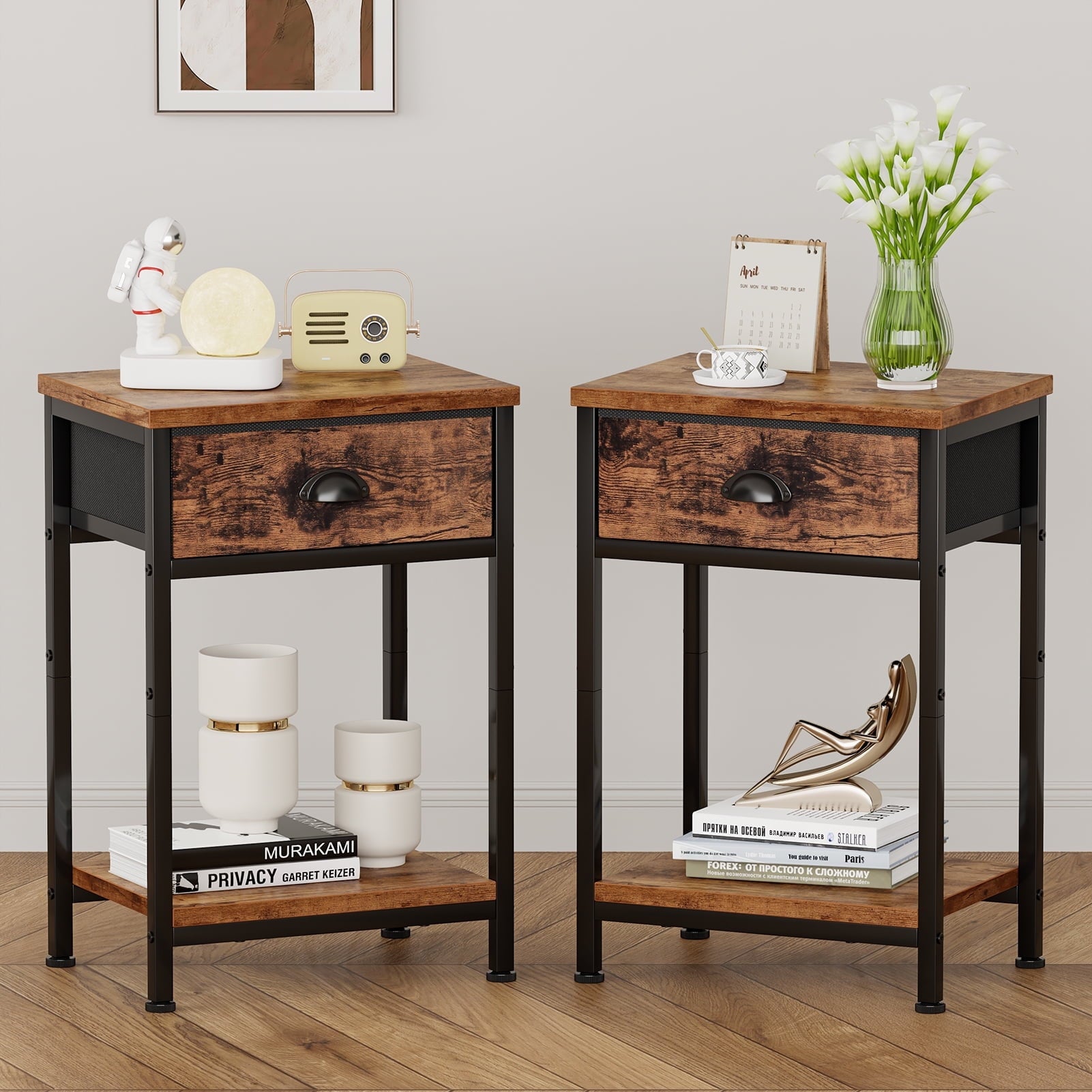 Satifur Nightstand with Drawer and Shelf ,Bedside End Table, Sofa Side Table, for Bedroom, Livingroom, Rustic Brown, 2 Pack: