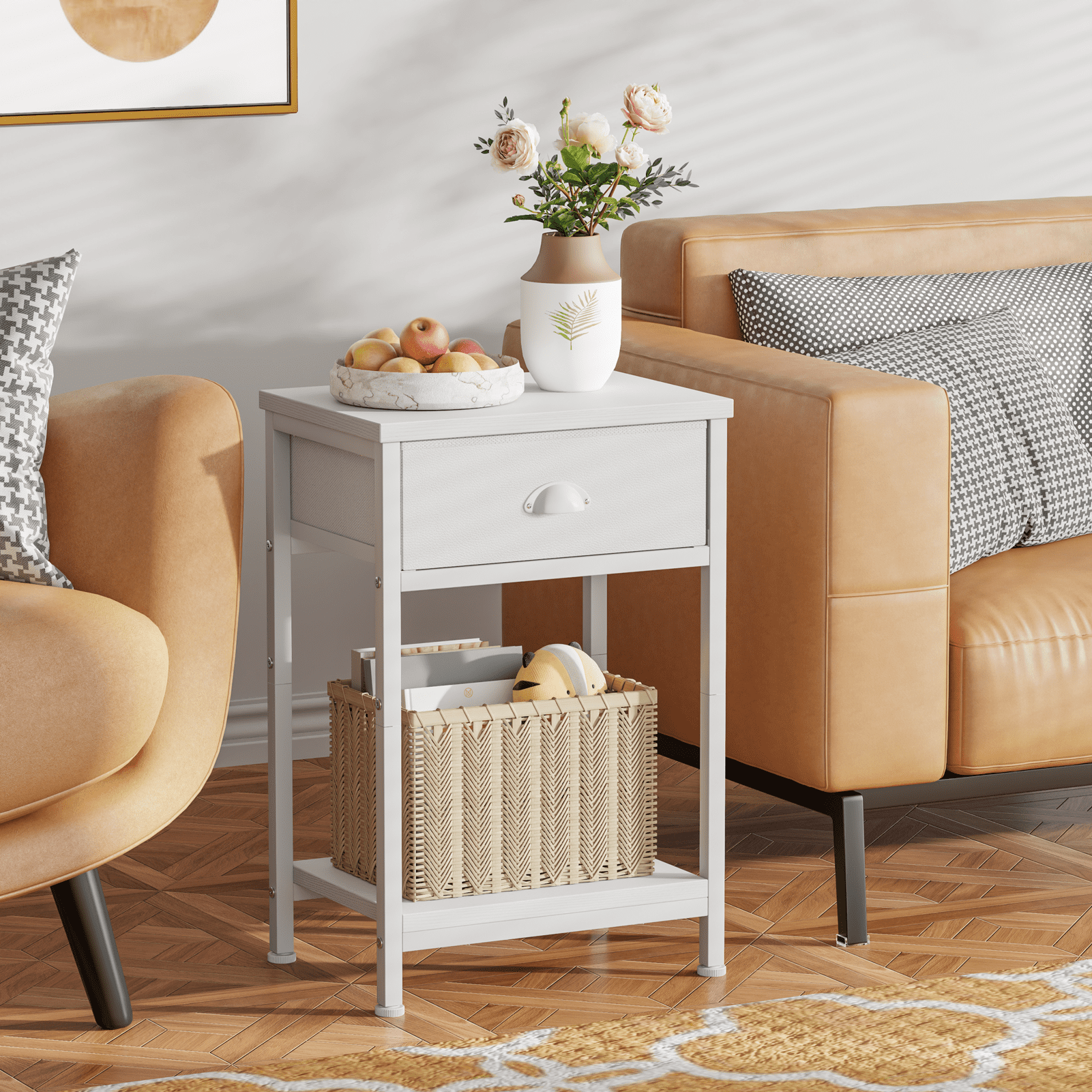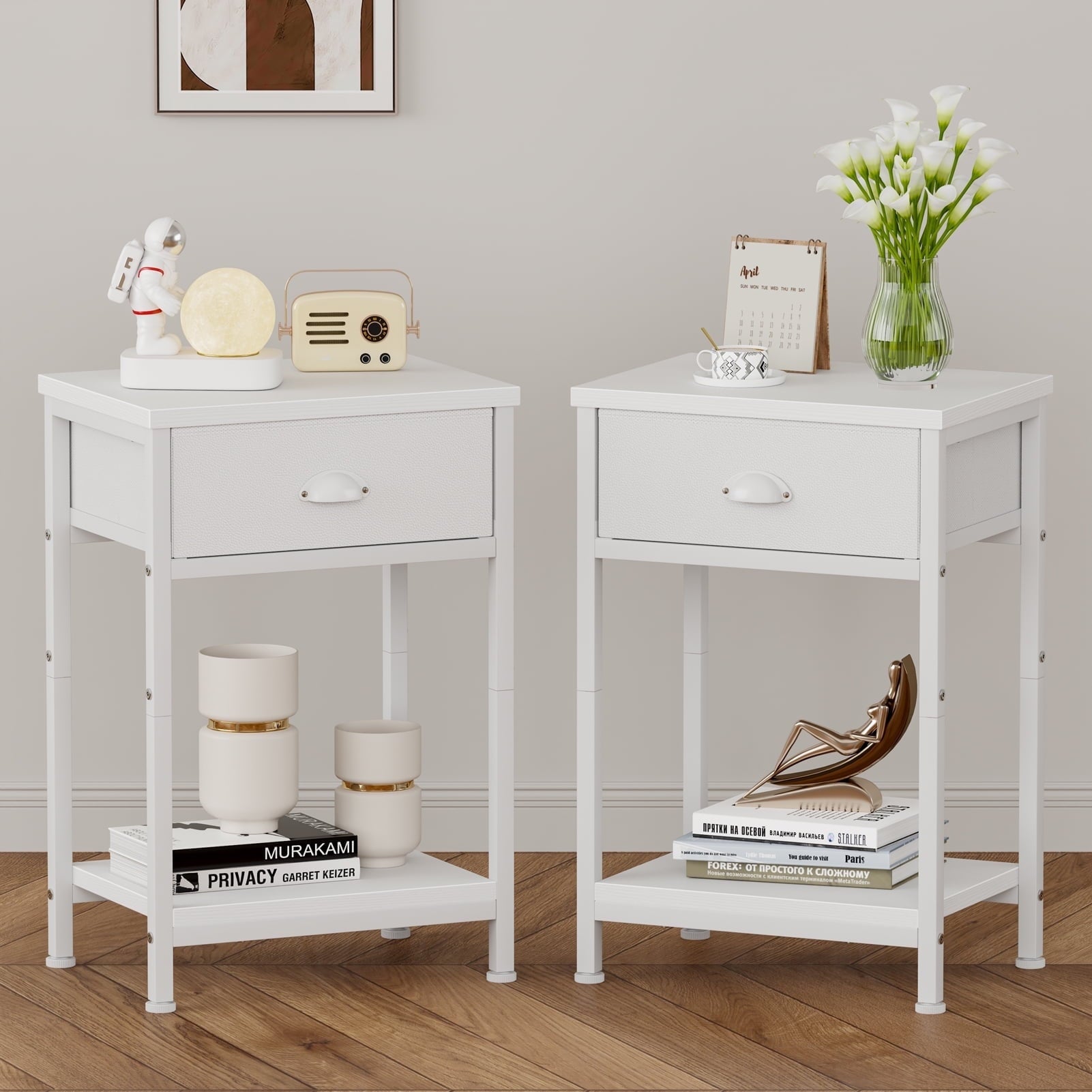 Satifur Nightstand with Drawer and Shelf ,Bedside End Table, Sofa Side Table, for Bedroom, Livingroom, White, Set of 2: