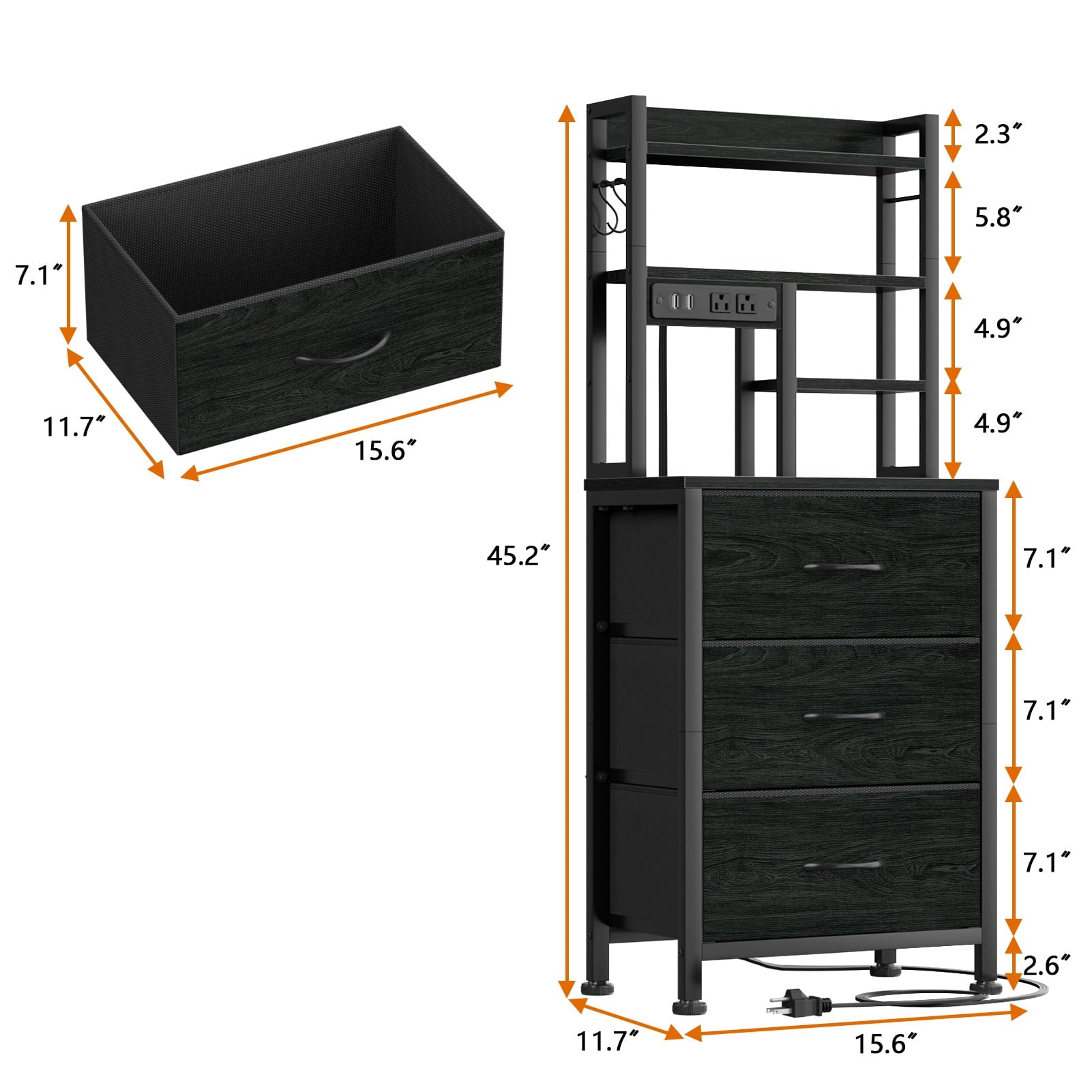Size of Drawers: 15.6"D x 11.7"W x 7.1"H