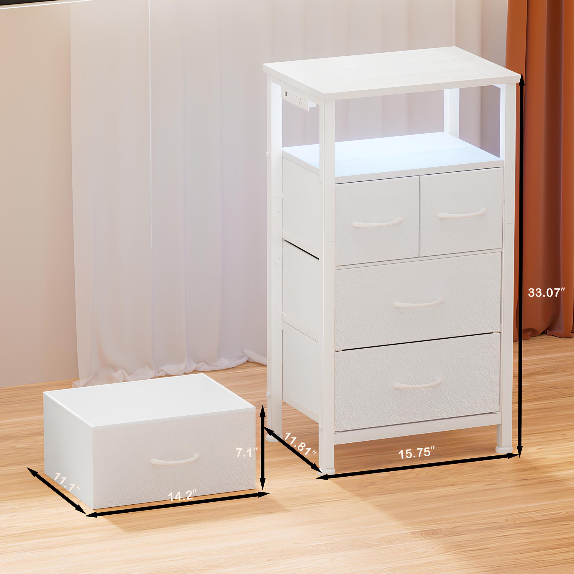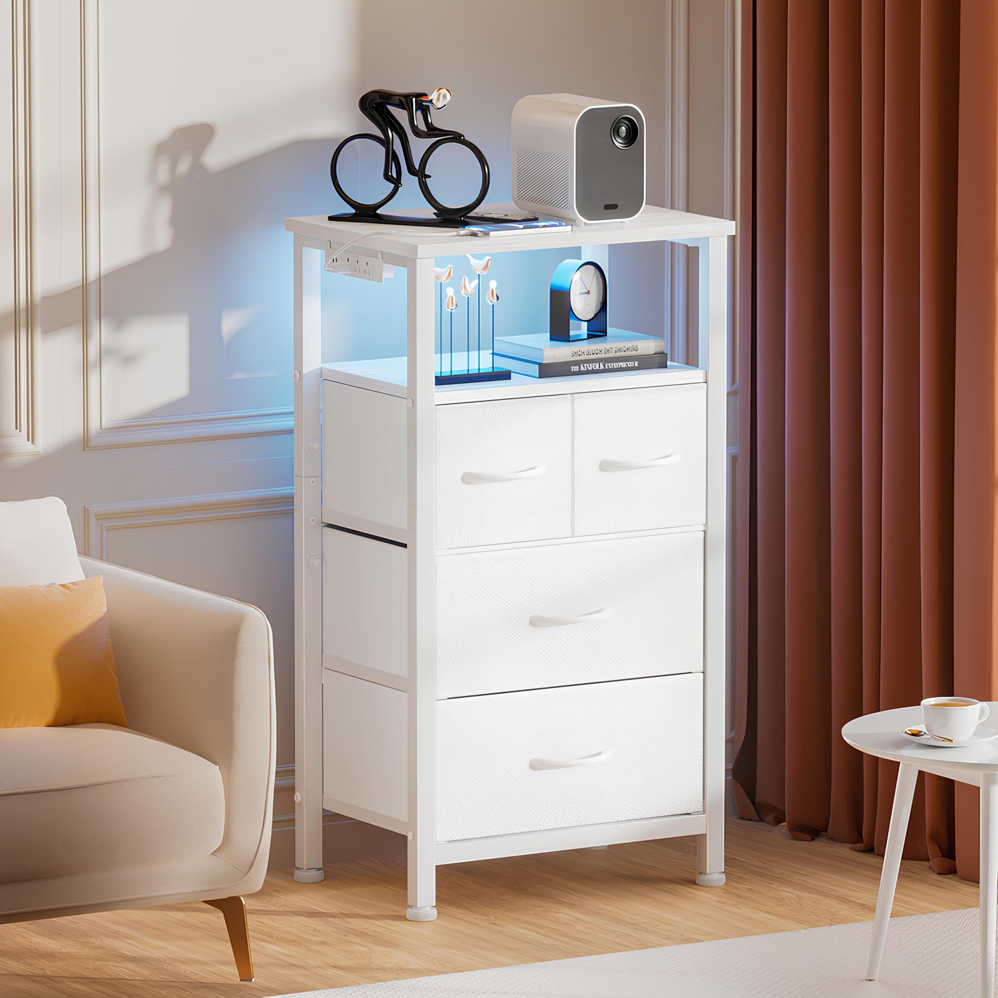 TYDIMOR 4 Drawer Dresser,Small Dresser with Charging Station and LED, White, for Bedroom and Living Room